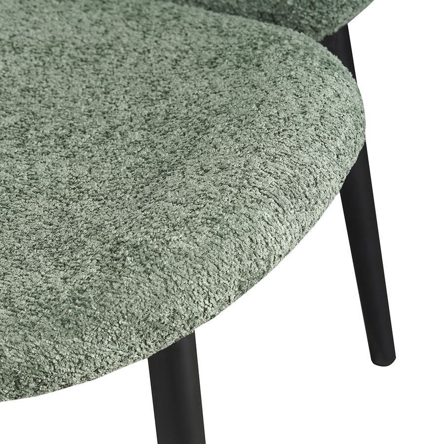 Стул имеет удобную посадку за счет глубокого сиденья эргономичной формы и высокой спинки. Ножки мебели изготовлены из железа с устойчивым к коррозии и повреждениям порошковым покрытием. Состоящая из мелких узелков ткань обивки с приятной фактурой дарит тактильный комфорт и визуально смягчает любую интерьерную композицию. Материал не требует сложного ухода и долго сохраняет привлекательный вид.