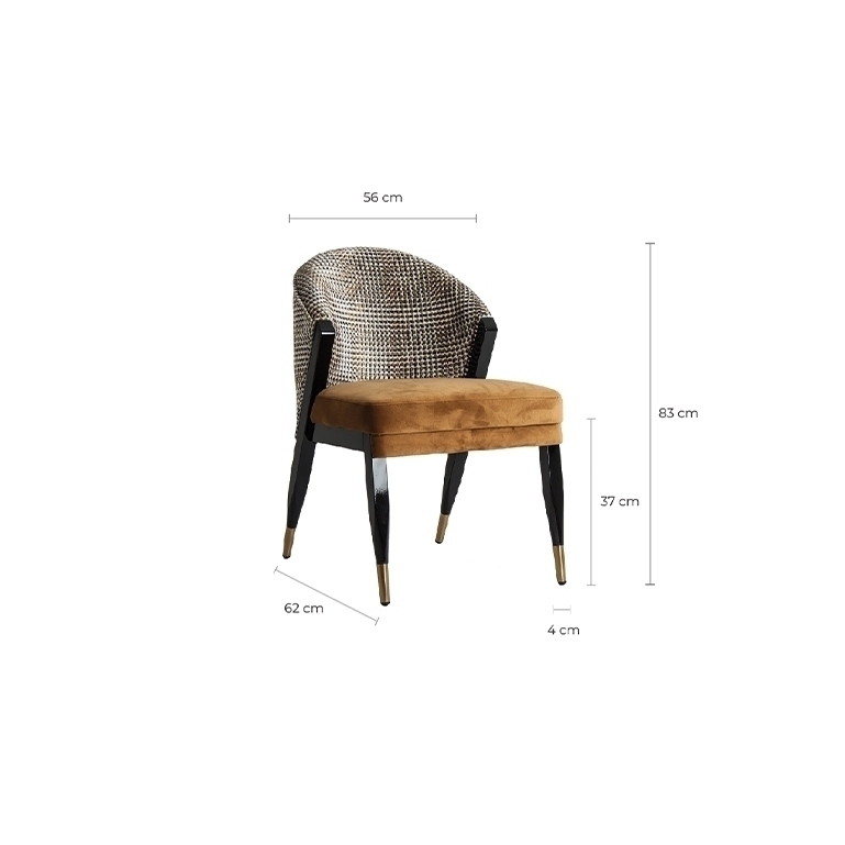 Стул BRILLON 27369 - обволакивающий и роскошный предмет, который станет особенной частью вашей обстановки. Бархатная обивка цвета охры добавит тепла и мягкости. А каучуковые ножки с золотой отделкой станут эксклюзивной деталью вашей зоны отдыха.