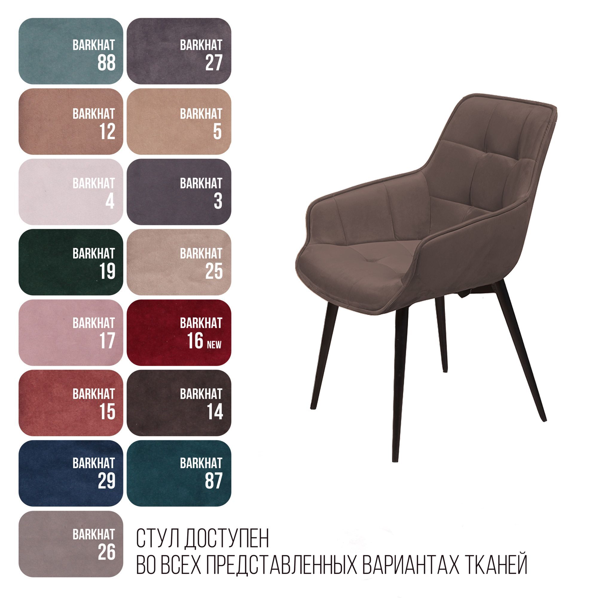 strong*Оттенок может выглядеть по-разному в зависимости от направления ворса./strong Cтул «Capri» - это современное воплощение роскоши и аристократизма. Утонченность деталей, благородство фактуры, изысканность материалов - это основные черты данной модели. Внутренняя часть спинки, сидения и подлокотников имеют квадратную отстрочку, а сама модель окаймлена декоративным кантом. Эти детали придают коллекции более выразительные очертания. Cтул «Capri» с поворотным механизмом 90 градусов – это минимум перемещений – максимум комфорта: с такими стульями вам не придется передвигать мебель, чтобы встать из-за стола или развернуться к собеседнику. Каркас Прочный металлический каркас обеспечит продолжительный срок службы Наполнение В качестве наполнителя используется высокопрочный пенополиуретан. При ежедневной эксплуатации на протяжении длительного времени он сохранит первоначальную форму. Данное наполнение - гарантия продолжительного срока службы изделия что особенно важно для коммерческого использования (при эксплуатации в сегменте HоReCa). Опоры Металлические опоры черного или белого матового цвета. На опорах предусмотрены защитные пластиковые накладки, которые придают стулу дополнительную устойчивость и защищают пол от царапин Гарантия Тщательная проверка качества изделий осуществляется на всех этапах производства: от подбора материалов и комплектующих до проверки готового изделия перед отправкой. На все изделия Top concept мы предоставляем гарантию 18 месяцев.