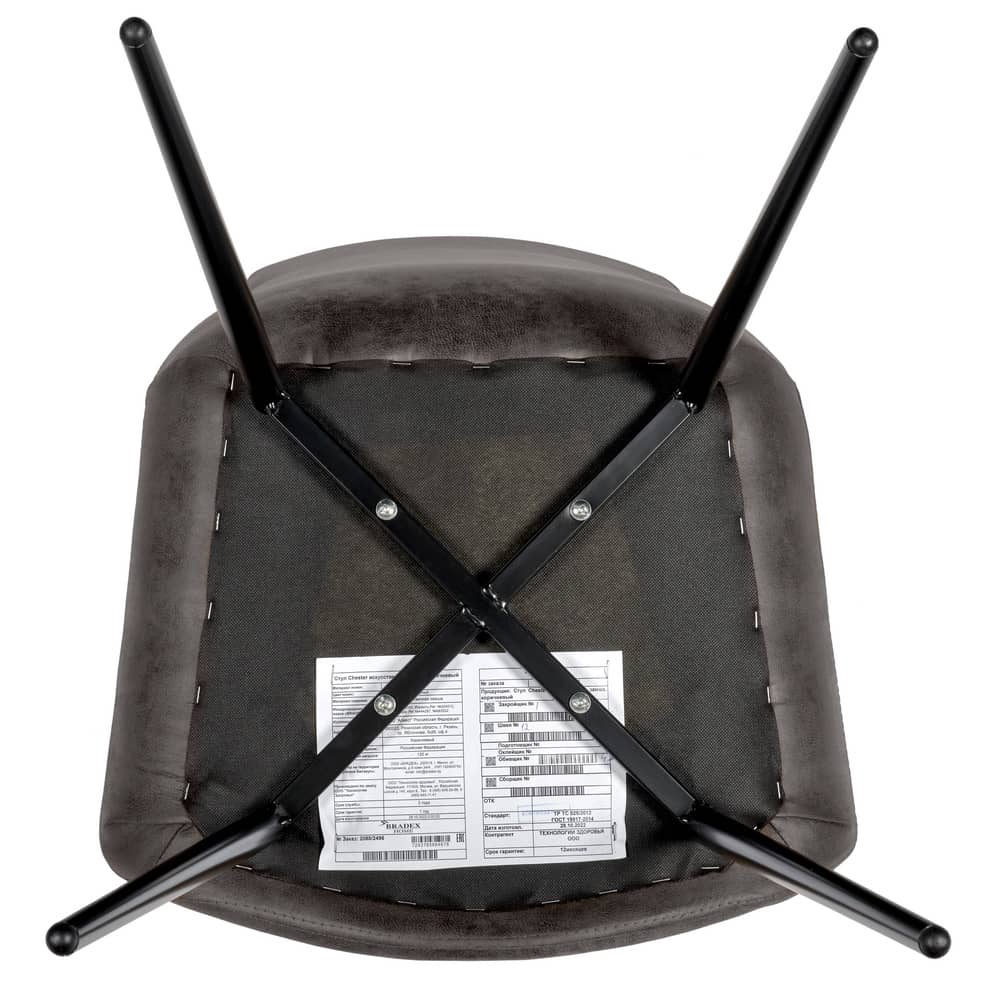 Стул в мягкой обивке из искусственной замши без подлокотников на разборном металлическом каркасе.