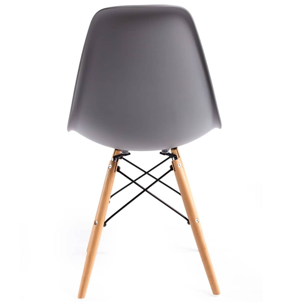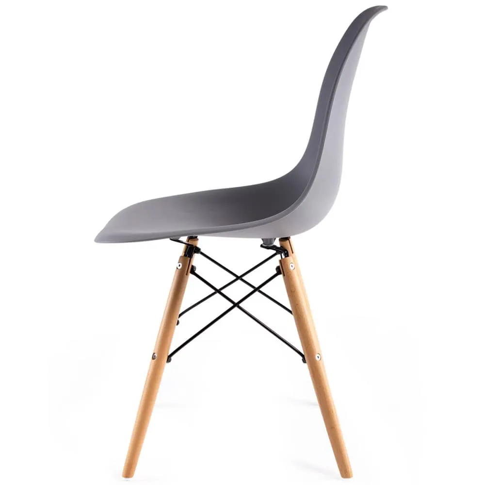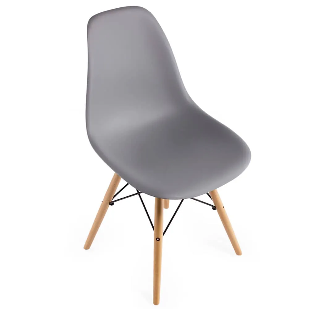 Сиденье выполнено из матового полипропилена, ножки и опоры из массива бука и металла.