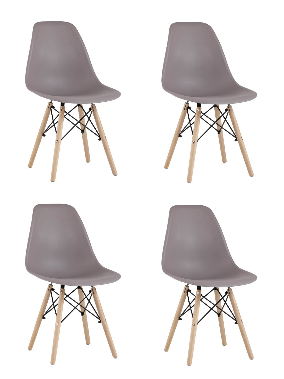 Комплект из четырех стульев Stool Group Eames Style DSW темно-бежевый пластик, стальной каркас, натуральный массив бука