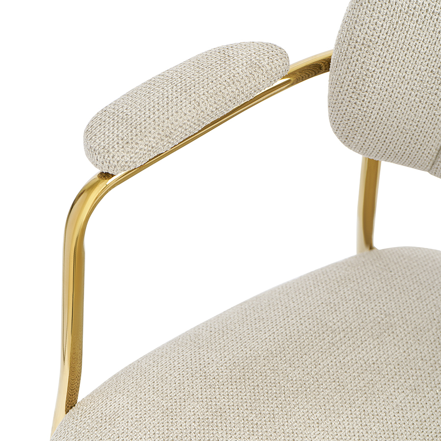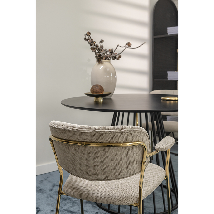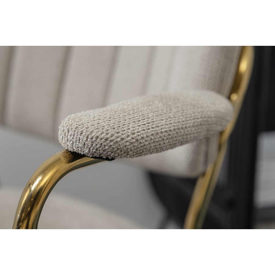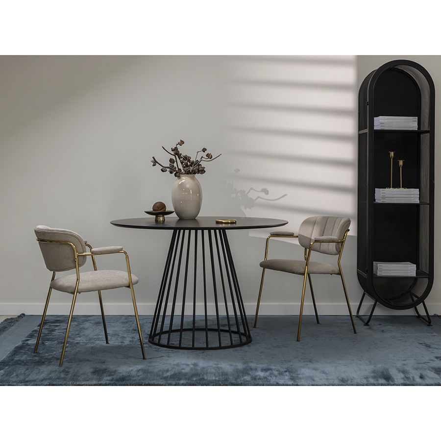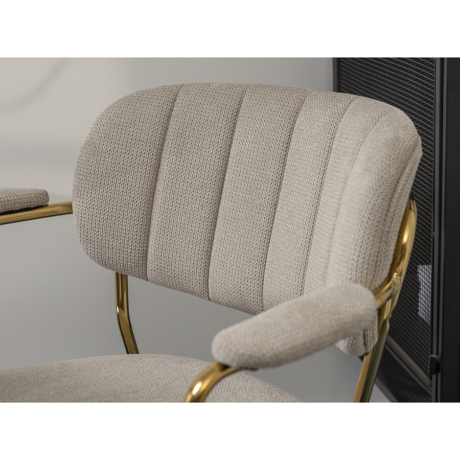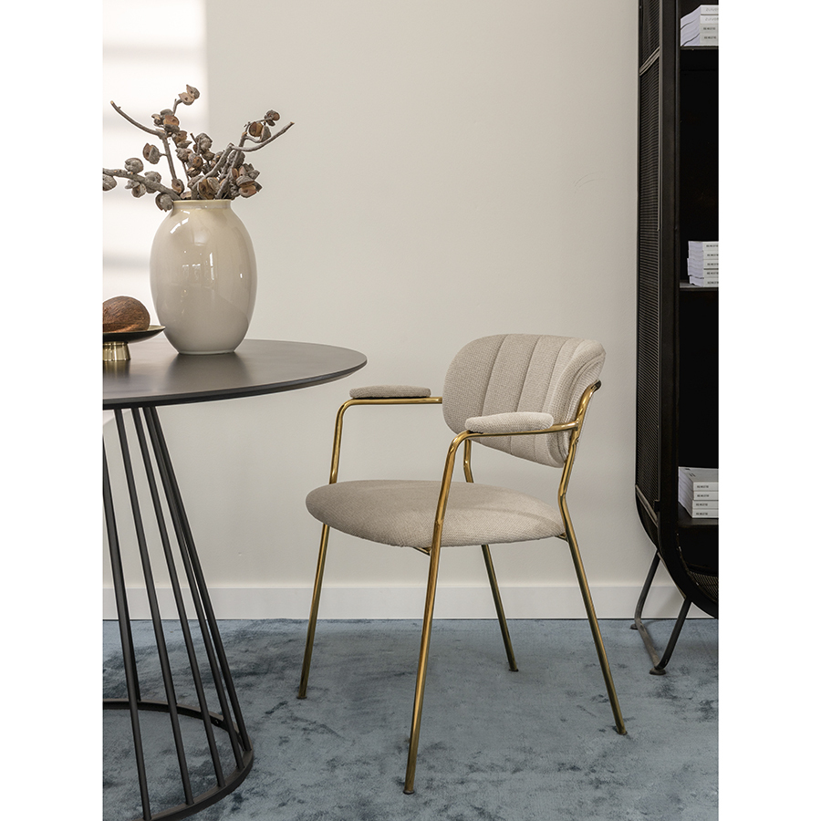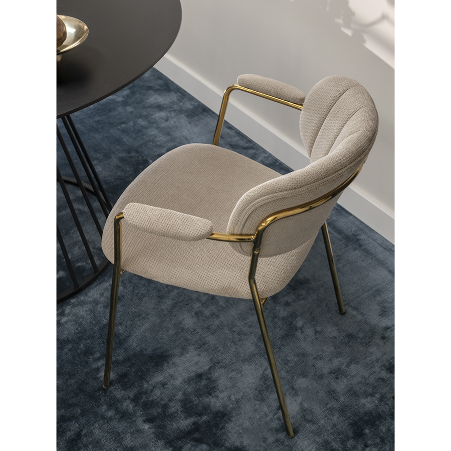 Стул Eirill с обивкой из фактурного шенилла смотрится стильно и презентабельно. Материал приятный на ощупь, износостойкий и нетребовательный в уходе. Комфорт при сидении достигается за счет широкой, полукруглой спинки, глубокой посадки и высоких подлокотников с мягкими накладками. Плавные формы и декоративная строчка делают дизайн элегантным. Практичность и долговечность мебели обеспечивает прочный и надежный железный каркас. Модель органично вписывается в интерьер, оформленный в скандинавском стиле, эклектика, фьюжн, неоклассика и др.