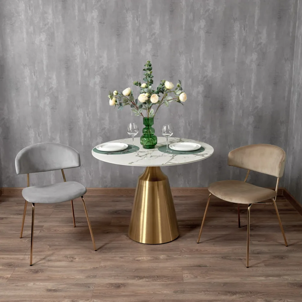 Ножки стула изготовлены из полированной нержавеющей стали с покрытием из нитрида титана, что создаёт эффект натурального золота и придаёт изделию роскошный вид.