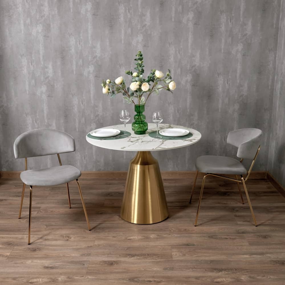 Ножки стула выполнены из полированной нержавеющей стали с напылением нитрида титана, что создает эффект натурального золота. Это придает стулу элегантный и роскошный вид.