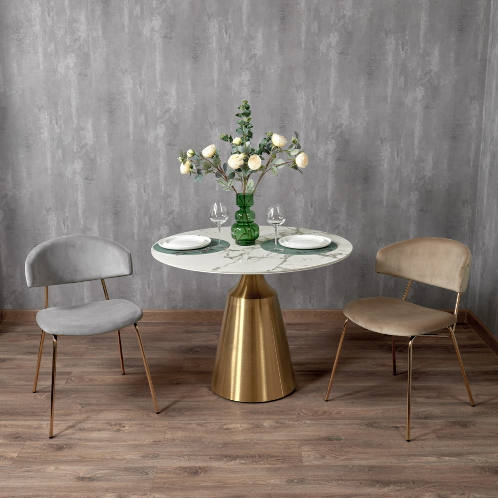 Ножки стула изготовлены из полированной нержавеющей стали с покрытием из нитрида титана, что создаёт эффект натурального золота и придаёт изделию роскошный вид.