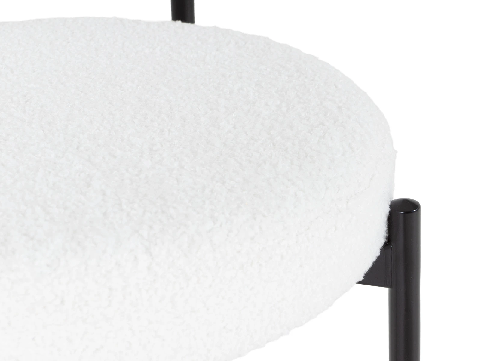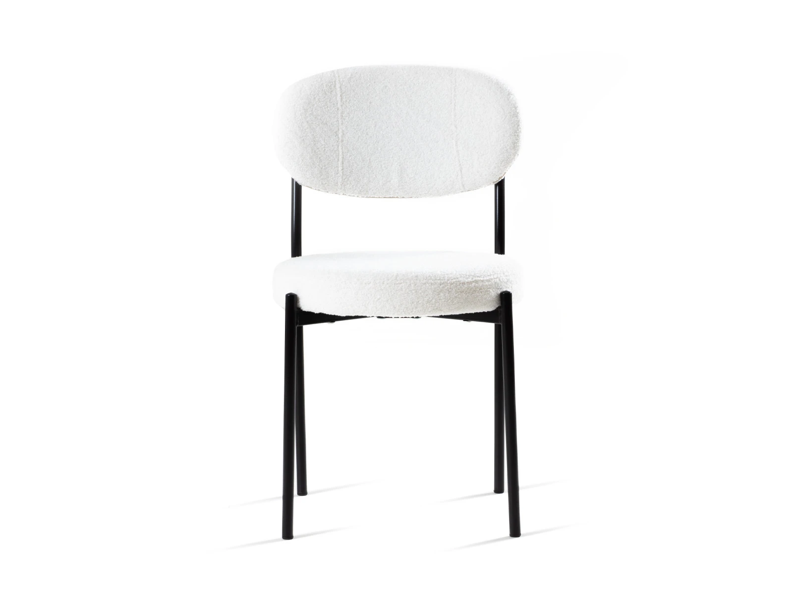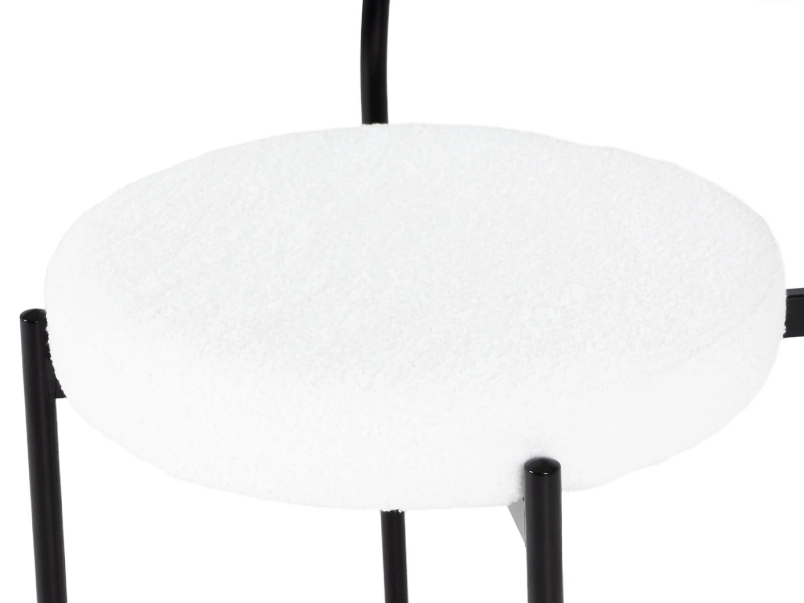 Материал обивки - искусственный мех. Прочный металлический каркас. Металлические опоры черного матового цвета. На опорах предусмотрены защитные пластиковые накладки, которые придают стулу дополнительную устойчивость и защищают пол от царапин.