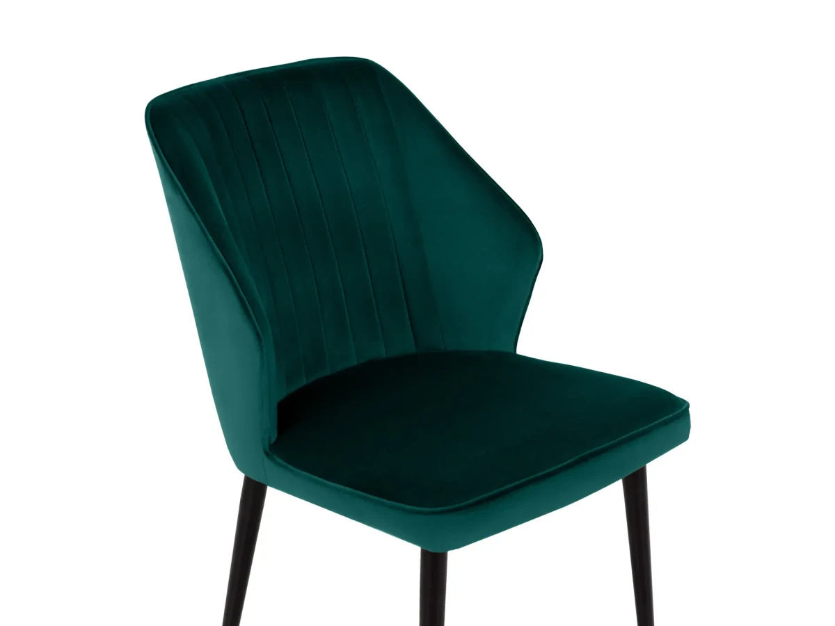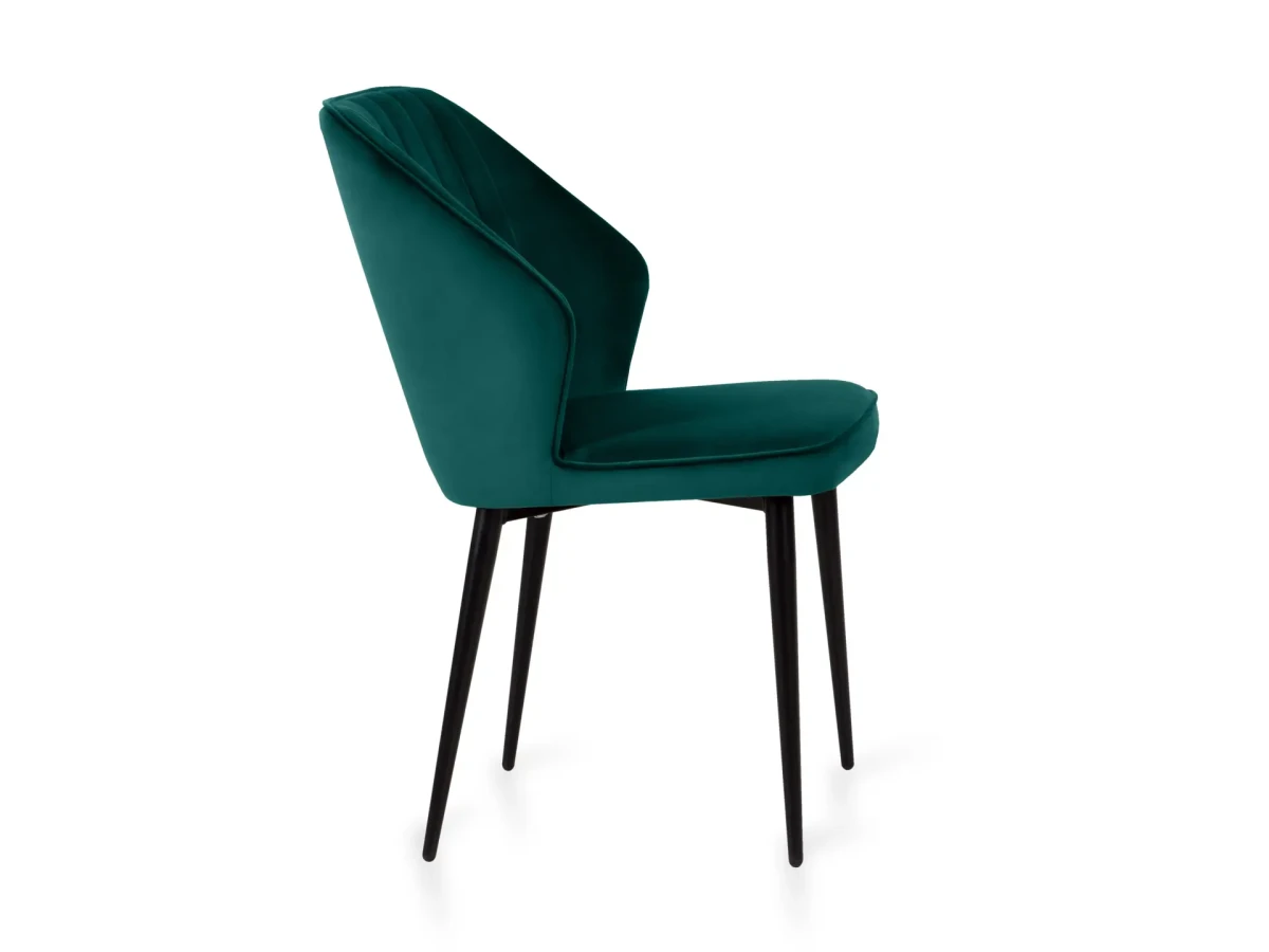 Стул на металлических опорах черного матового цвета. На опорах предусмотрены защитные пластиковые накладки, защищающие пол от царапин. Металлический каркас. Ткань велюр. Наполнение: формованный высокопрочный пенополиуретан.