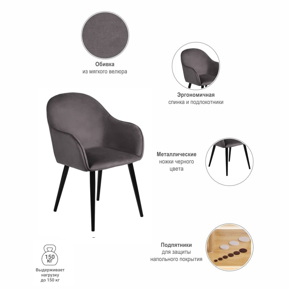 Хотите купить кресло? Не спешите! Стул Frida такой же мягкий и удобный, как кресло и тоже имеет подлокотники. При этом он намного легче, мобильнее и занимает меньше места. Отличительная особенность серии в использовании удобных подлокотников и мягкой рогожки для обивки. Нейтральный тёмно-серый цвет подчеркнет классический интерьер. Сочетание серого и черного цветов — это классика, в которой стулья для кухни или гостиной подчеркнут строгость и изысканность интерьера. А металлические ножки будут отлично сочетаться с мебелью с аналогичными ножками или фурнитурой.