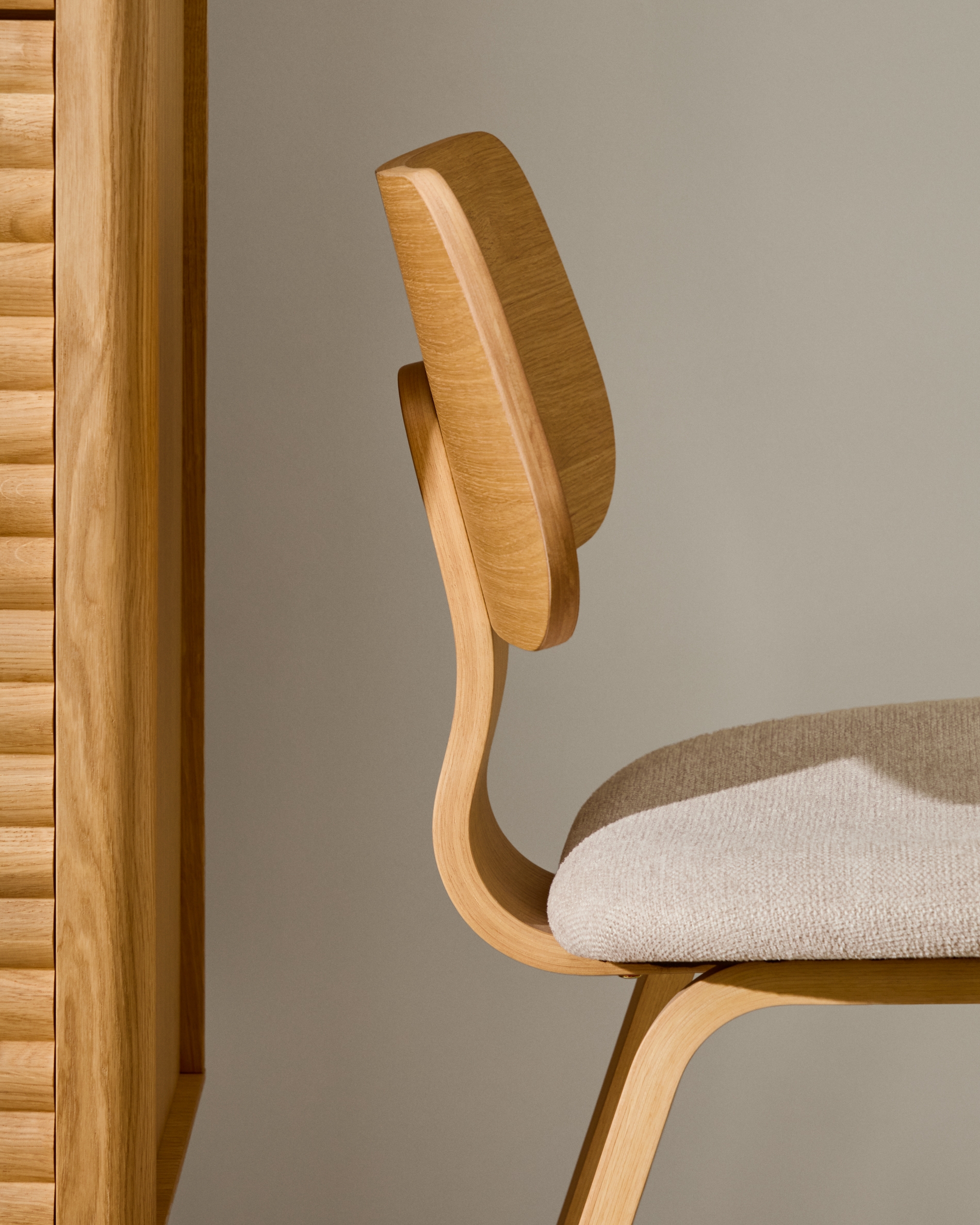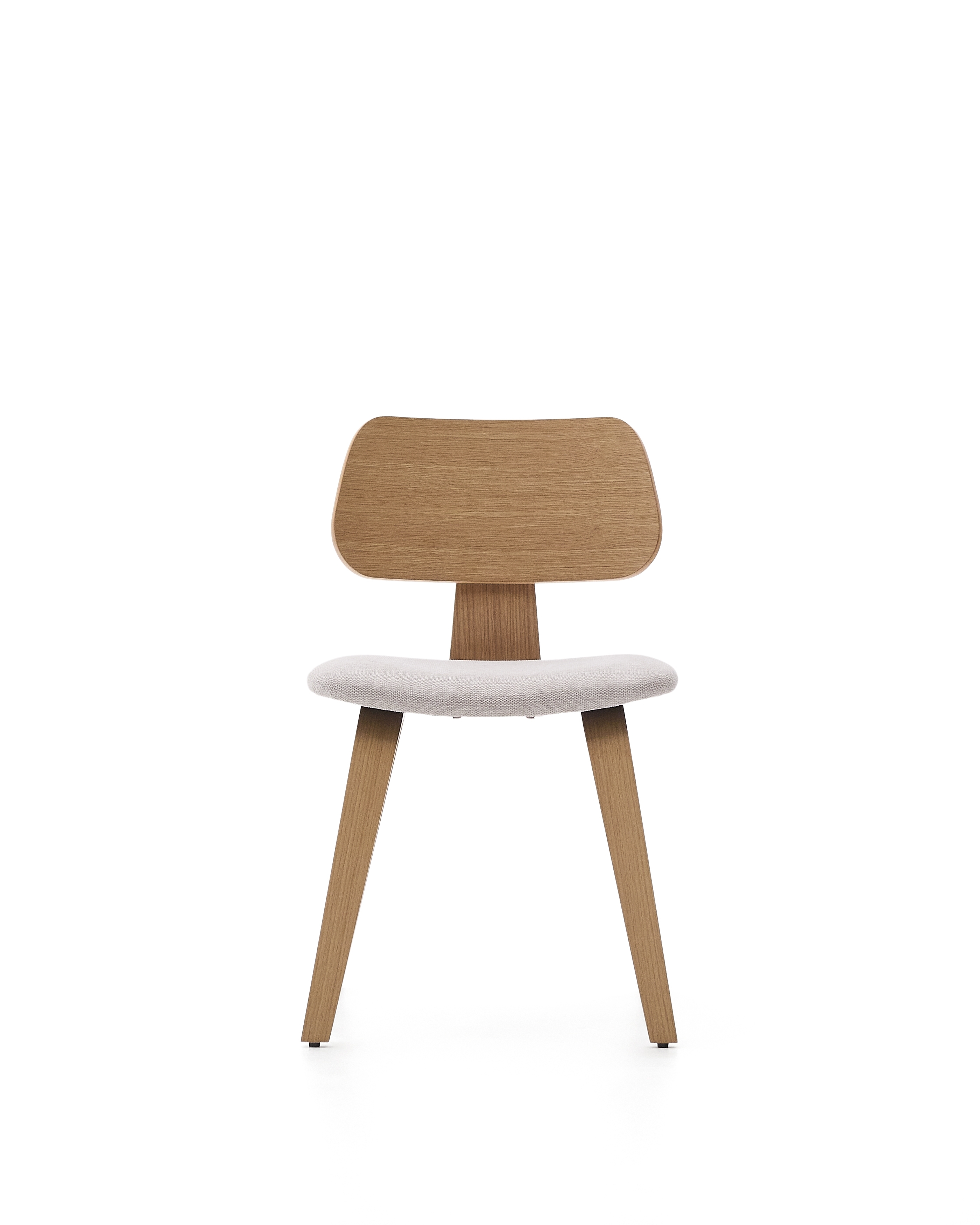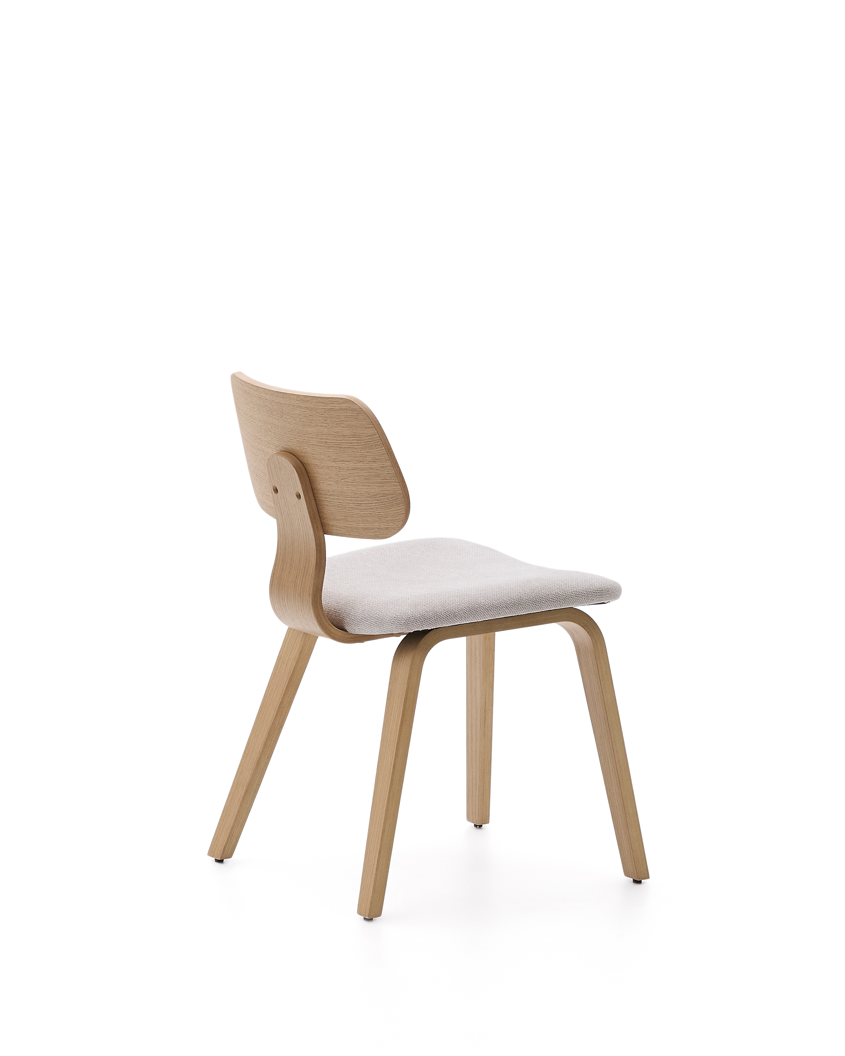 Этот стул сочетает в себе теплоту и естественную красоту дубового шпона с прочностью каучукового дерева, создавая предмет, который выделяется как своей эстетикой, так и функциональностью. Его вневременной и элегантный дизайн подчеркивает уникальную структуру дуба, добавляя изысканный штрих любому пространству, в то время как каучуковое дерево обеспечивает прочную и долговечную конструкцию, идеально подходящую для повседневного использования.