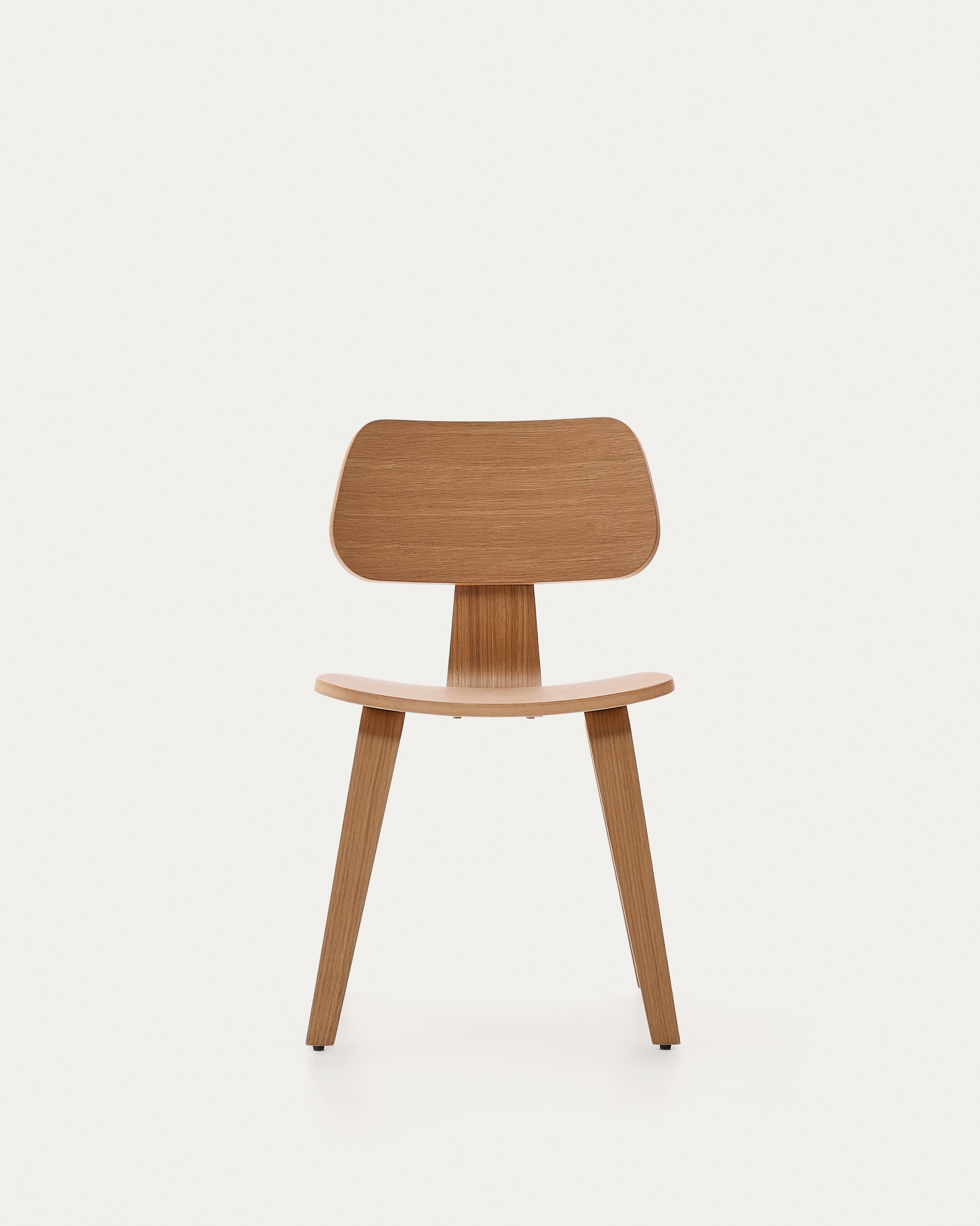 Этот стул сочетает в себе теплоту и естественную красоту дубового шпона с прочностью каучукового дерева, создавая предмет, который выделяется как своей эстетикой, так и функциональностью. Его вневременной и элегантный дизайн подчеркивает уникальную структуру дуба, добавляя изысканный штрих любому пространству, в то время как каучуковое дерево обеспечивает прочную и долговечную конструкцию, идеально подходящую для повседневного использования.