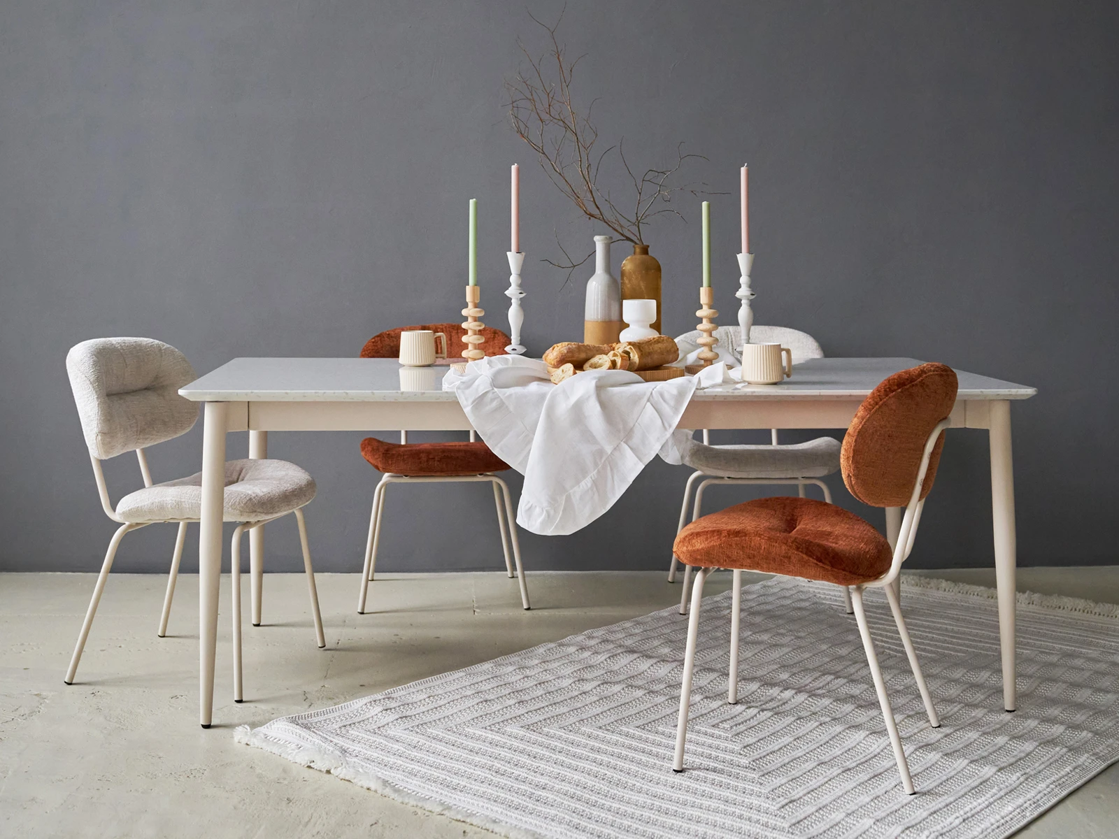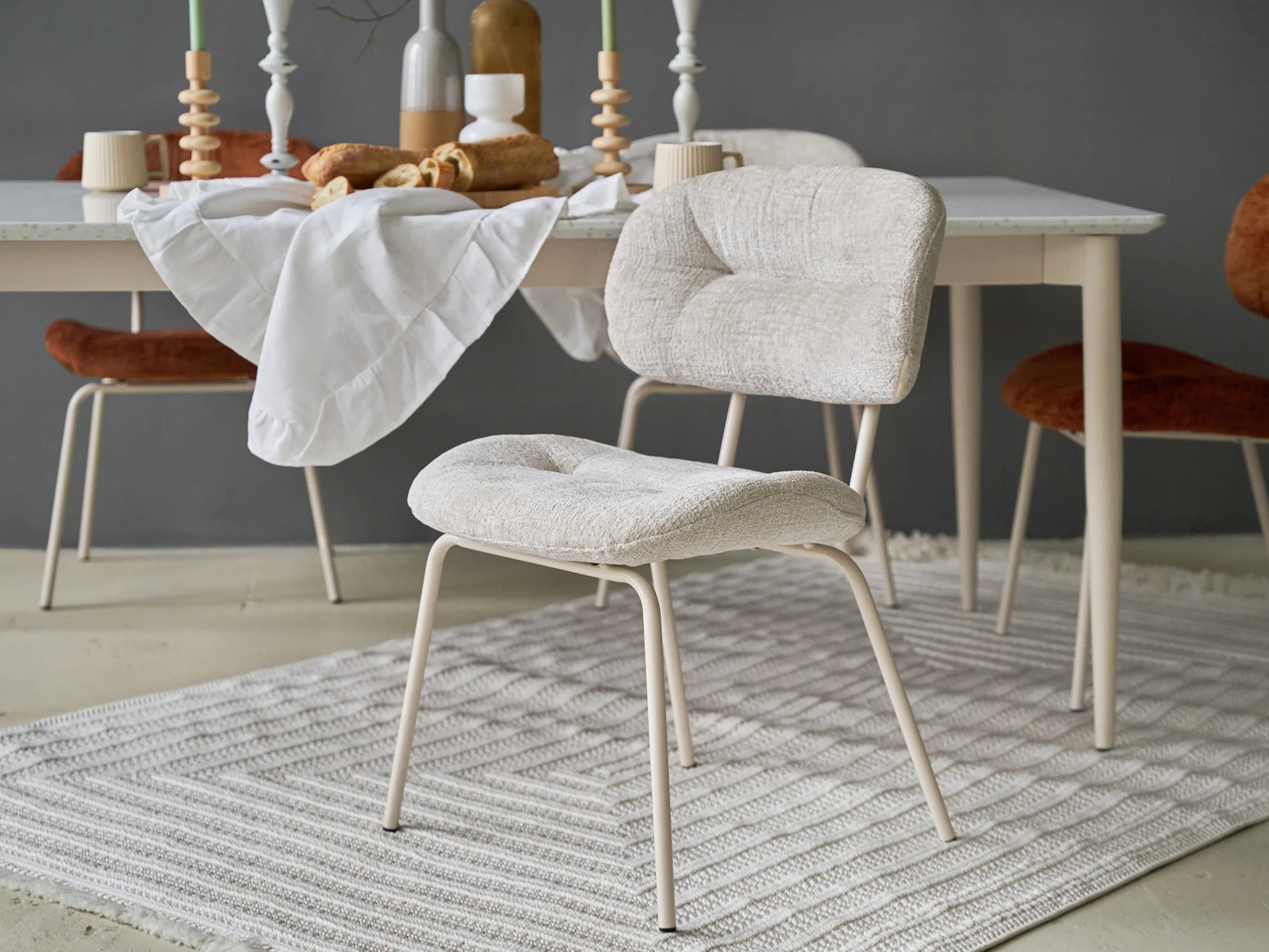Конструкция даёт поддержку корпусу и комфортную посадку. Мягкая обивка выполнена из износостойкого шенилла. Ворсистая ткань приятна на ощупь, выглядит благородно, поддержит ощущение уюта, тепла. Универсальная модель гармонично впишется как в пространство с минималистичным настроением, так и в локацию с ярким характером. Подходит для небольших помещений, где важно экономить площадь. Стул Gigi доступен в терракотовом и бежевом цвете на ваш выбор.
