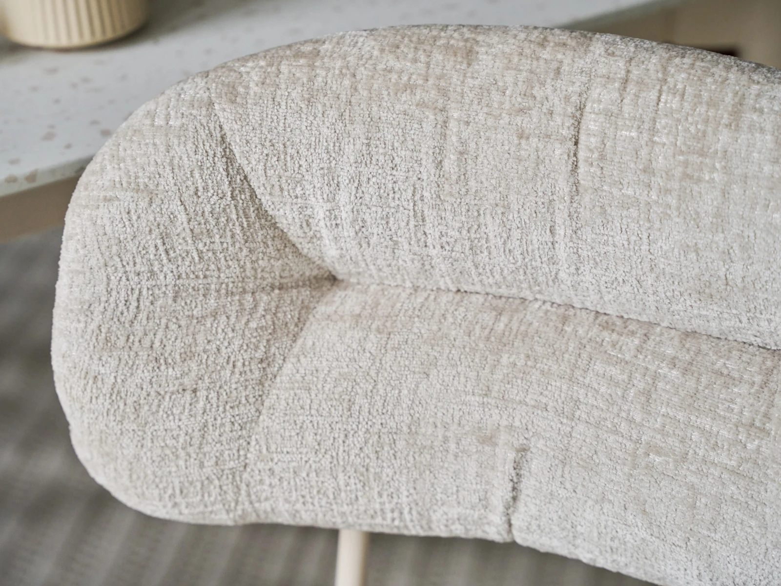 Материал обивки - шенилл, материал ножек - металл с кремовым порошковым покрытием.