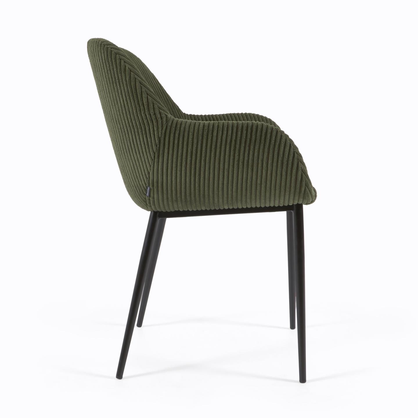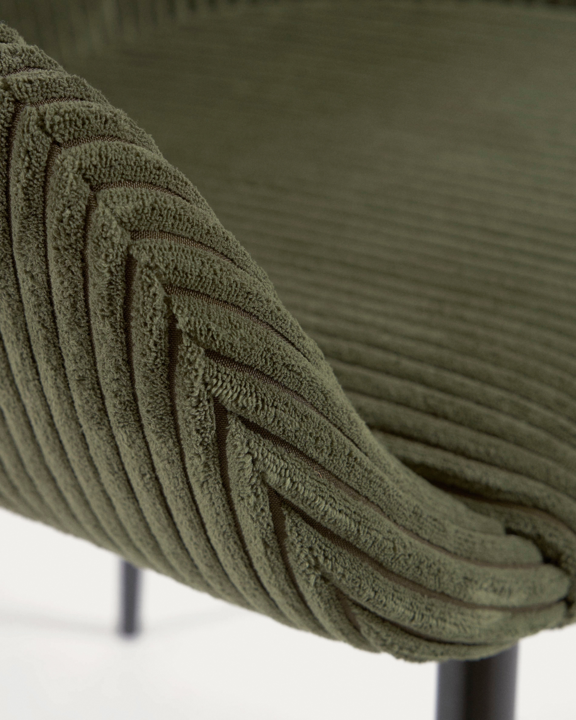 Стул, покрытый зеленым вельветом, с современным дизайном идеально подходит как для дома, так и для офиса. Семидесятые вернулись, чтобы украсить ваш дом и гардероб.