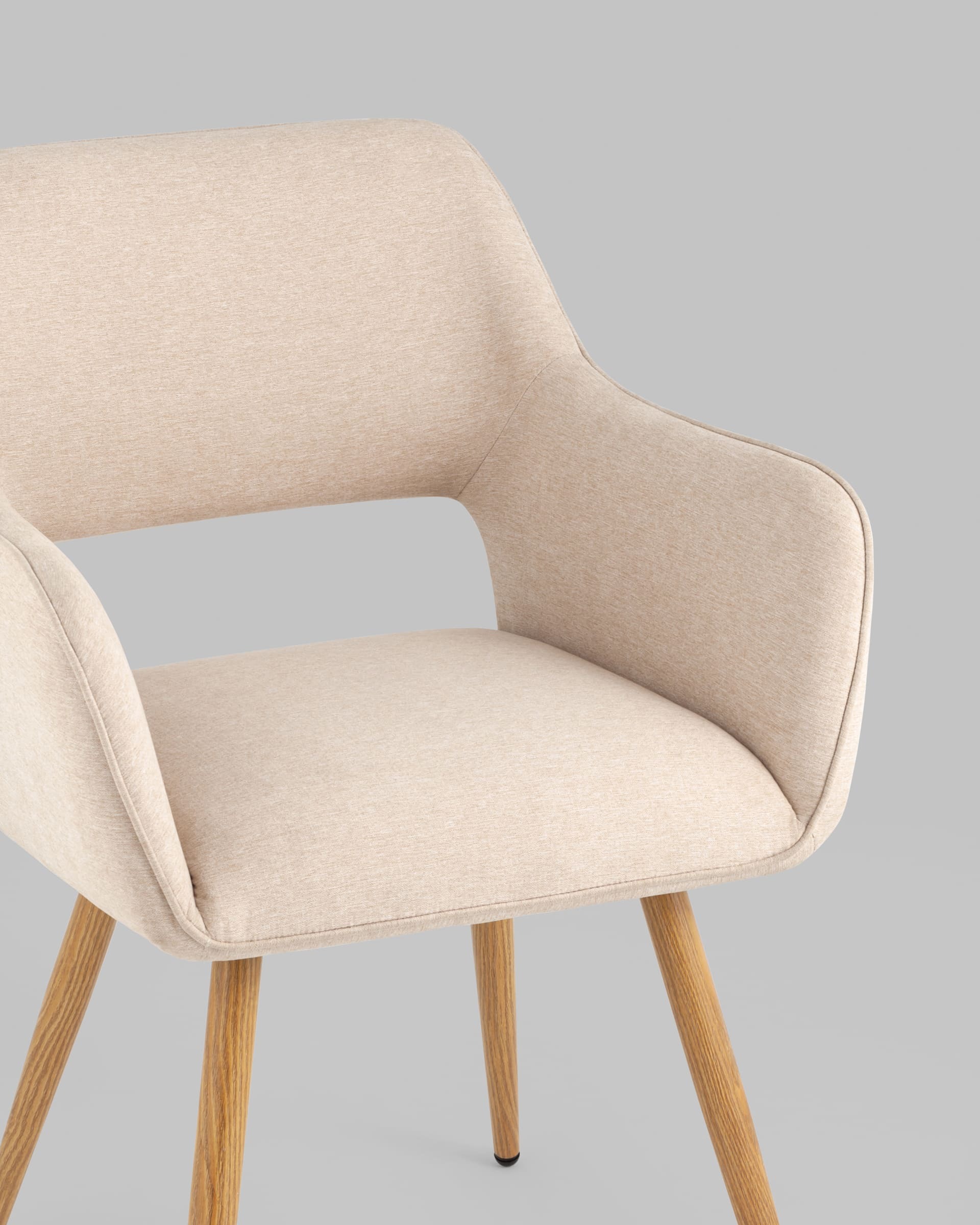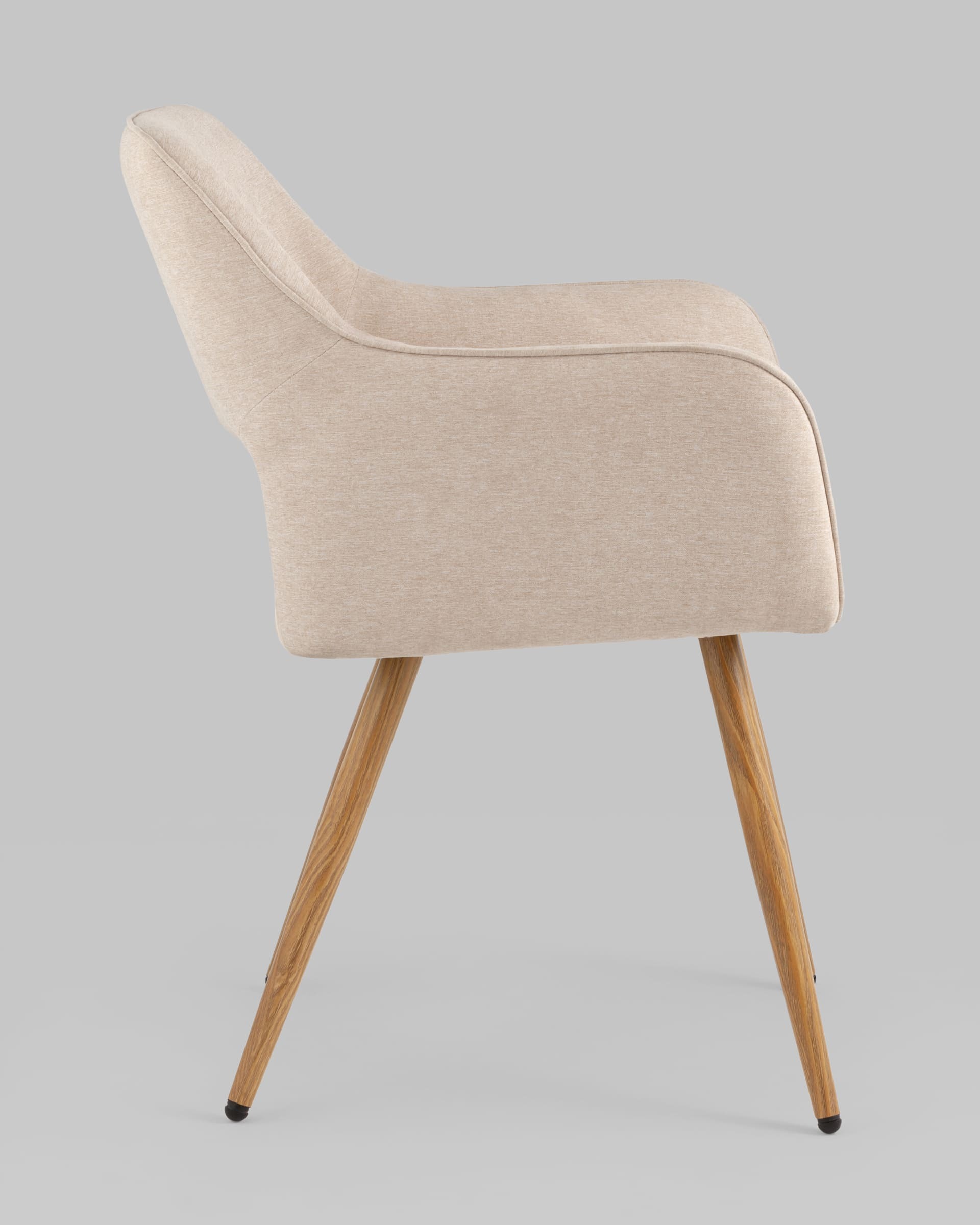 Комплект из двух стульев Кромвель II бежевый, широкая эргономичная спинка, удобные подлокотники, обивка плотная ткань, металлические ножки с принтом под дерево 2 шт