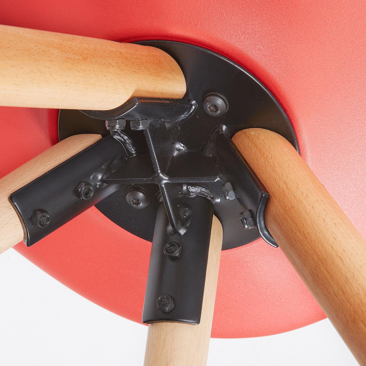 Ножки сделаны из натурального дерева, цвет им оставлен натуральный (покрыты только лаком). Они выполнены наподобие штативов, симметрично расходящихся в разные стороны из центра сиденья. Крепеж визуально выделен для демонстрации надежности конструкции.