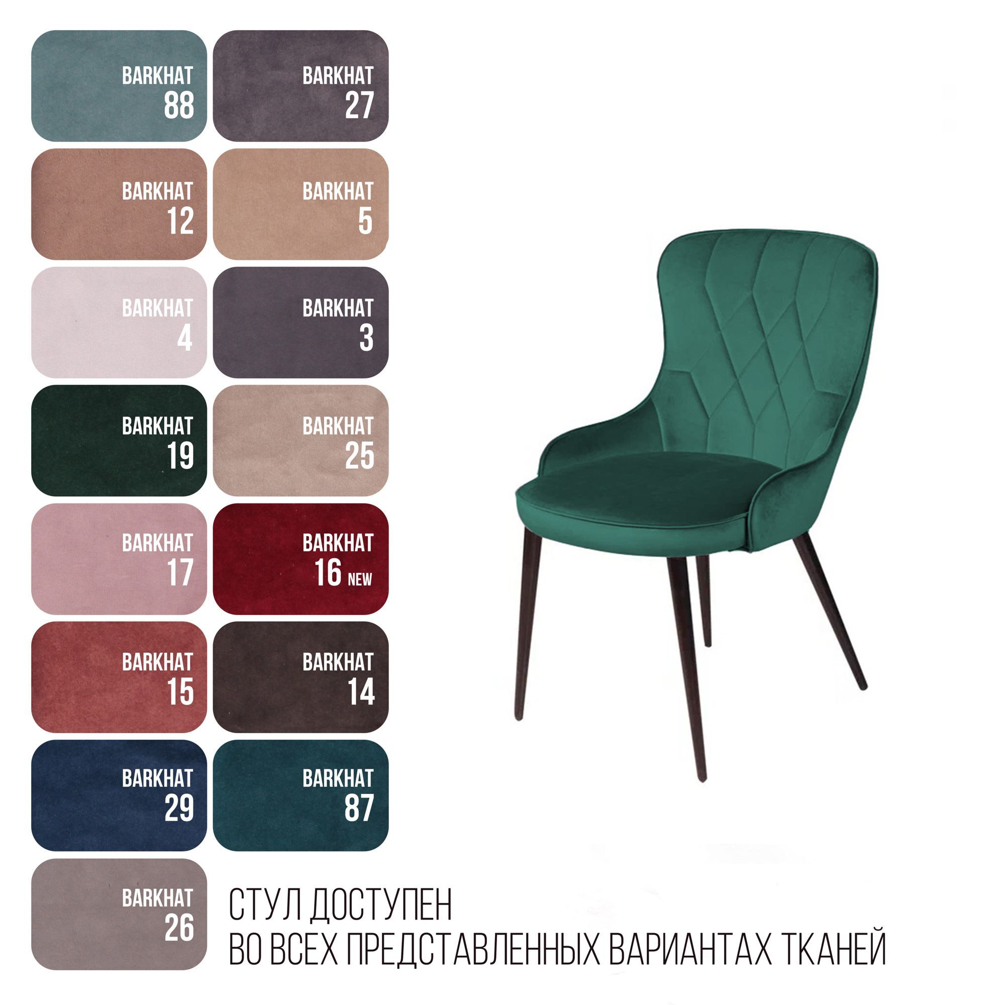 strong*Оттенок может выглядеть по-разному в зависимости от направления ворса./strong Шикарный стул Leonardo станет прекрасным дополнением любого интерьера. Широкое, просторное сиденье, изогнутая высокая спинка-основание - черты данного стула. Визуально мягкие формы придают силуэту легкость и добавляют роскоши интерьеру. Декоративный кант спинки и сиденья выделяет общую стилистическую композицию стула и придает модели более выразительные очертания. Leonardo идеален для просторных помещений. Его большие габариты и высокая спинка позволят модели выделиться среди остальных элементов интерьера. Стильные конусообразные металлические опоры придают прочности конструкции стула. Ромбовидная отстрочка внутренней части спинки является визитной карточкой данной модели. Крупные ромбы заявляют о масштабной индивидуальности стула. Каркас Прочный металлический каркас обеспечит продолжительный срок службы Наполнитель В качестве наполнения сиденья и спинки используется формованный высокопрочный пенополиуретан. При ежедневной эксплуатации на протяжении длительного времени он сохранит первоначальную форму. Опоры Металлические ножки в виде конуса черного или белого матового цвета. На опорах предусмотрены защитные пластиковые накладки, которые придают стулу дополнительную устойчивость и защищают пол от царапин. Гарантия Тщательная проверка качества изделий осуществляется на всех этапах производства: от подбора материалов и комплектующих до проверки готового изделия перед отправкой. На все изделия Top concept мы предоставляем гарантию 18 месяцев.