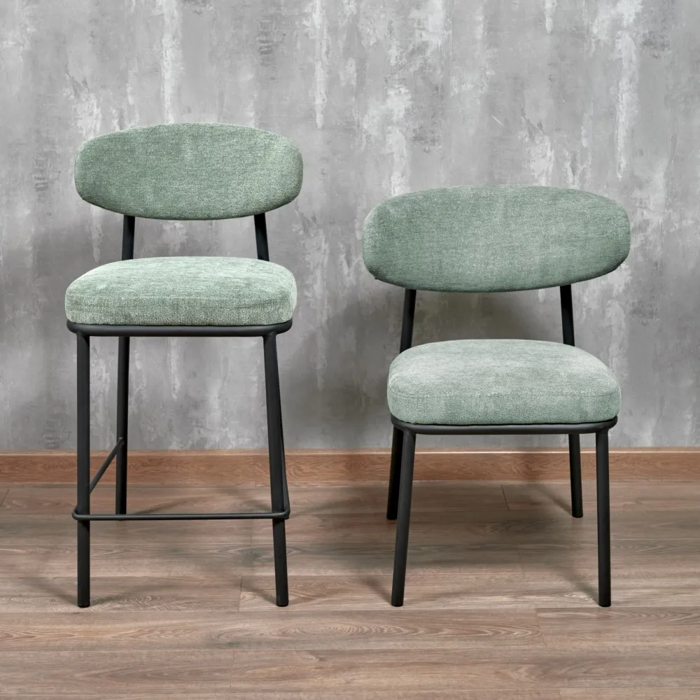 Сиденье и спинка стула выполнены из роскошной ткани букле, обладающей не только приятной на ощупь текстурой, но и высокой стойкостью к износу. Рельефная поверхность добавляет интерьеру натуральности, подчеркивает контуры стула и сглаживает жесткие формы, создавая гармонию в пространстве. Мелкозернистая фактура букле формирует теплую и спокойную атмосферу, приглашающую к отдыху.