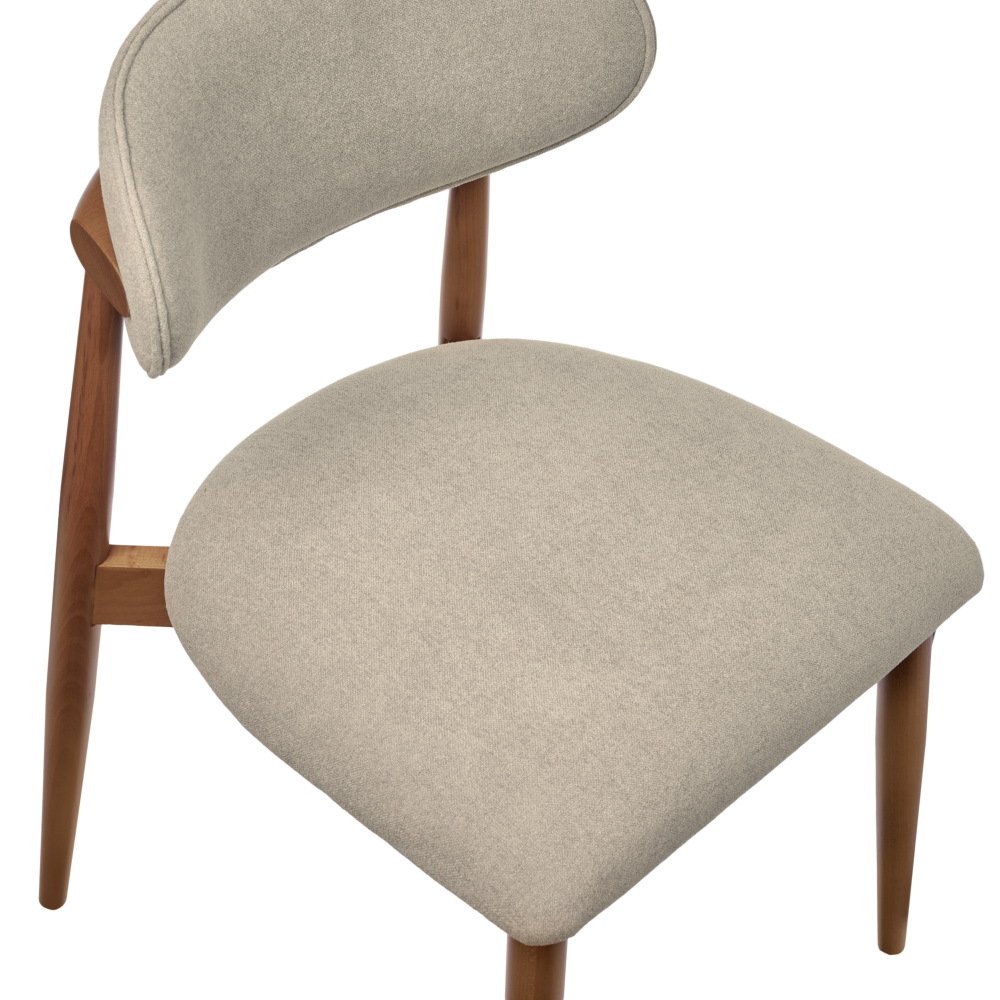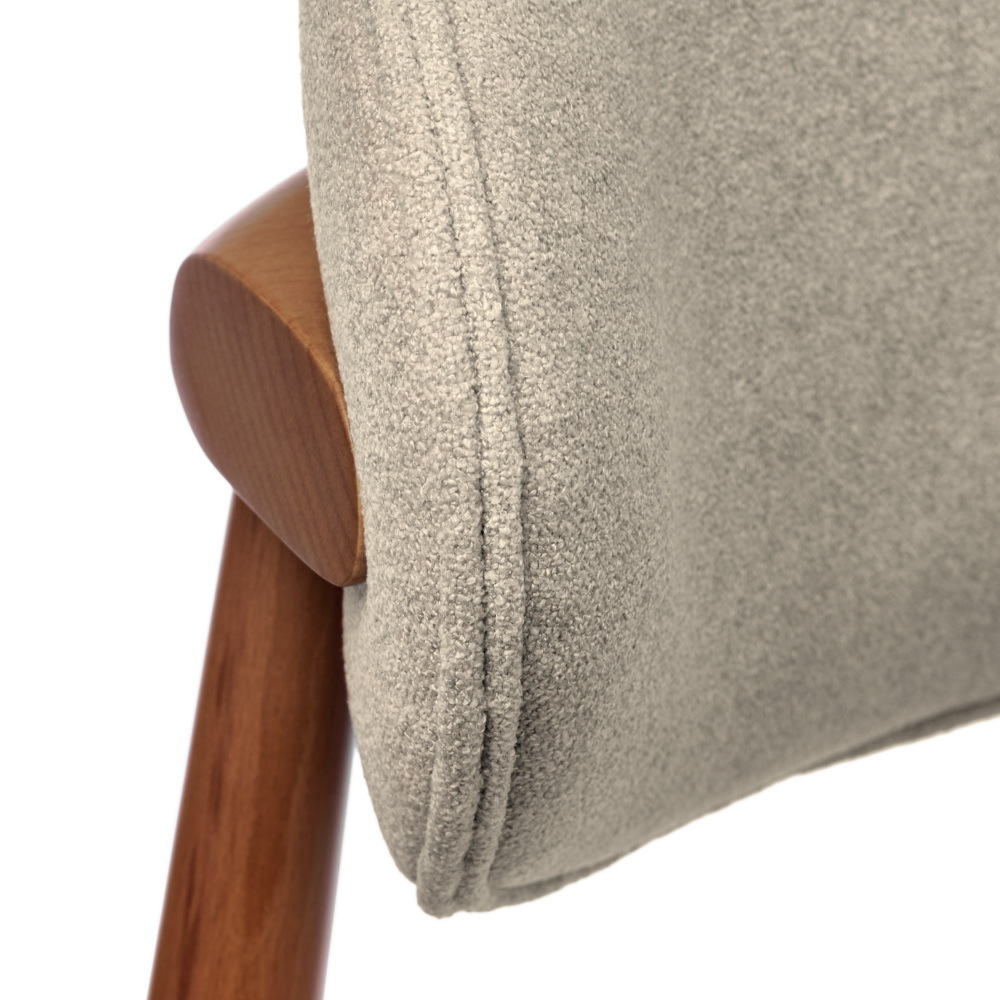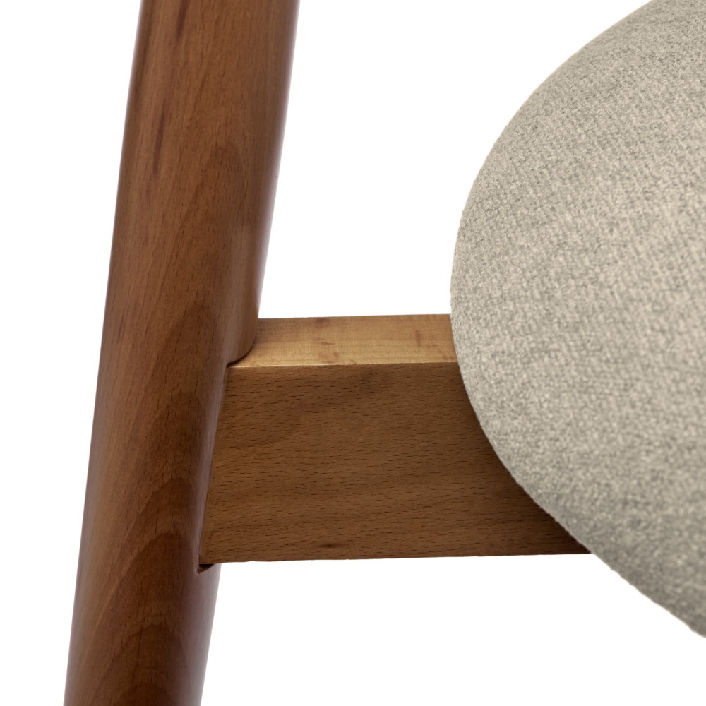 Оригинальный каркас стула изготовлен из массива натурального дерева бук в благородном ореховом цвете. Прочные и надёжные ножки стула гарантируют устойчивость и долговечность. Выпирающие части каркаса минимальны, что делает стул удобным для использования в ограниченном пространстве. Мелкая структура дерева образует удивительно гладкую поверхность, придающую стулу особый шарм.