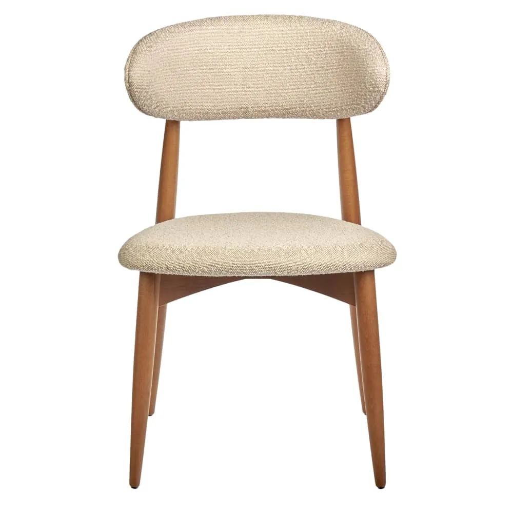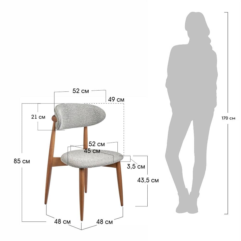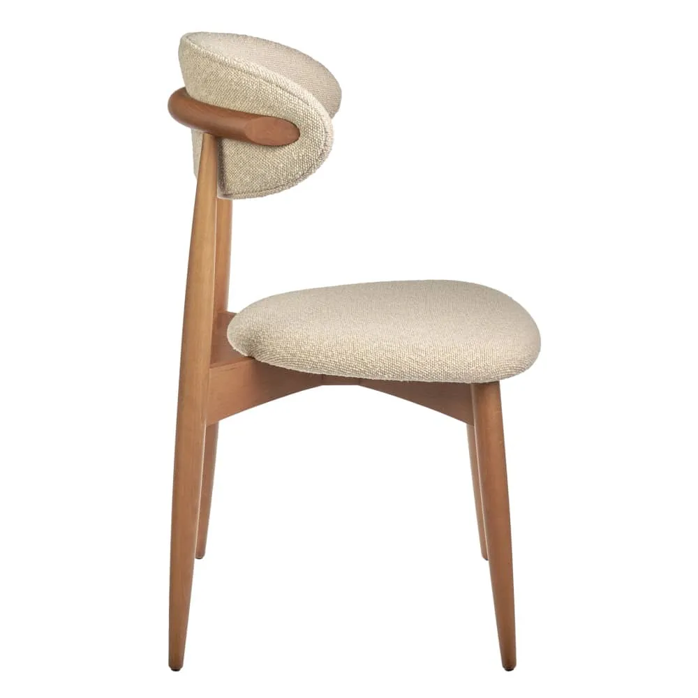 Сиденье и спинка изготовлены из высокоустойчивой ткани букле в цвете латте. Мягкие спинка и сидение обеспечивают максимальный комфорт. Оригинальный каркас из массива натурального дерева в цвете орех добавляет стулу элегантность. Стулья из бука отличаются прочностью и надежностью.