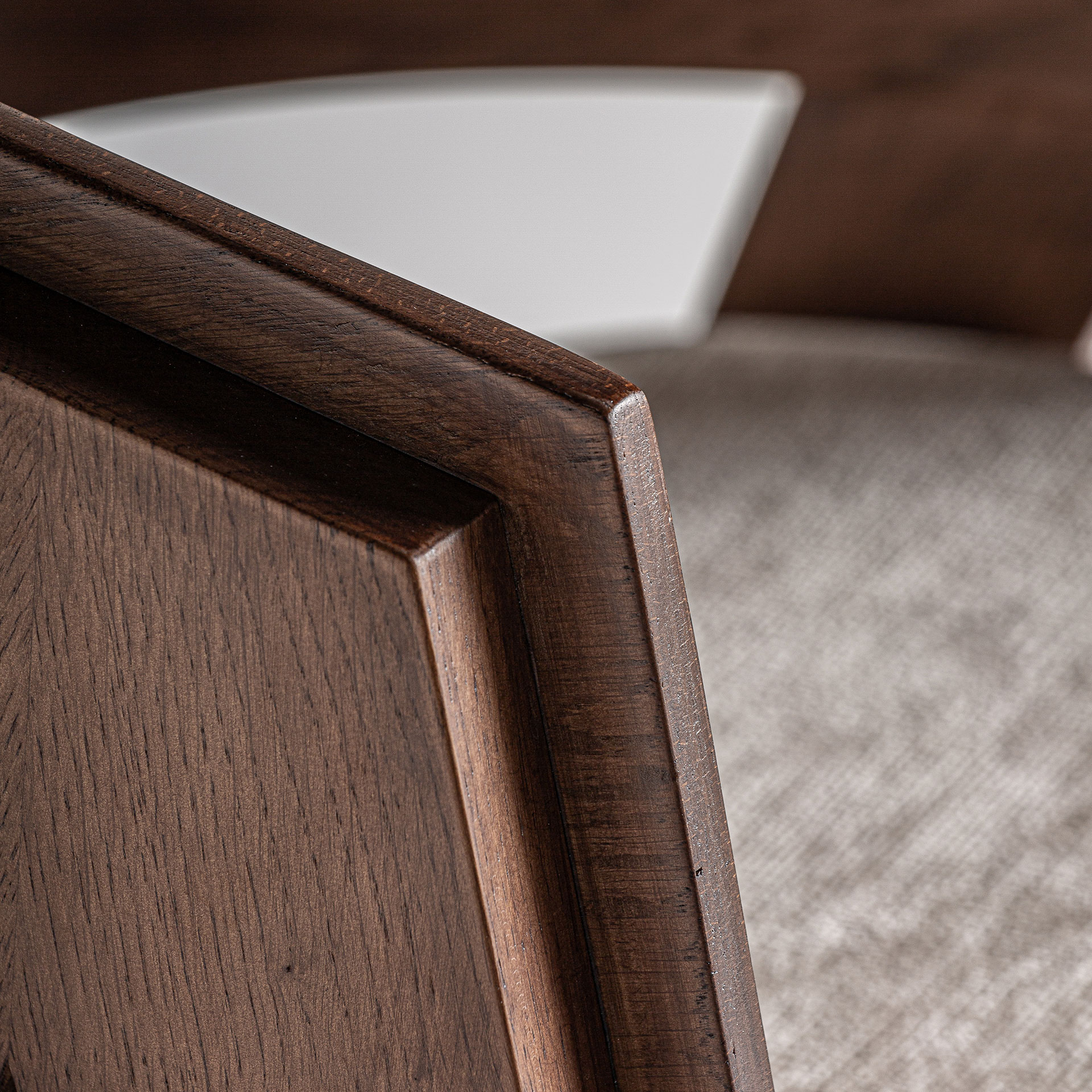 Стул Madiran, коричнево-бежевый цвет, колониальный стиль. Изготовлен из древесины дуба в сочетании с полиэстером.