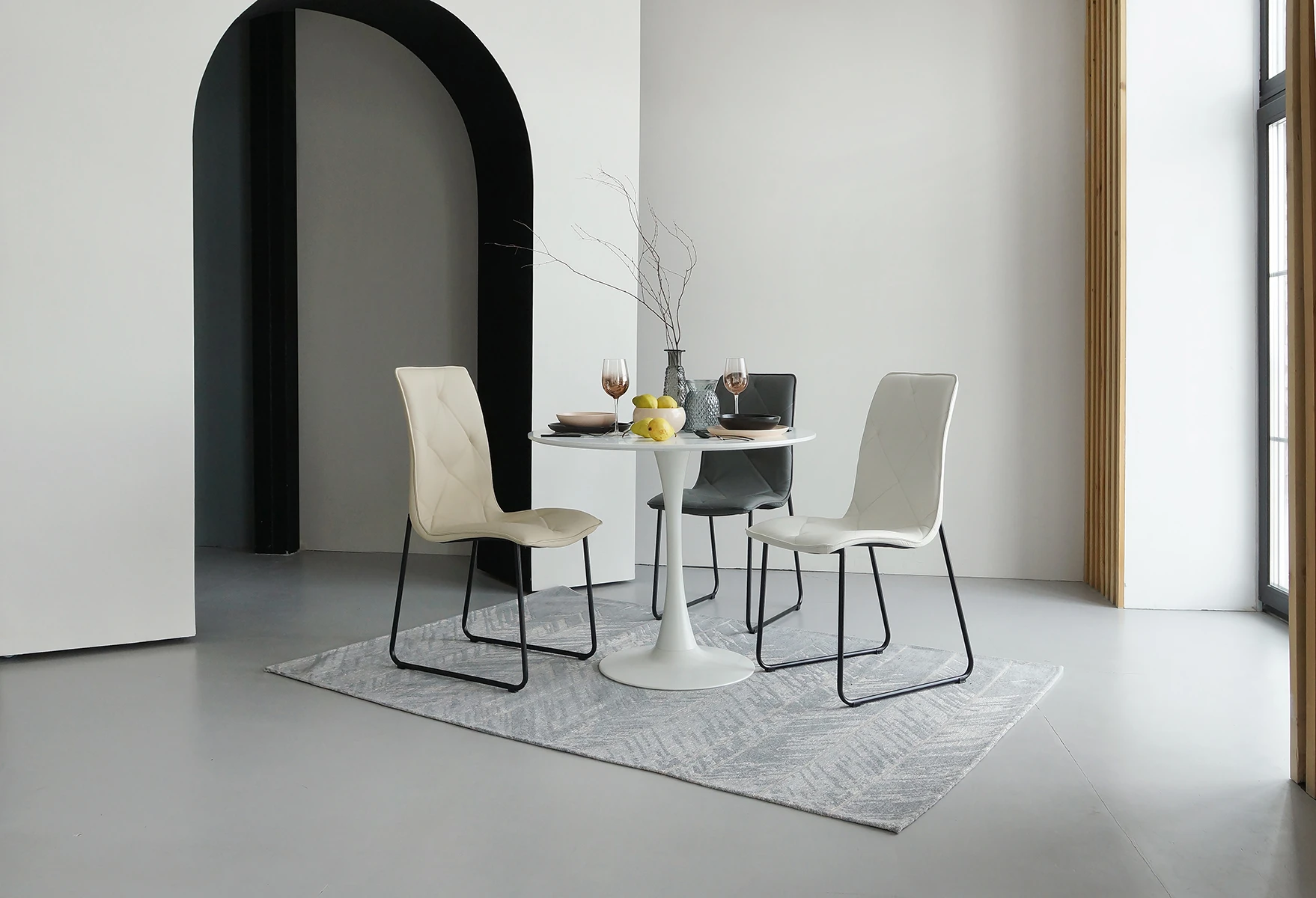 Материал обивки - экокожа, материал ножек - металл.