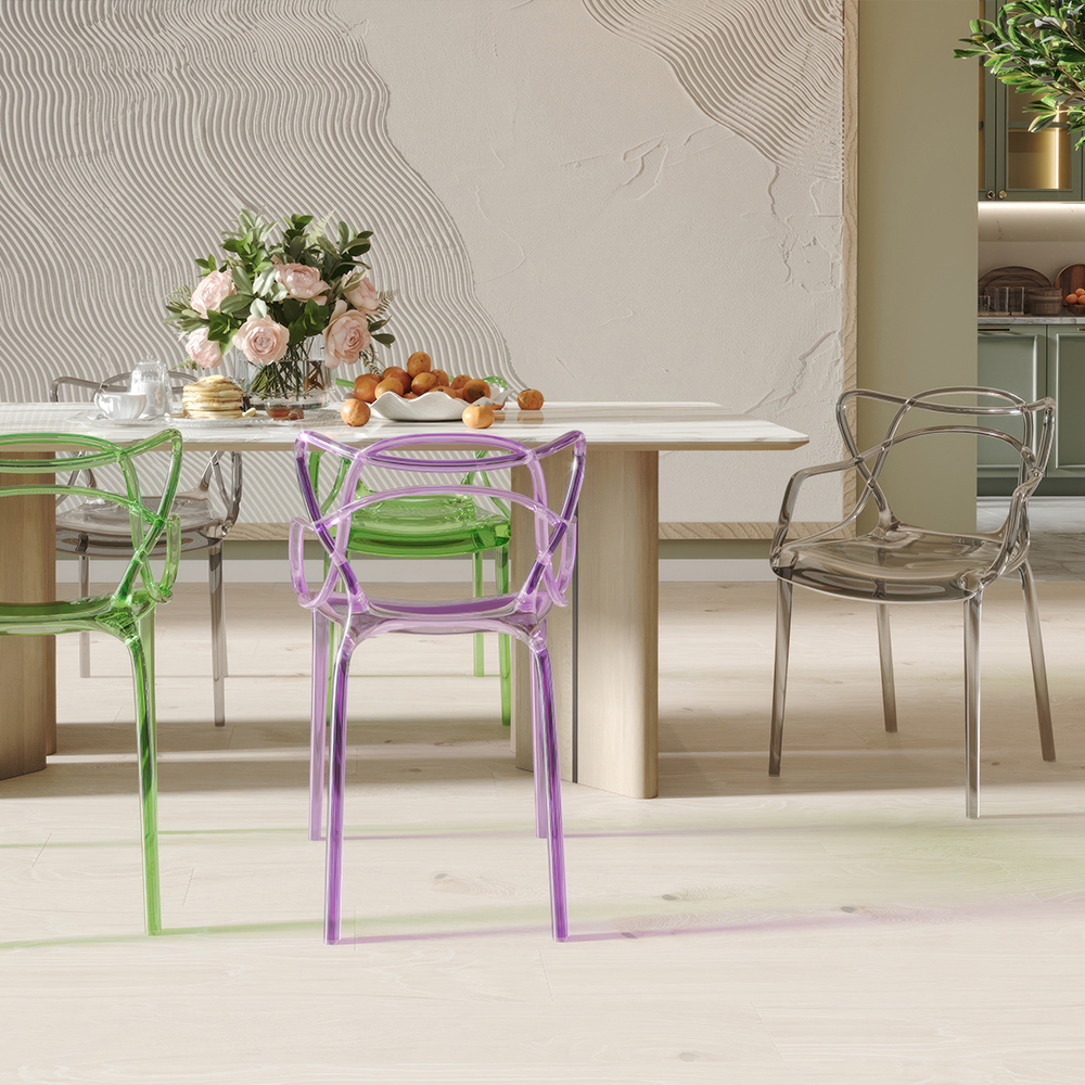 Стул Masters прозрачный сиреневый - одно из самых удивительных и привлекательных решений дизайна пластиковых стульев.