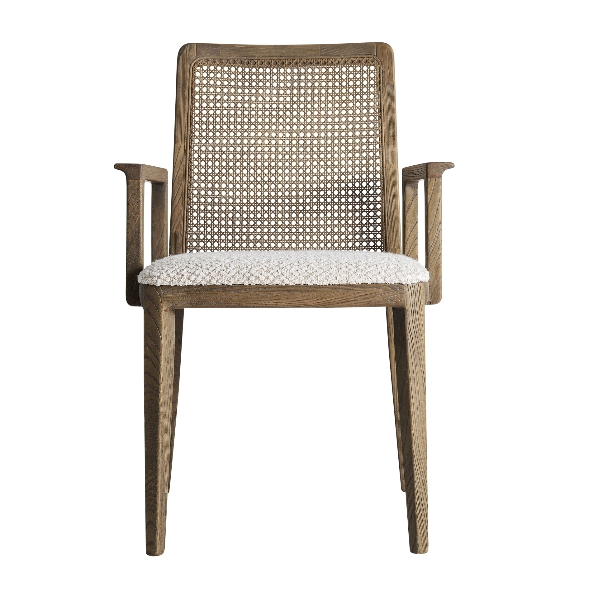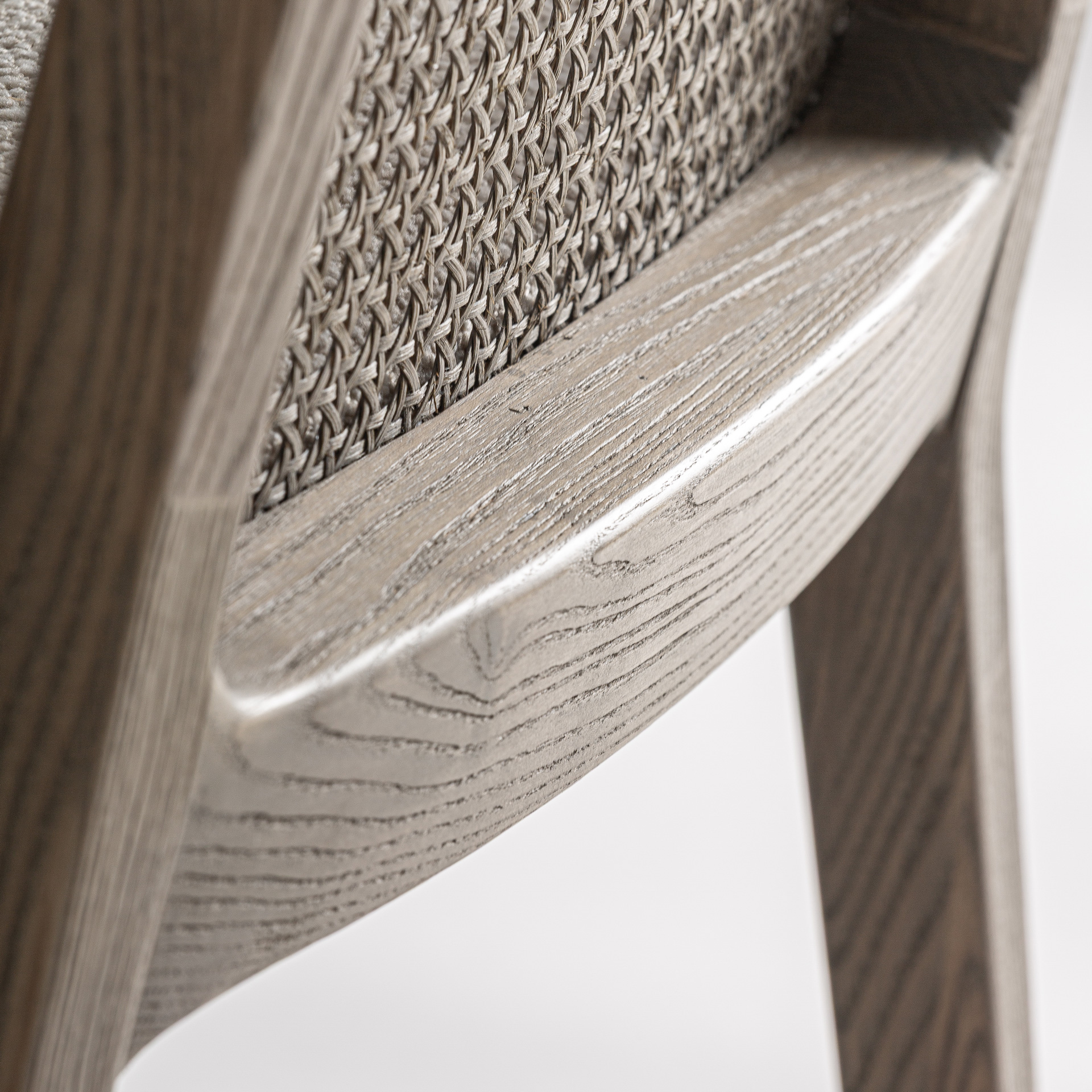 Стул из коричневого ясеня в сочетании с бежевым льном.