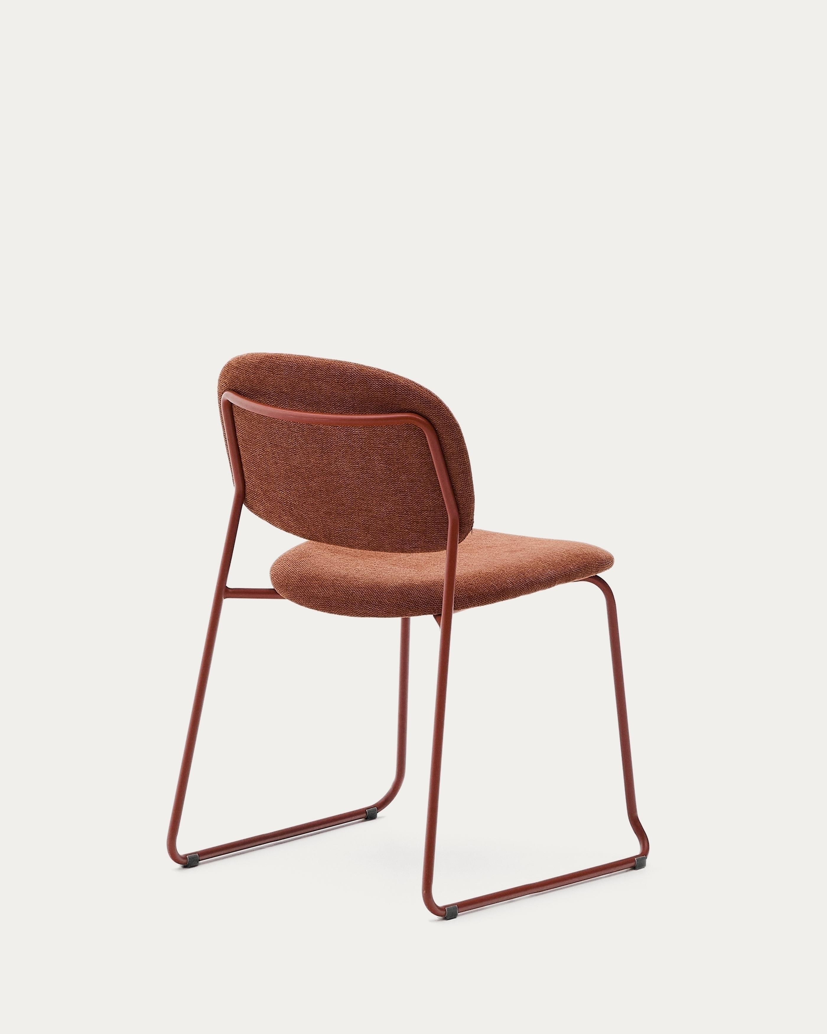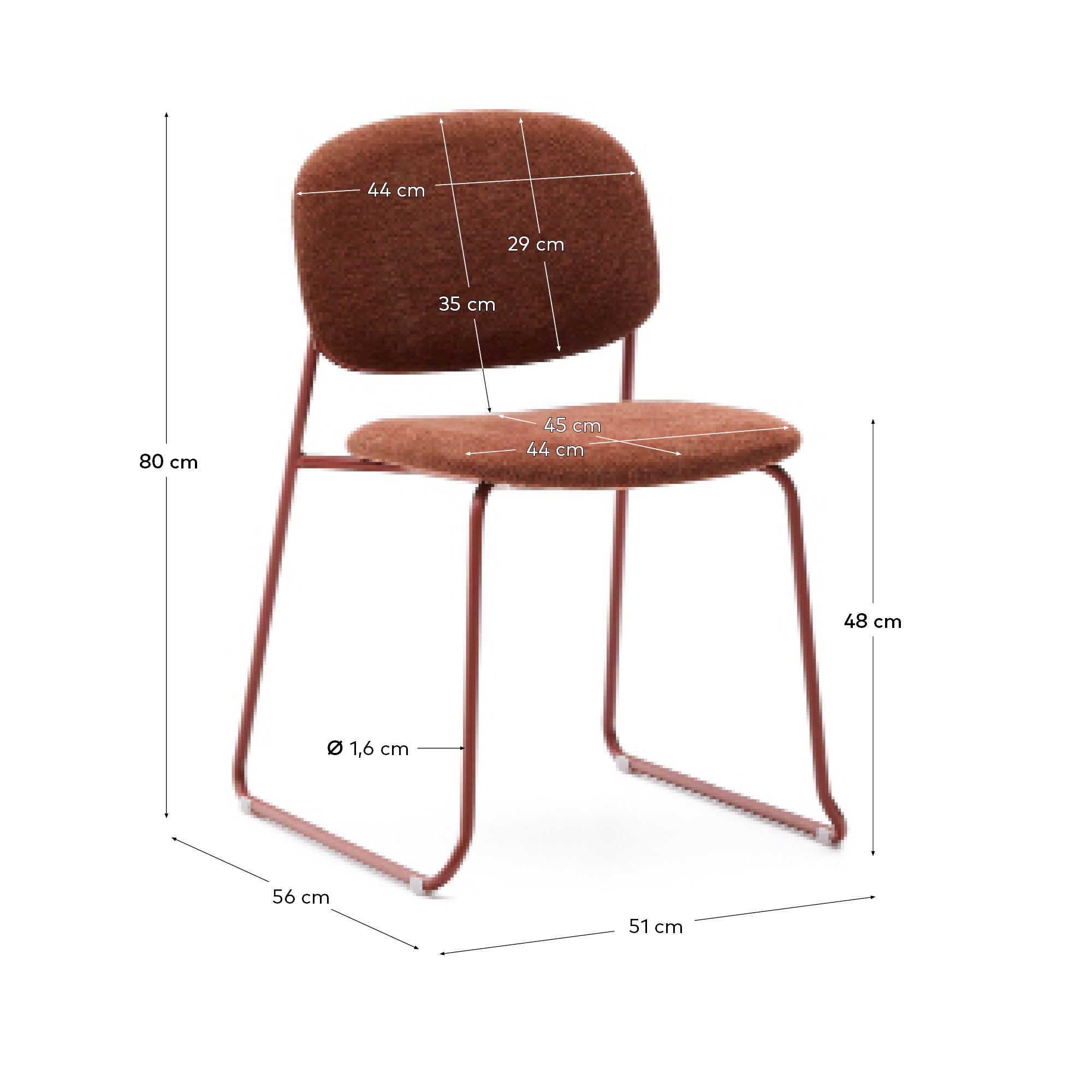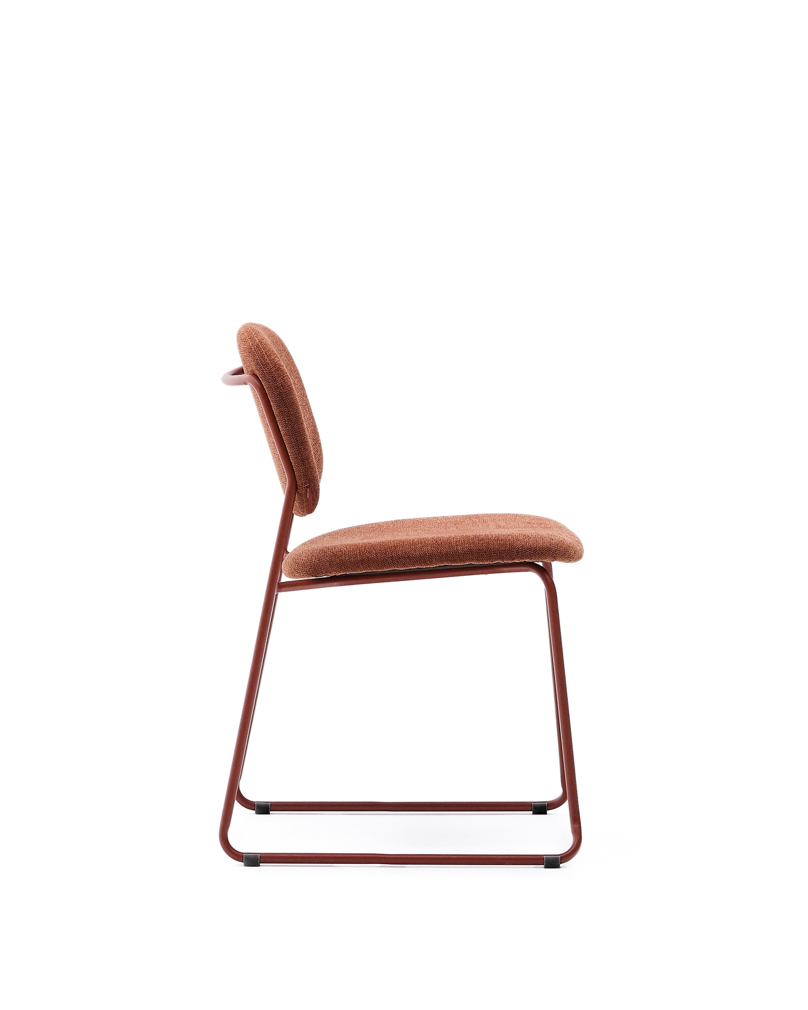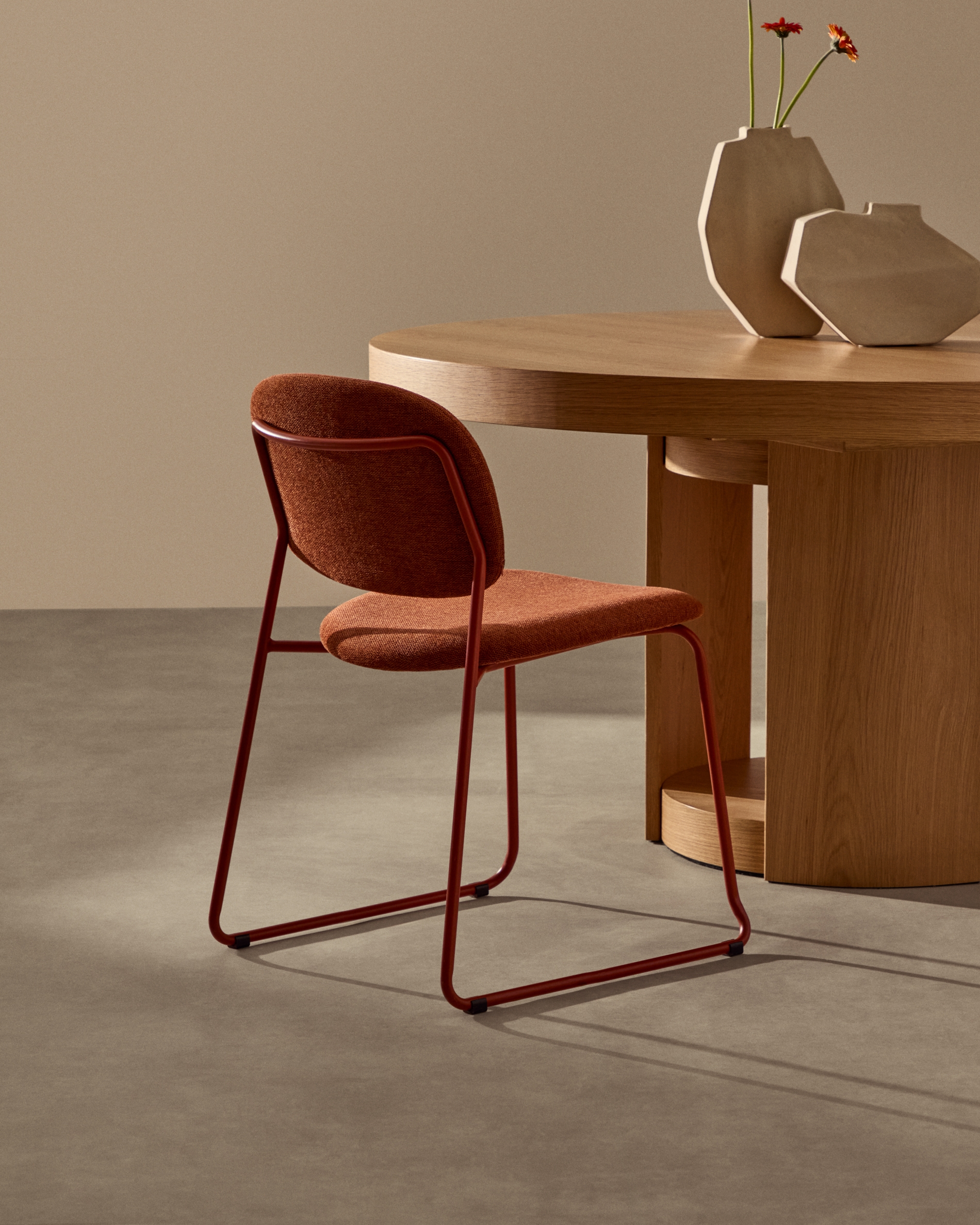 Дизайн дополняют ножки из микротекстурированного металла нежного терракотового тона, что добавляет современный и изысканный штрих. Используемая древесина имеет сертификат FSC Mix Credit, который гарантирует, что она изготовлена из смеси материалов из сертифицированных FSC лесов и контролируемой FSC древесины. Каждый стул уникален благодаря тщательному выбору ясеневого шпона, что гарантирует естественные вариации в дизайне, делая каждое изделие эксклюзивным.
