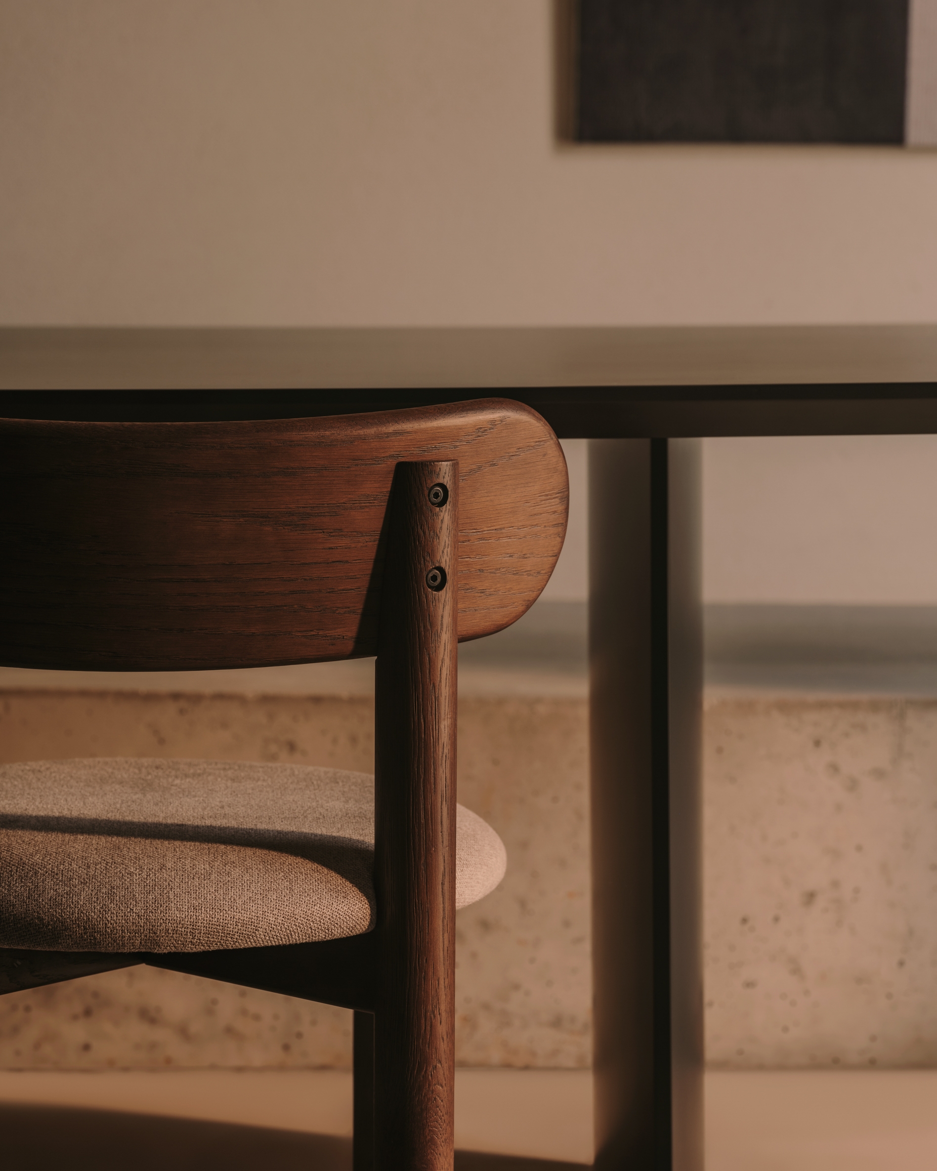 Стул Nebai из коричневой синели с каркасом из массива дуба и отделкой из ореха FSC MIX Credit