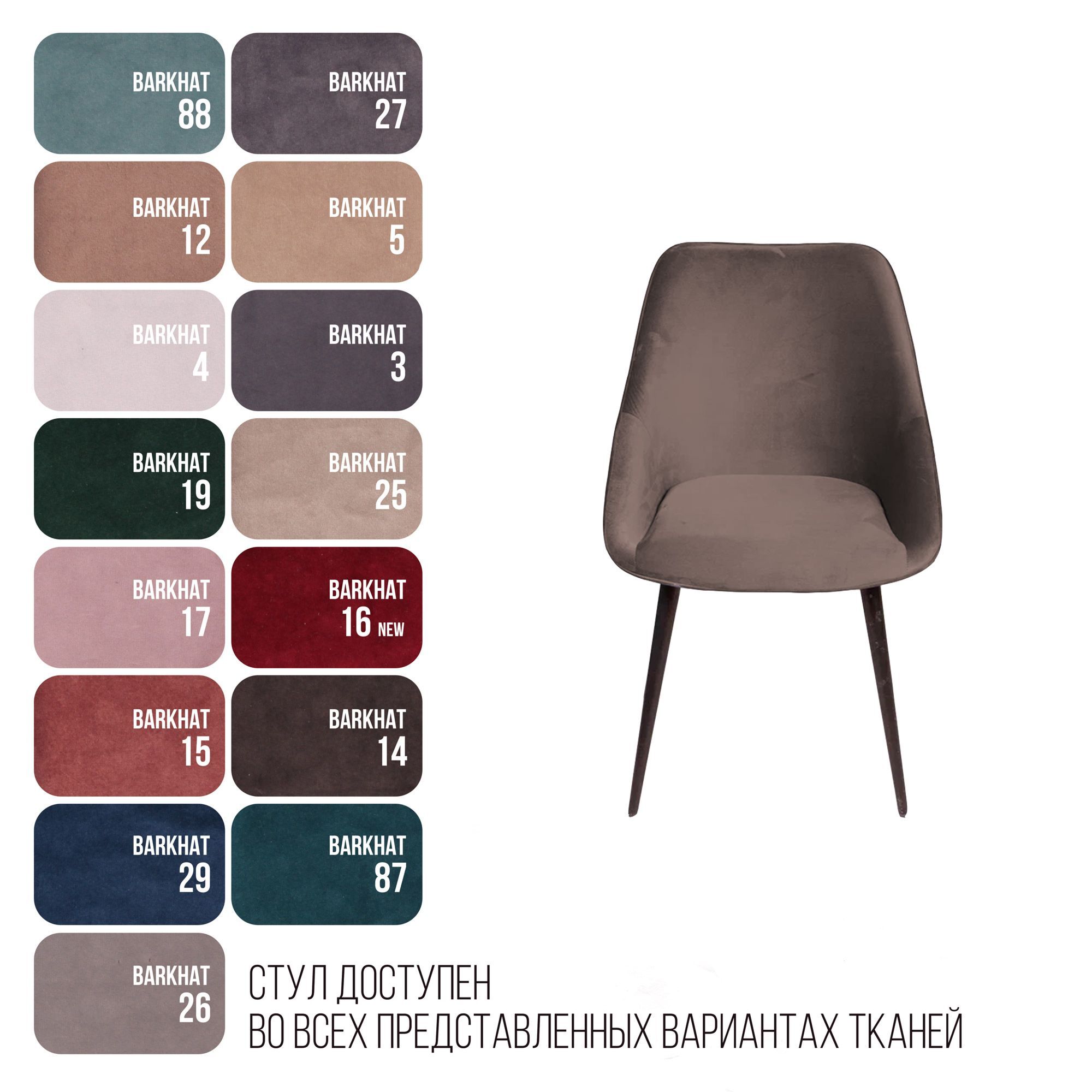 strong*Оттенок может выглядеть по-разному в зависимости от направления ворса./strong Стул "Neo" имеет элегантный дизайн, сочетающий простоту форм и геометричность линий. Отсутствие острых углов создает ощущение комфорта и безопасности. Каркас Надежный металлический каркас обеспечит продолжительный срок службы. Наполнитель В качестве наполнения спинки и сиденья используется формованный высокопрочный пенополиуретан. При ежедневной эксплуатации на протяжении длительного времени он сохранит первоначальную форму. Данное наполнение - это гарантия продолжительного срока службы изделия, что особенно важно для коммерческого использования. Опоры Металлические опоры окрашены в черный матовый цвет, На ножках предусмотрены специальные пластиковые накладки, которые защищают пол от царапин. Гарантия Тщательная проверка качества изделий осуществляется на всех этапах производства: от подбора материалов и комплектующих до проверки готового изделия перед отправкой. На все изделия Top concept мы предоставляем гарантию 18 месяцев.