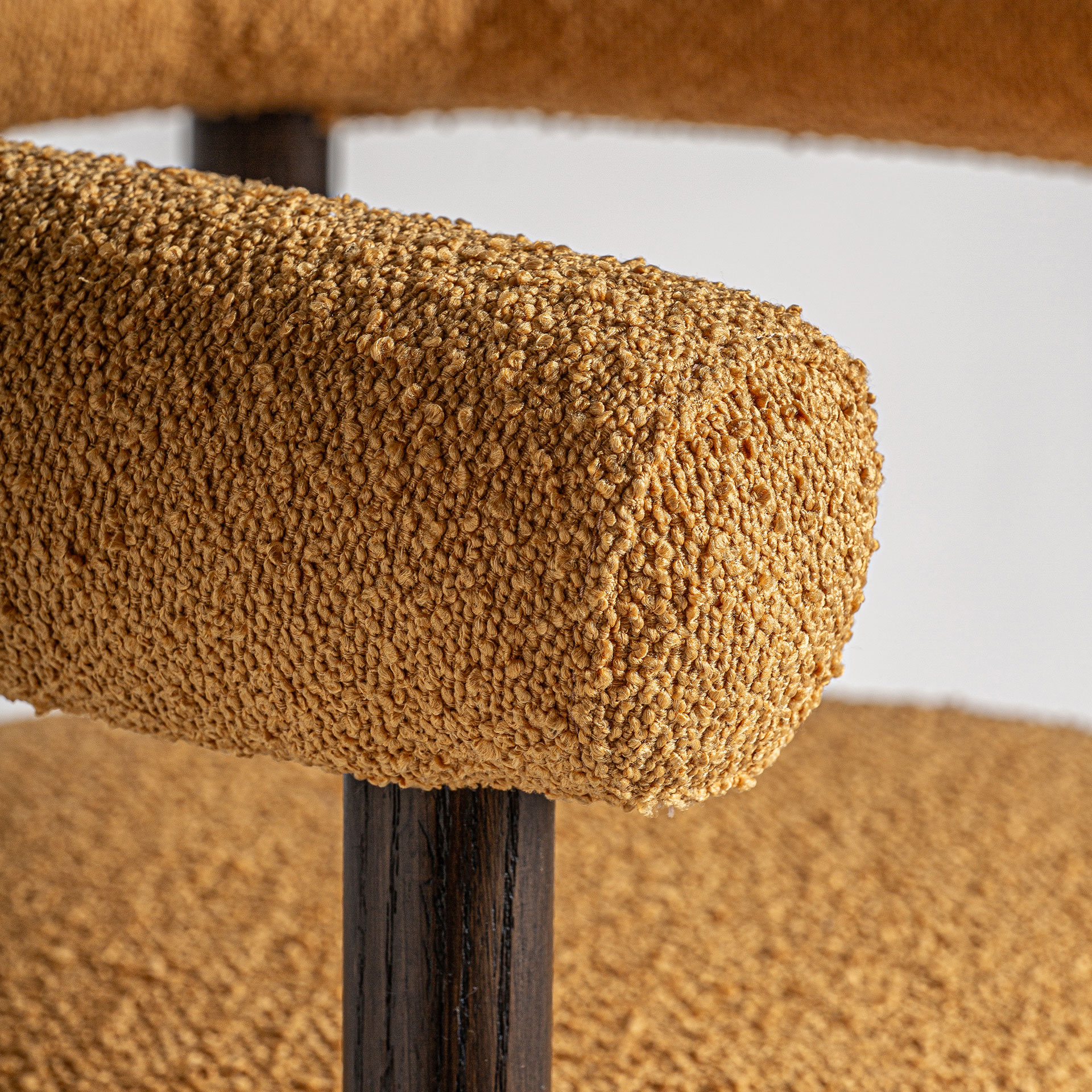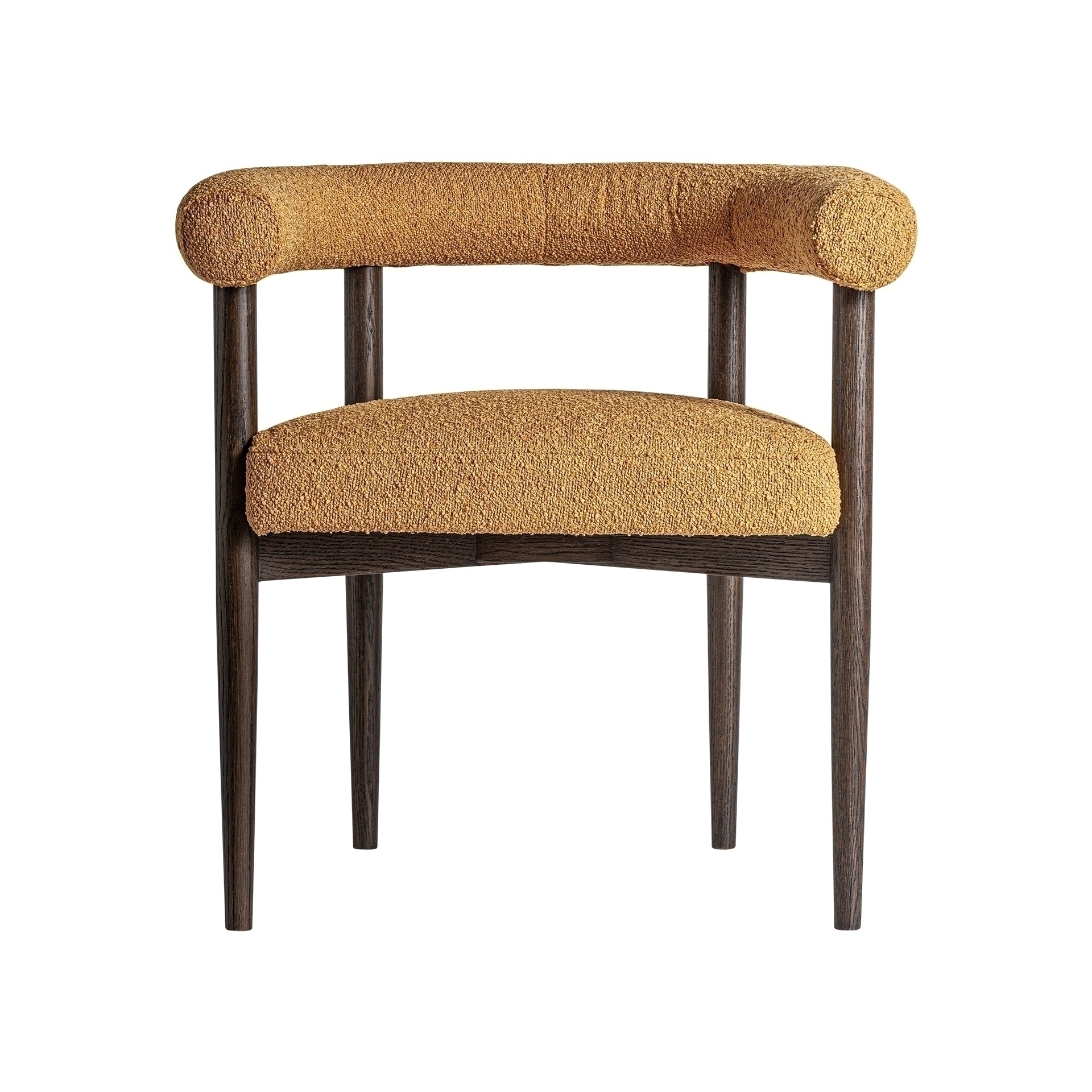 Стул Neuffen в стиле ар-деко, изготовленный из полиэстера горчичного цвета в сочетании с древесиной ясеня.