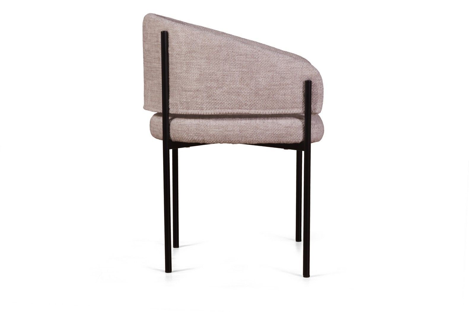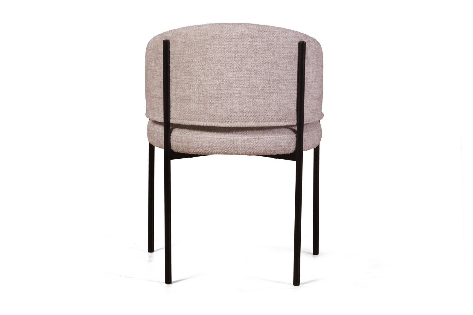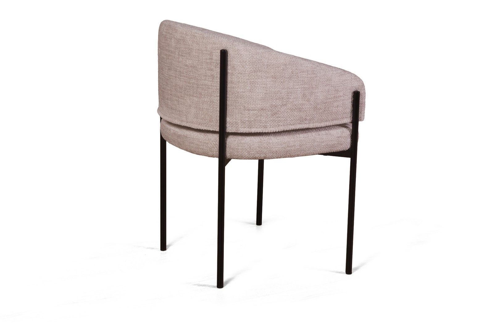 Элегантный мягкий обеденный стул с полукруглой спинкой и открытой линией поясницы. Тонкие металлические ножки визуально облегчают силуэт, при этом сохраняют устойчивость. Модель создана для современных интерьеров — от кухни и гостиной до ресторанов и lounge-пространств. Комфорт кресла и компактность стула в одном изделии.