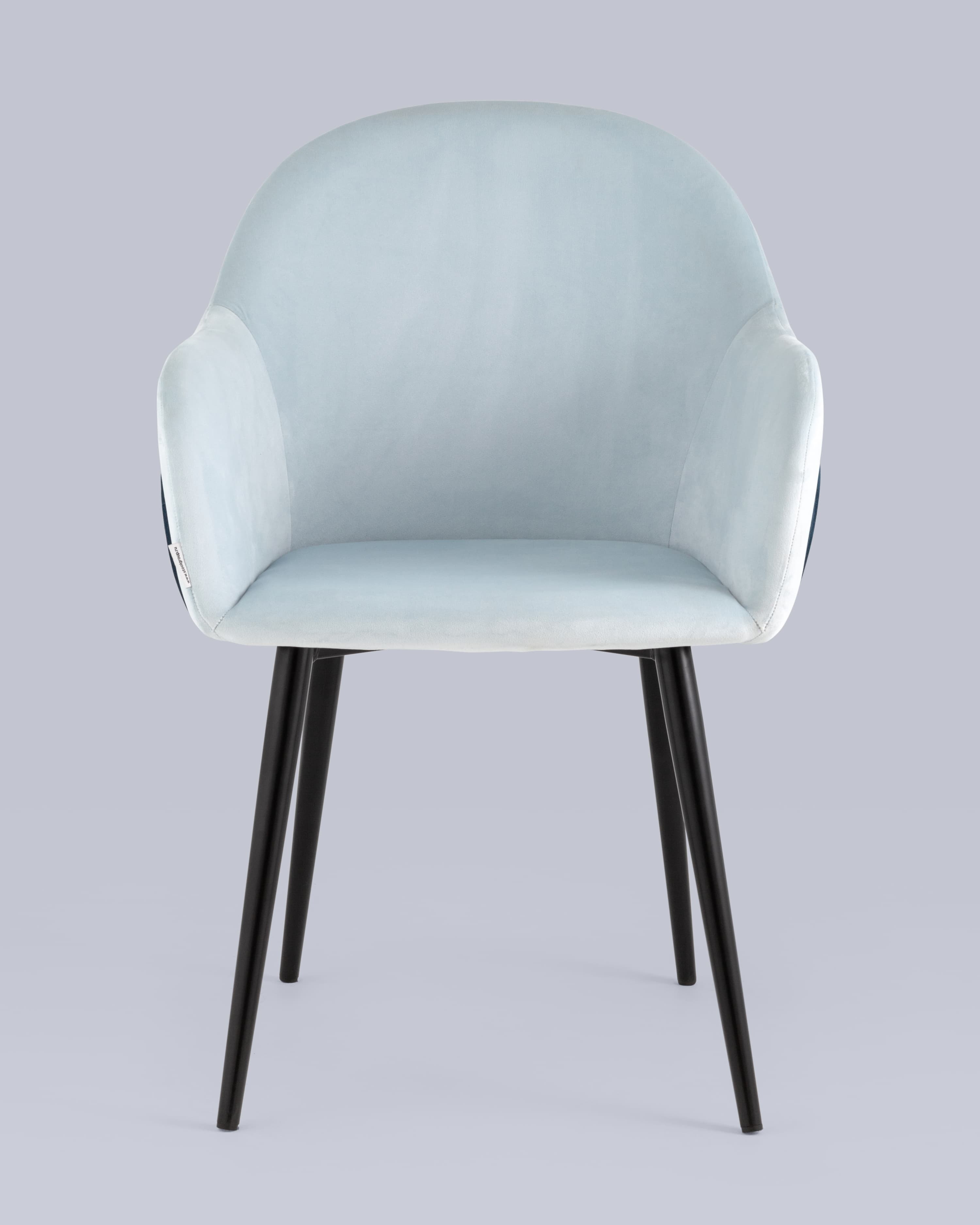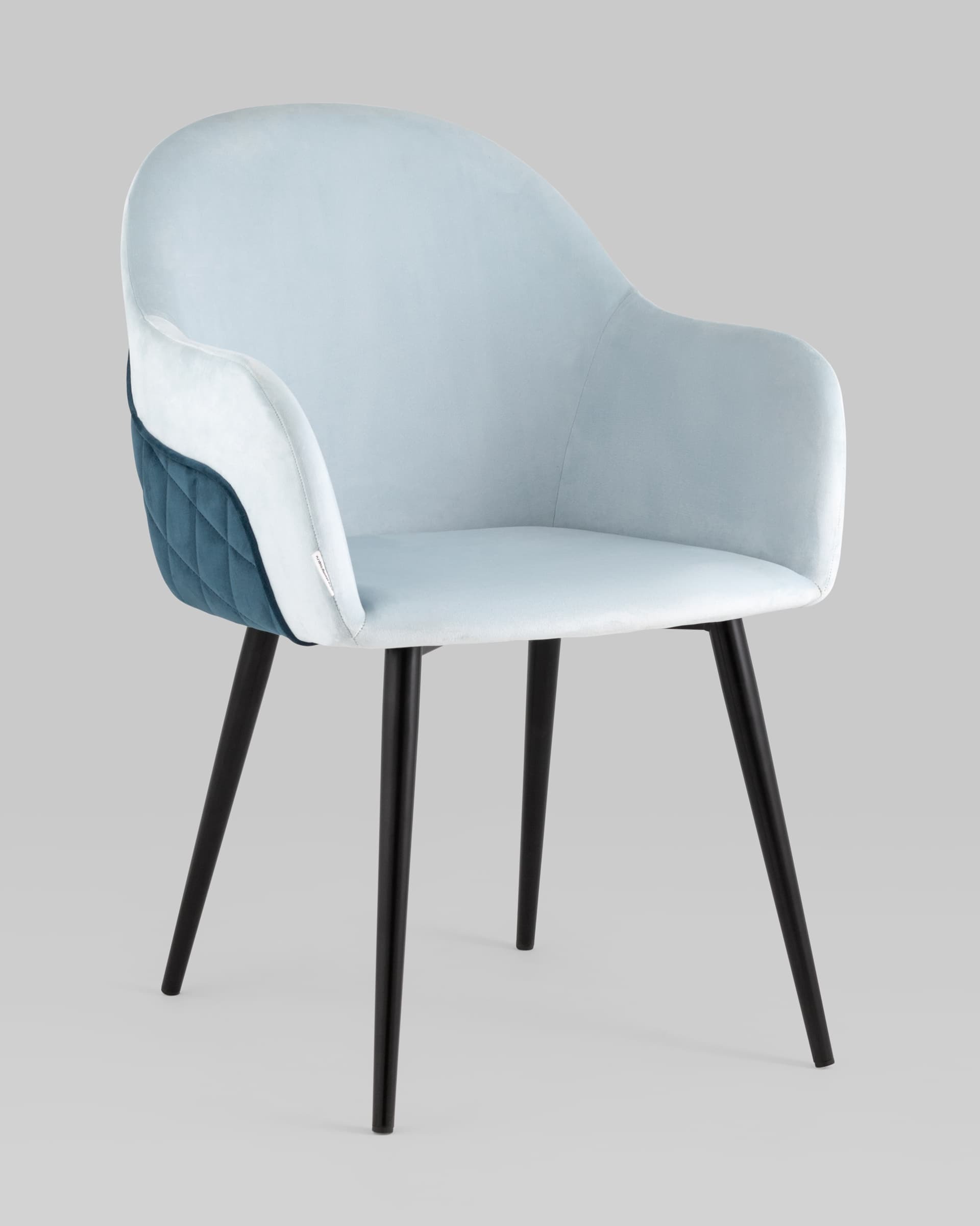 Стул Новел с подлокотниками велюр светло-голубой с синей спинкой ножки черные металл