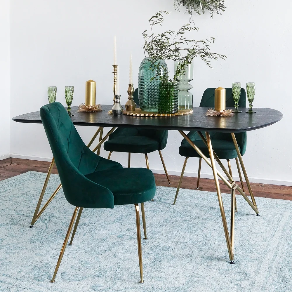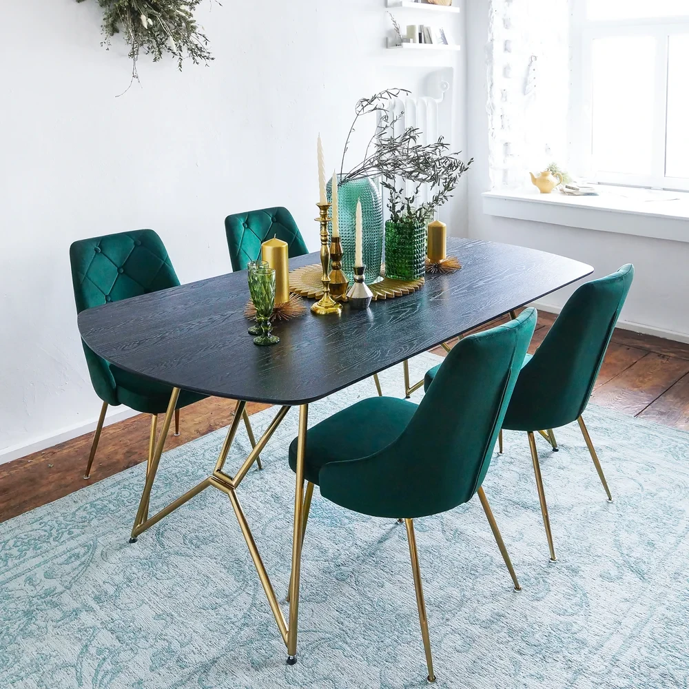 Мягкий велюровый стул Batista с высокой спинкой и декоративными строчками создает ощущение важного статуса в обществе. Есть в нем что-то аристократичное. Ведь бархатистая ткань — ткань королей. И только представьте, как после тяжелого, напряженного дня вы садитесь, чтобы только немного передохнуть, перевести дух. Округлая мягкая спинка будто укутывает своим теплом, обнимает вас, дарит умиротворение и разгружает спину. А сидеть за ужином на таком стуле сравнимо лишь с посещением дорогого ресторана. Тонкие металлические золотистого цвета ножки прекрасно дополняют образ комфортной, почти королевской мебели. Наличие войлочных подпятников, предохраняющих от царапания пола.