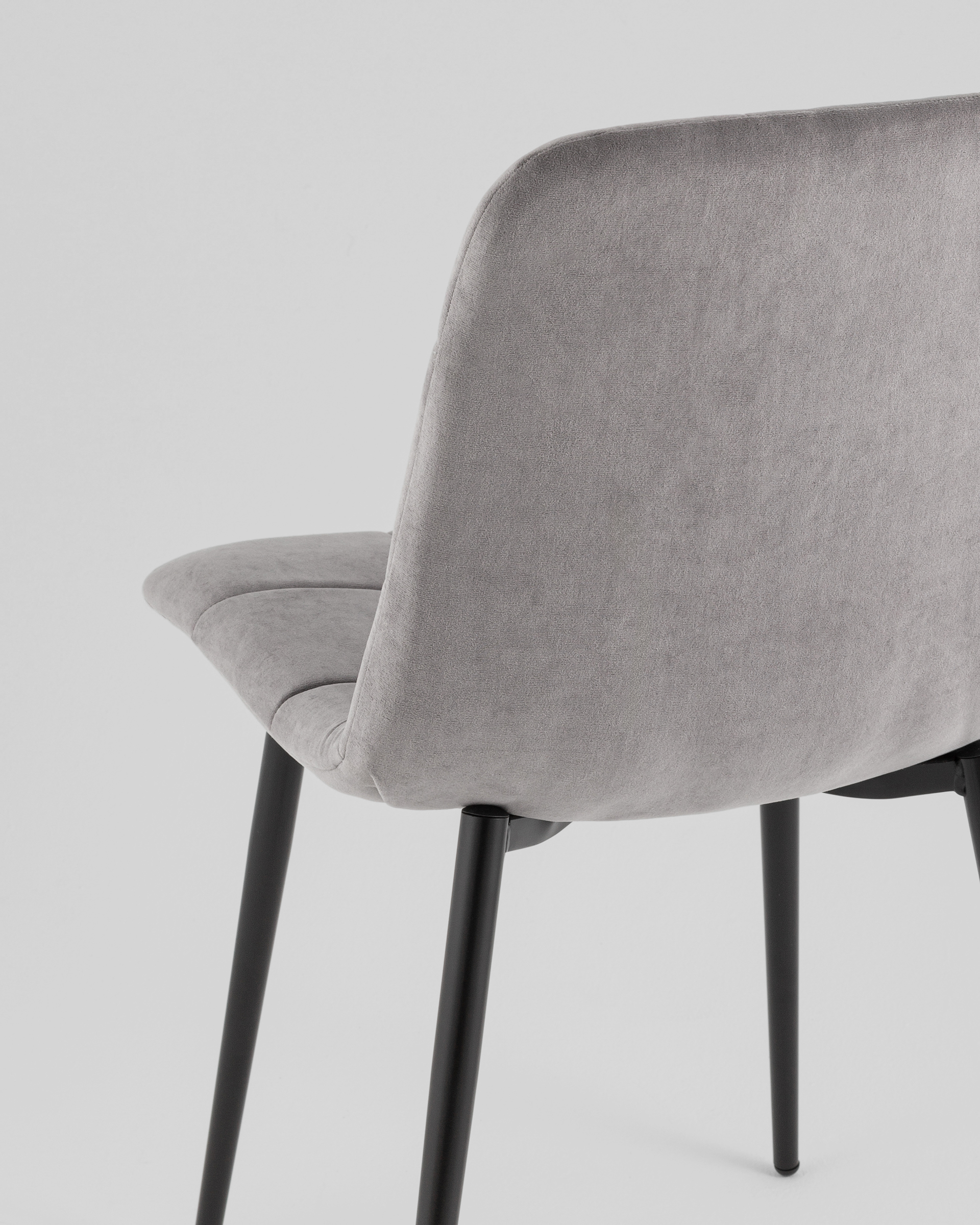 Тонкие, но прочные ножки из черного металла создают устойчивую основу и подчёркивают современный силуэт изделия. Благодаря прочному каркасу и качественным материалам, стул выдерживает повседневное использование, оставаясь надежным и эстетичным элементом интерьера.
