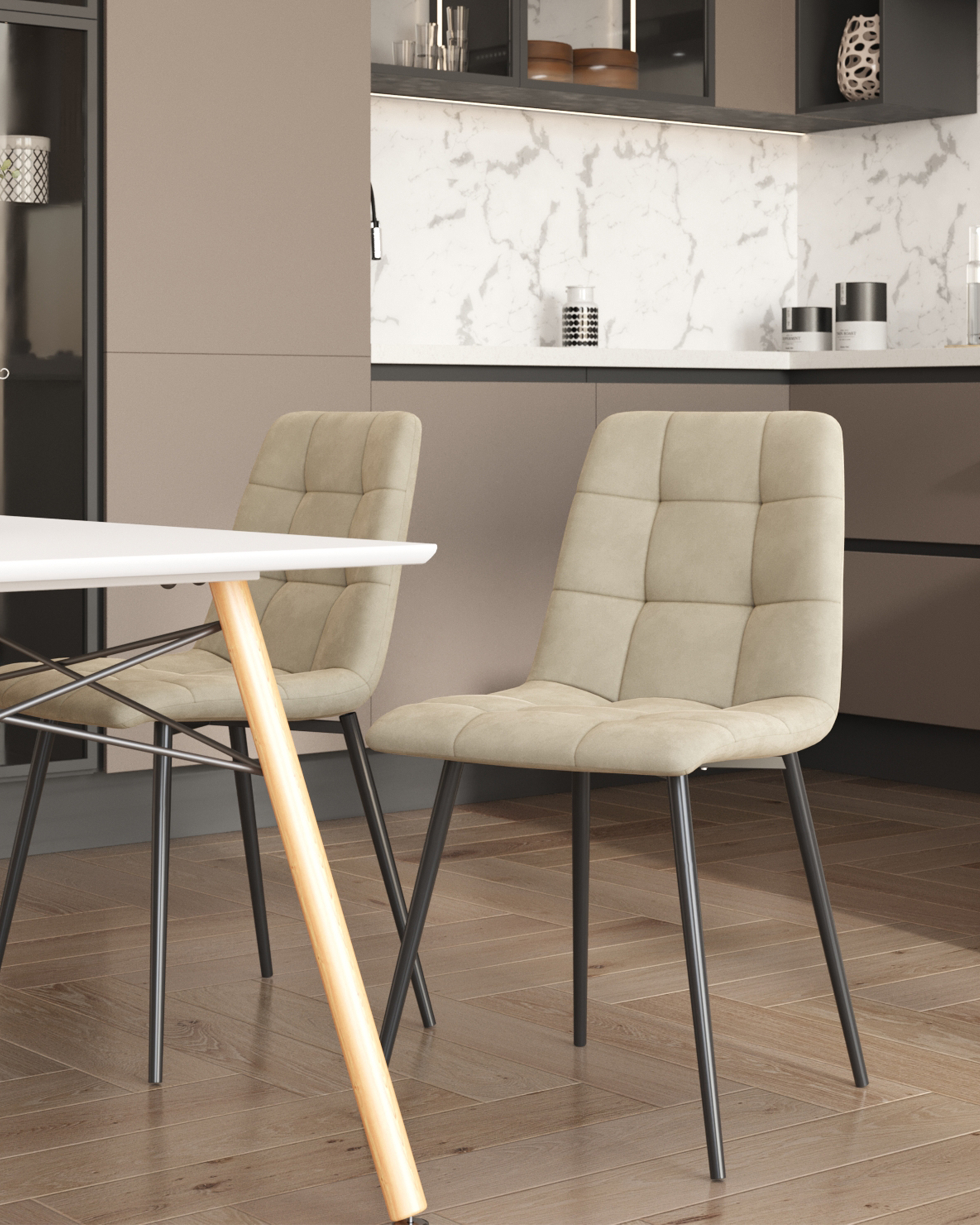 Стул Одди велюр бежевый ножки из металла в черном цвете