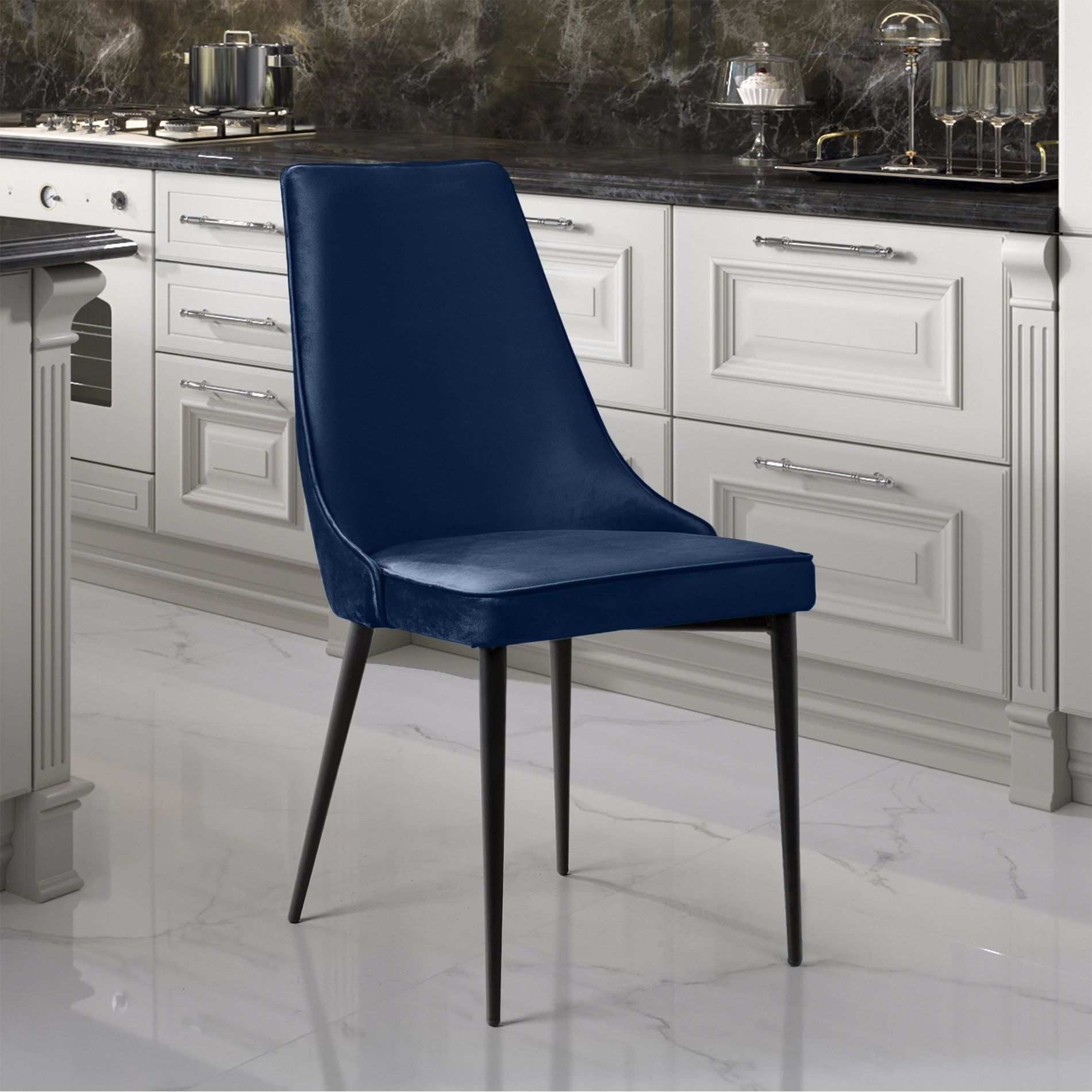 Стул Oliver пожалуй самая элегантная, лаконичная модель. Сочетание плавных линий и бархатистой обивки очерчено кантом в тон. Если вы еще сомневаетесь в изысканности и роскошности синей мебели , то внимательно посмотрите на фото кобальтового Oliver в интерьере и пересмотрите свой взгляд на вещи. При умеренном вкусе и умении дополнить дизайн комнаты яркими акцентами или разбавляющими элементами оформление квартиры с помощью лавандовых, аметистовых, кобальтовых или любых других тонов небесной палитры станет идеальным решением.