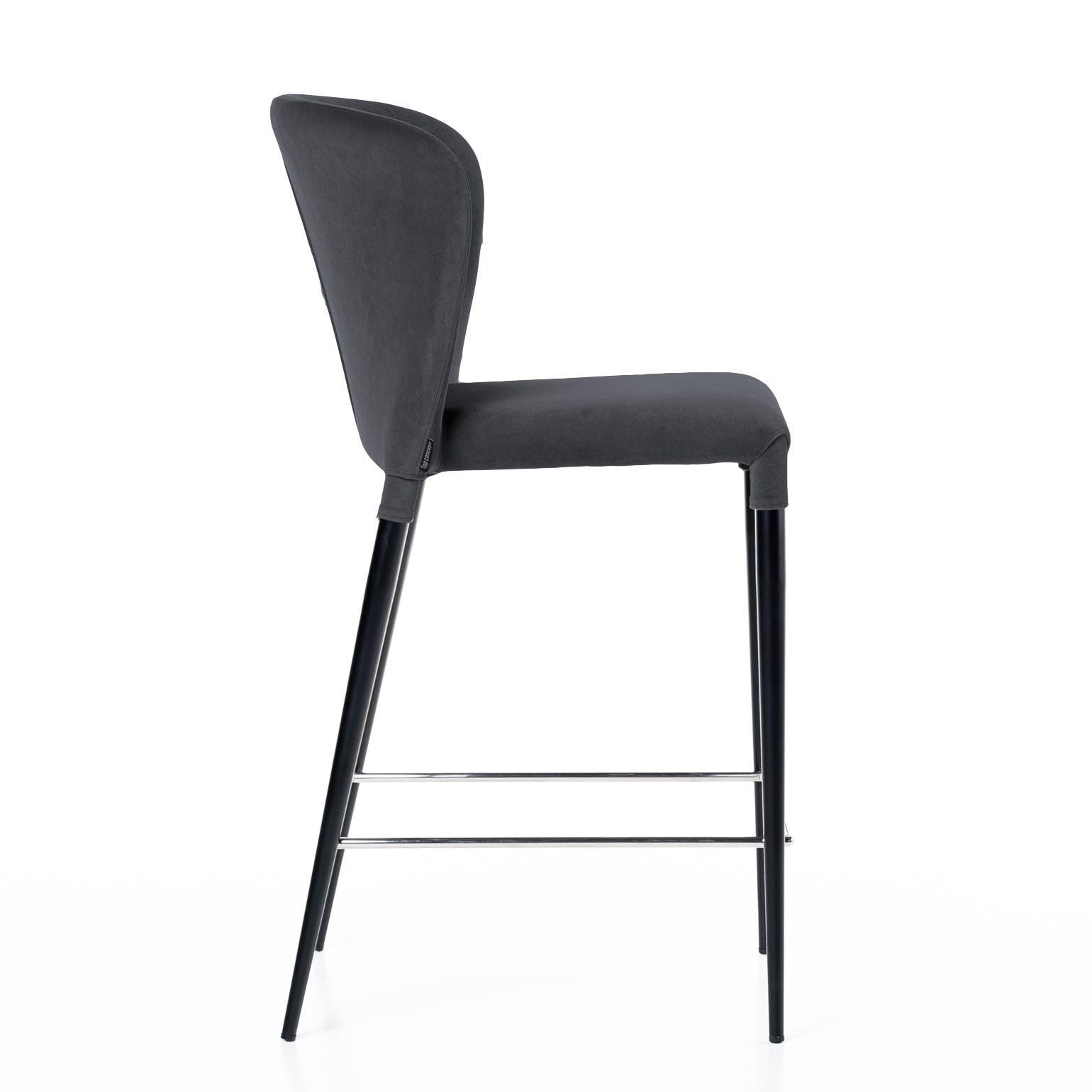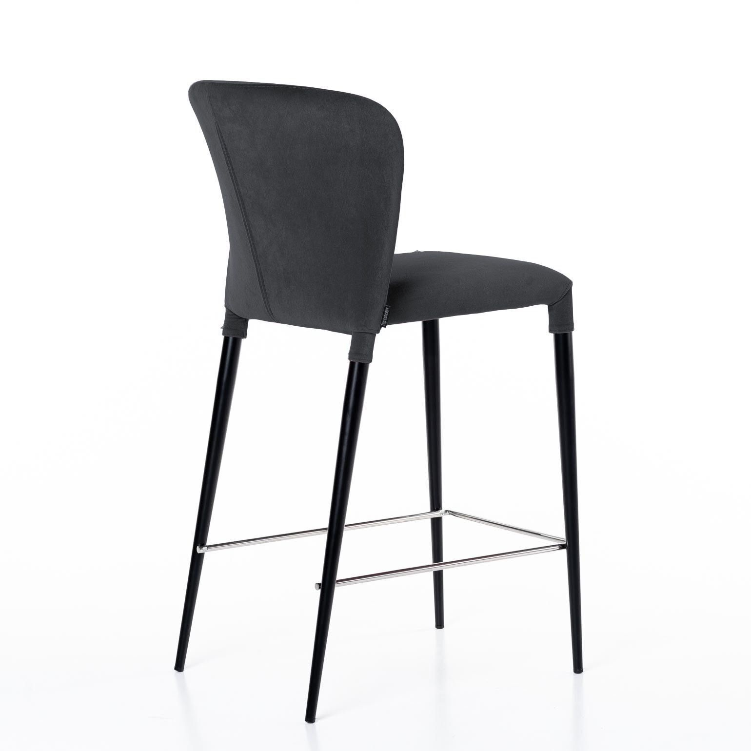 Изюминка полубарного стула Albert – невероятно тонкие металлические ножки черного матового цвета, излишне скошенные назад, как часть дизайнерской задумки. На ножках предусмотрены специальные пластиковые накладки, которые придают стулу дополнительную устойчивость и защищают пол от царапин.