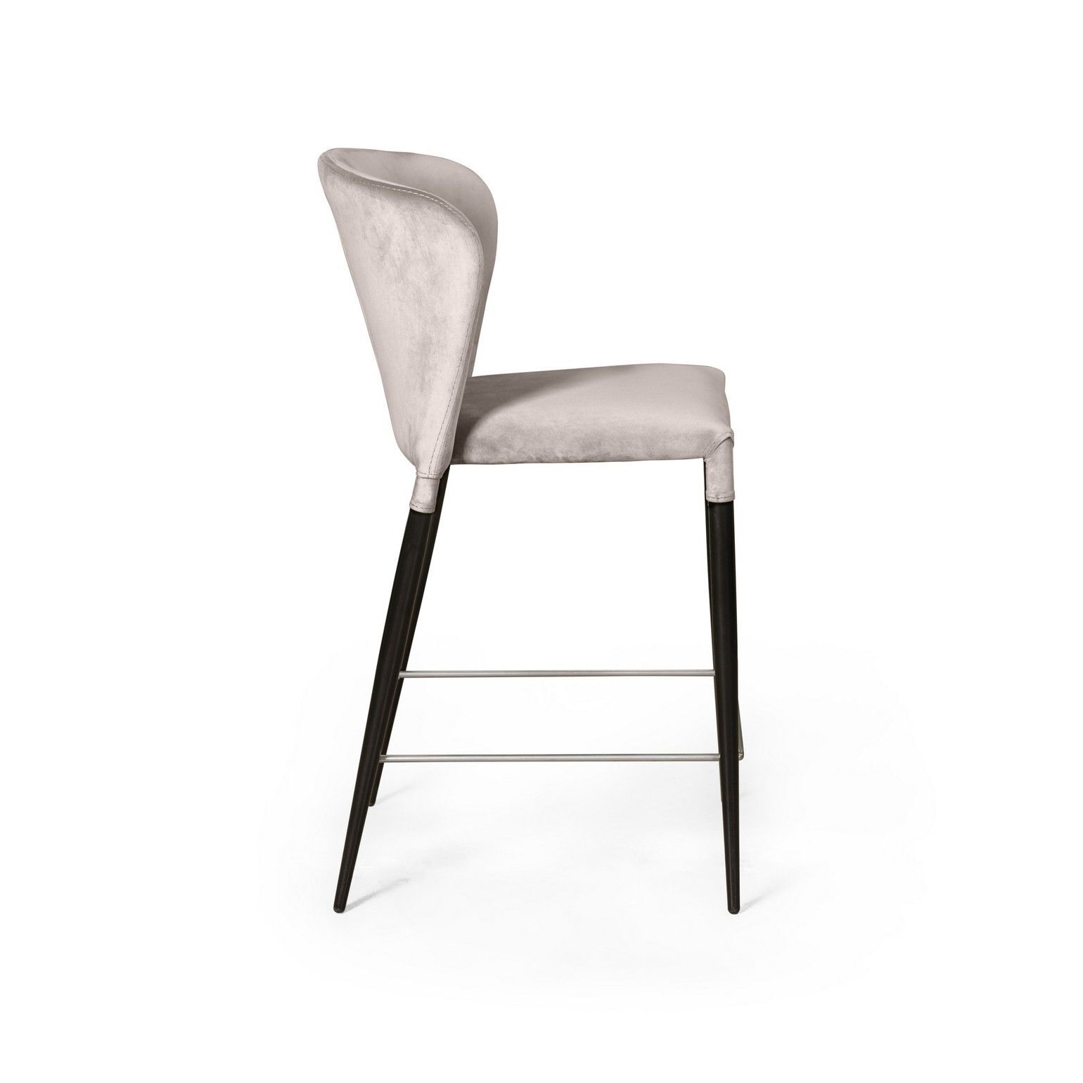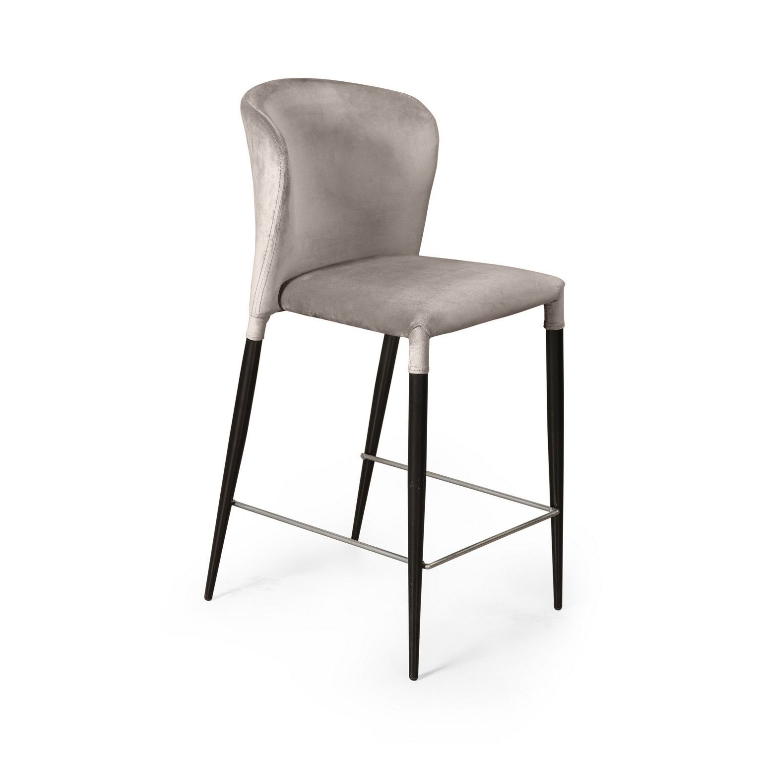 Изюминка полубарного стула Albert – невероятно тонкие металлические ножки черного матового цвета, излишне скошенные назад, как часть дизайнерской задумки. На ножках предусмотрены специальные пластиковые накладки, которые придают стулу дополнительную устойчивость и защищают пол от царапин.