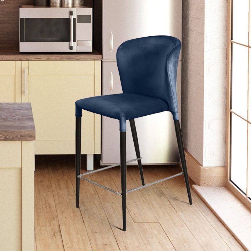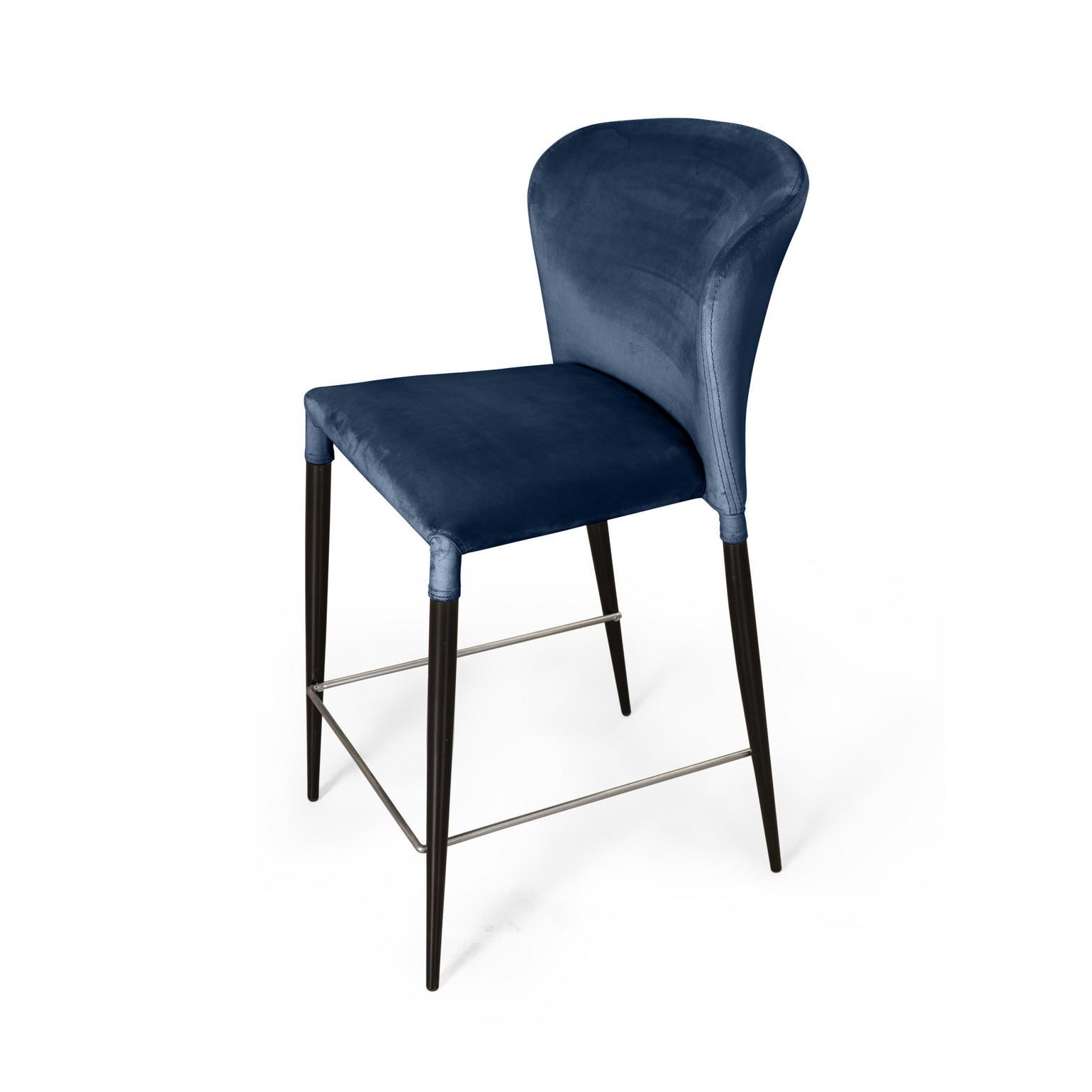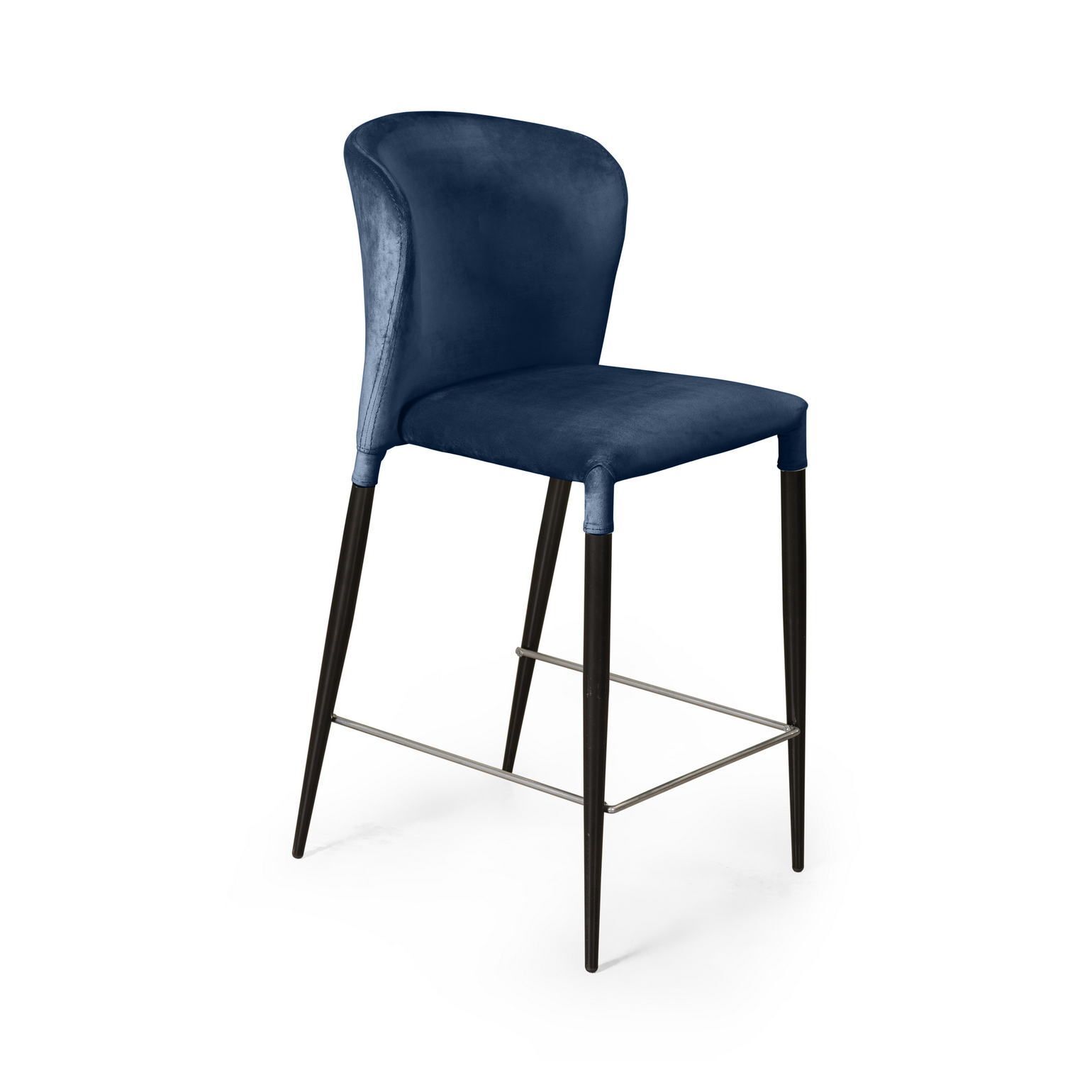 Изюминка полубарного стула Albert – невероятно тонкие металлические ножки черного матового цвета, излишне скошенные назад, как часть дизайнерской задумки. На ножках предусмотрены специальные пластиковые накладки, которые придают стулу дополнительную устойчивость и защищают пол от царапин.