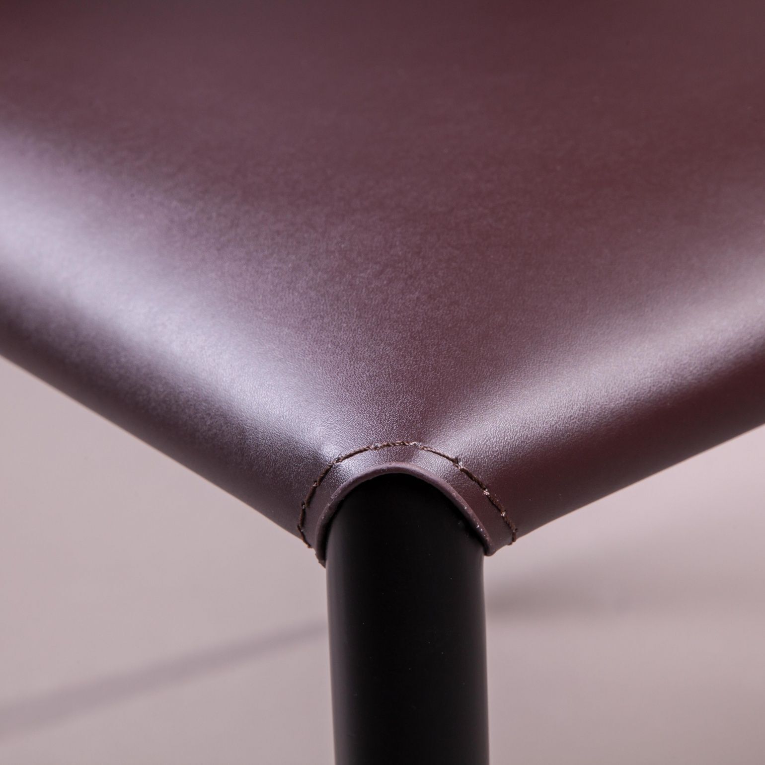 Обивка стула выполнена в регенерированной коже – обивочном материале, который сделан путём переплетения расщеплённых волокон натуральной кожи. В состав модифицированной кожи также входят полимеры и специальные дубильные добавки.