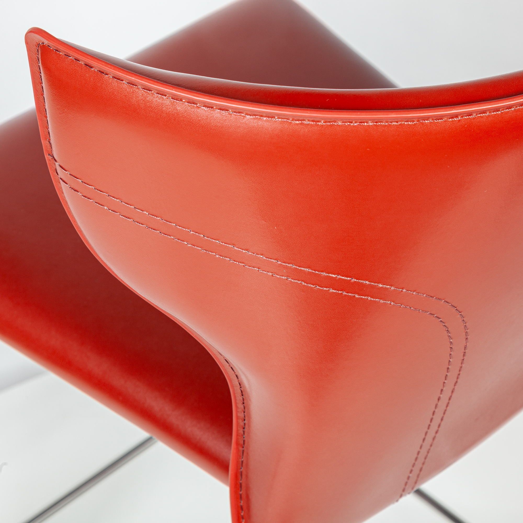 Изюминка стула Austin – невероятно тонкие металлические ножки, излишне скошенные назад, как часть дизайнерской задумки. Ножки обиты регенерированной кожей, на них предусмотрены специальные пластиковые накладки, которые придают стулу дополнительную устойчивость и защищают пол от царапин.