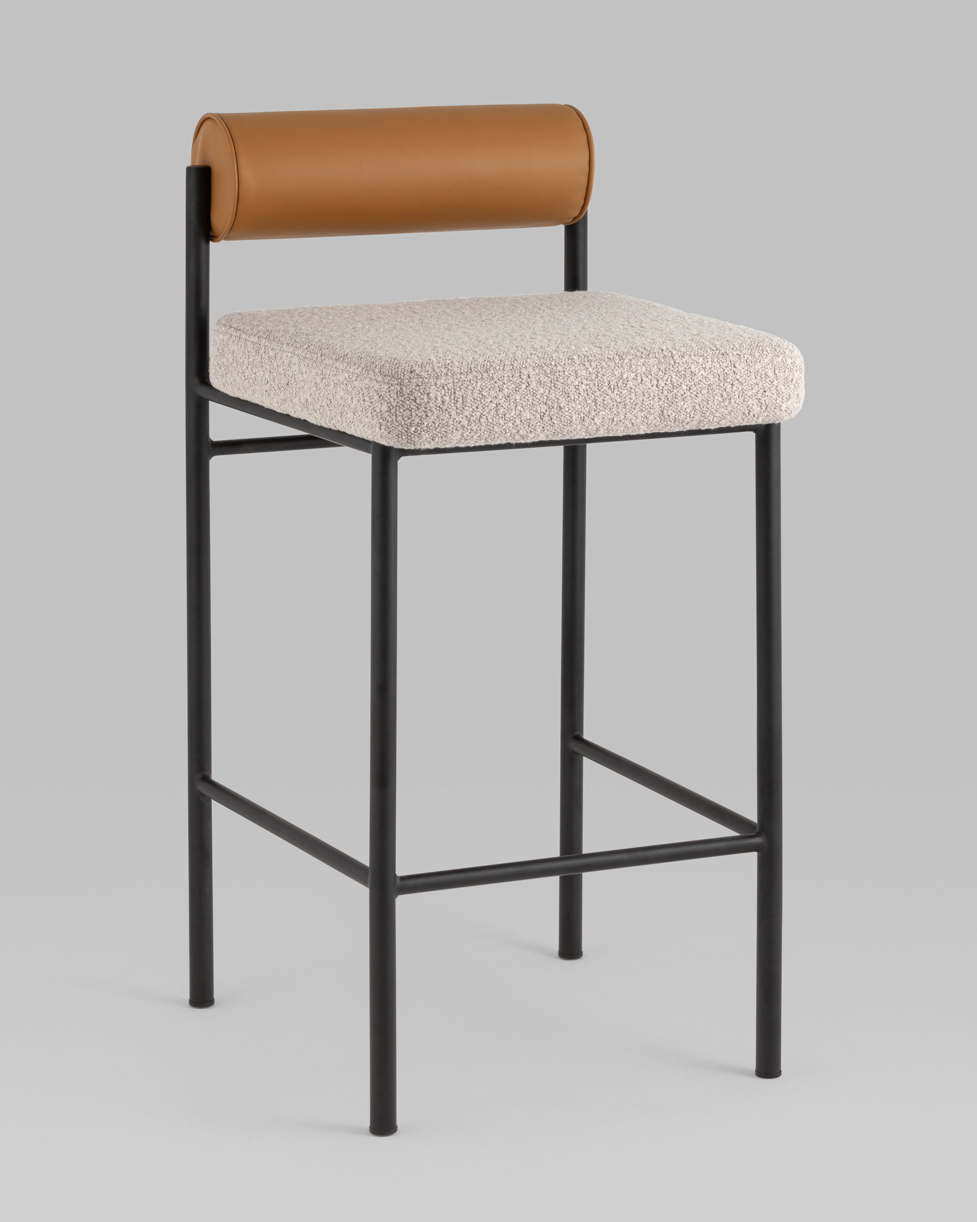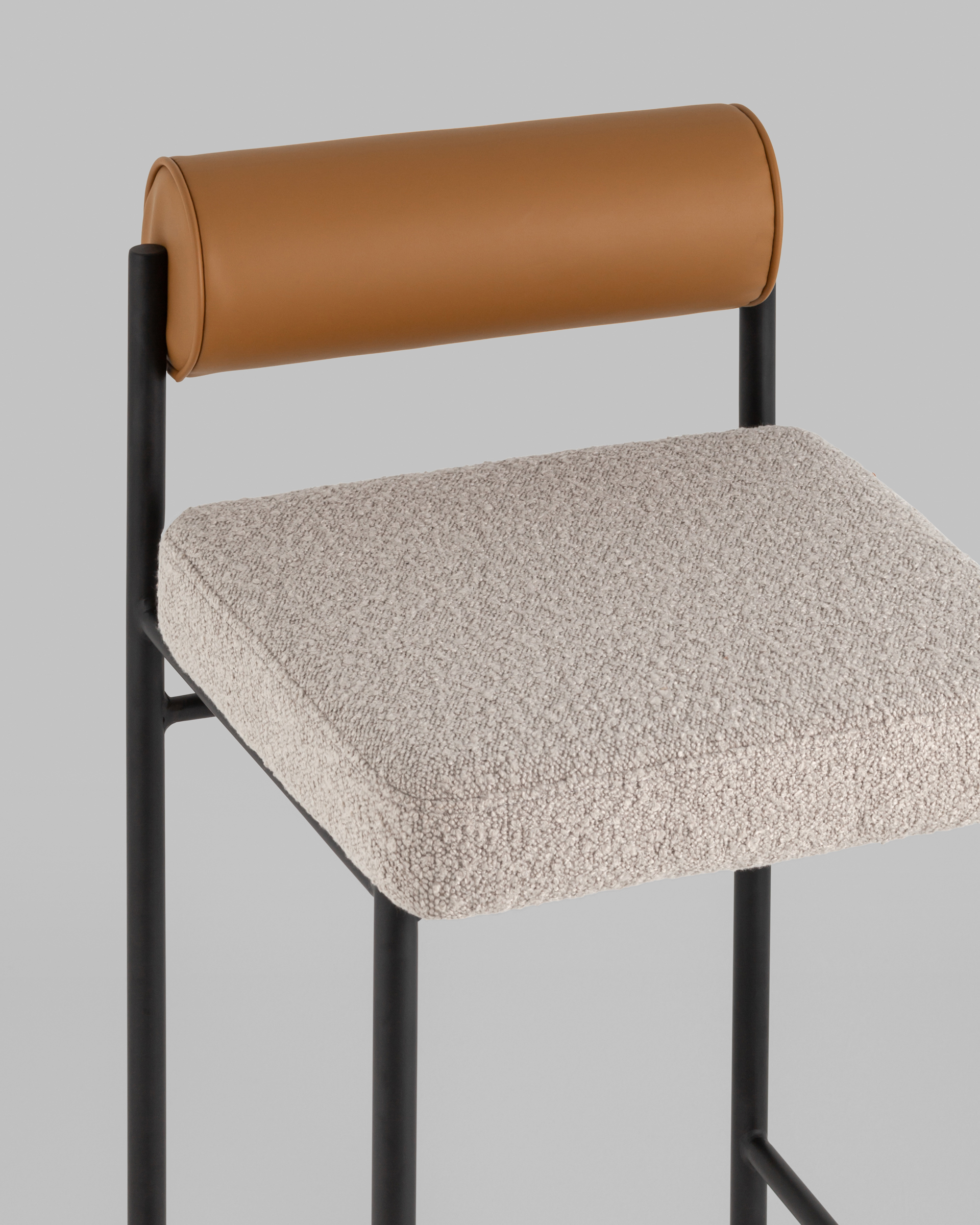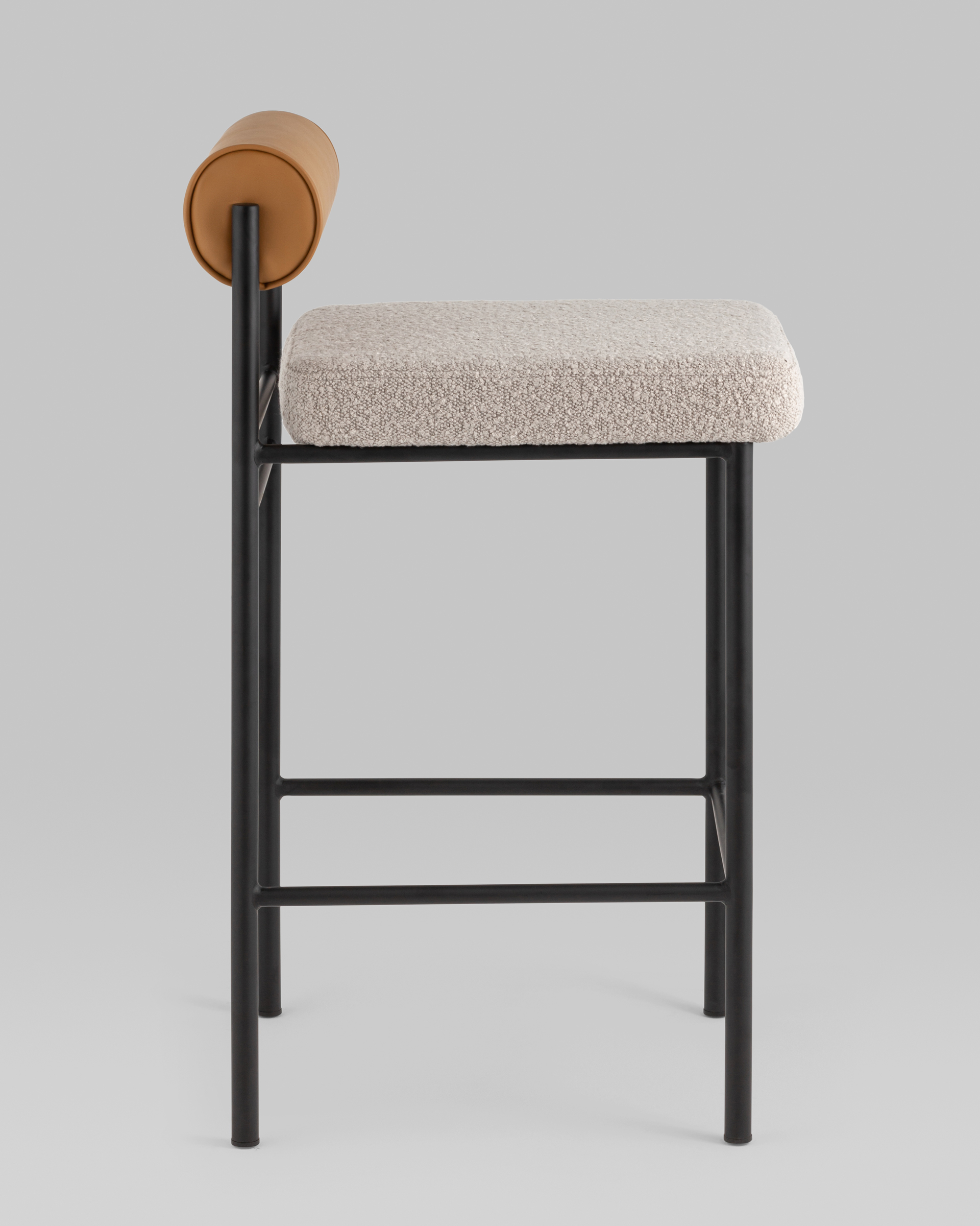 Стул полубарный Балла бежевый сиденье букле, со спинкой в форме валика экокожа, ножки черные металл