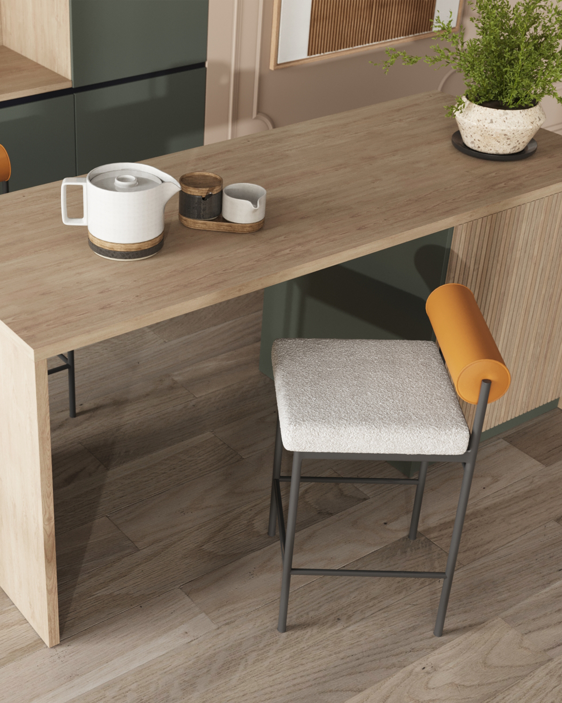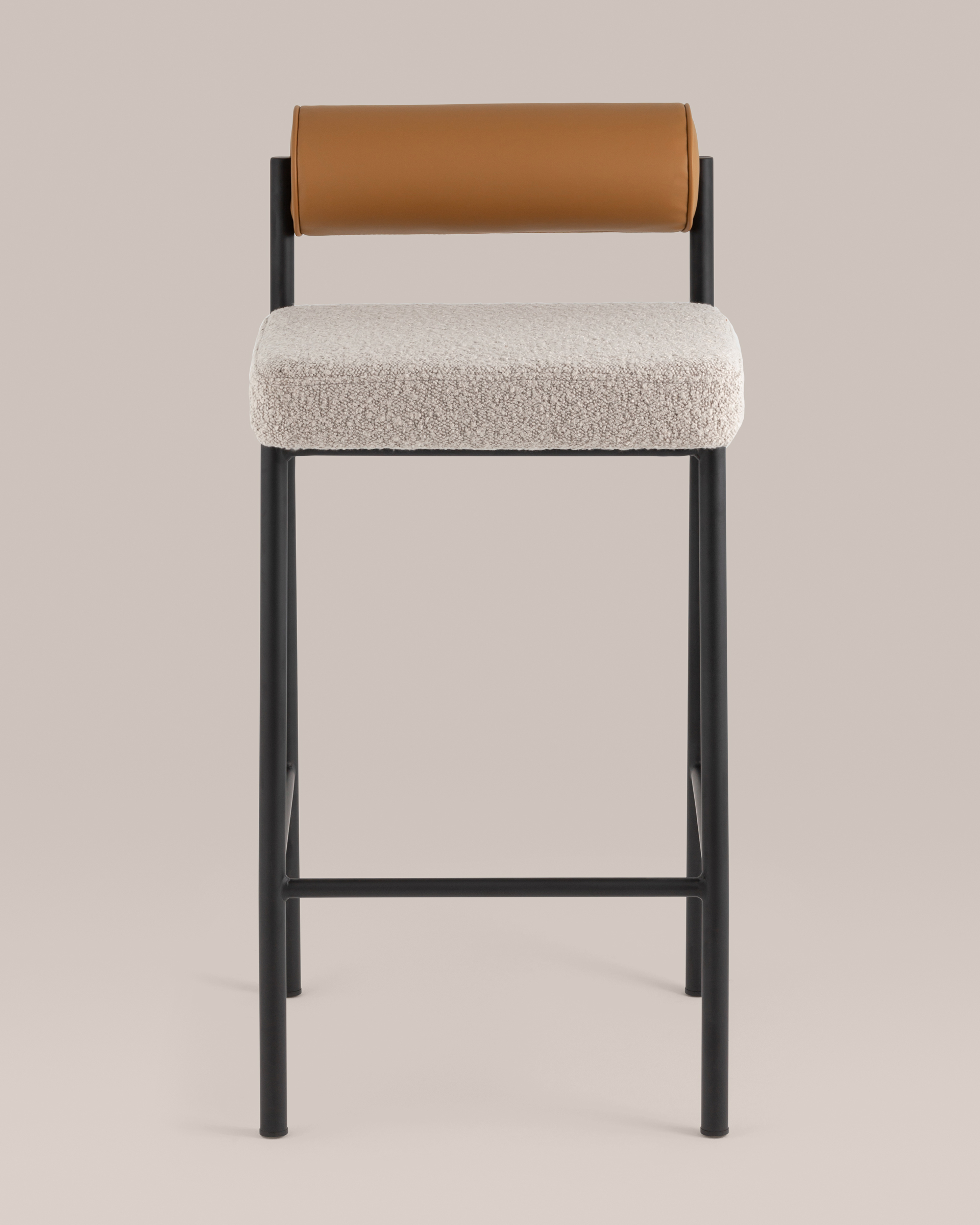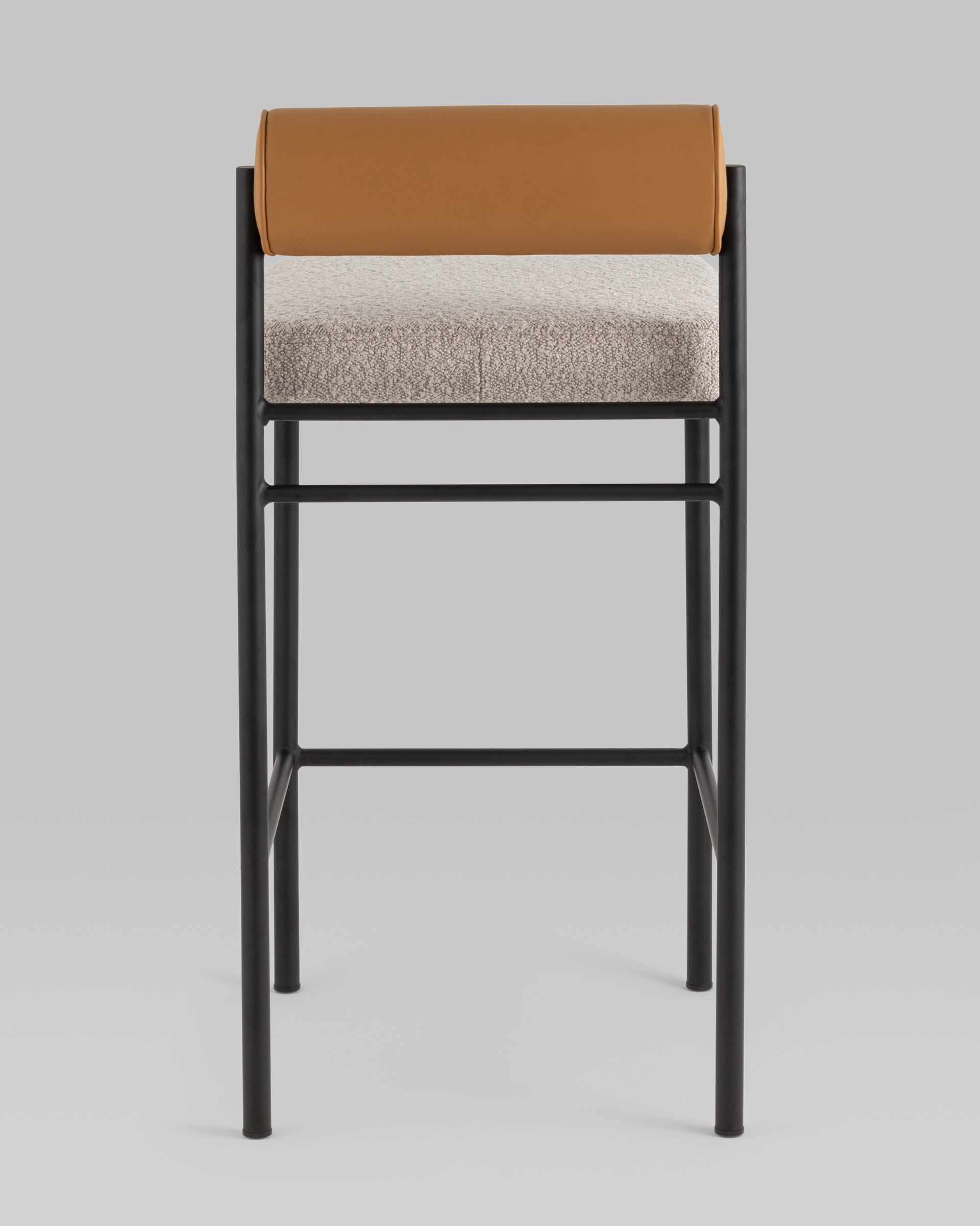 Стул полубарный Балла бежевый сиденье букле, со спинкой в форме валика экокожа, ножки черные металл