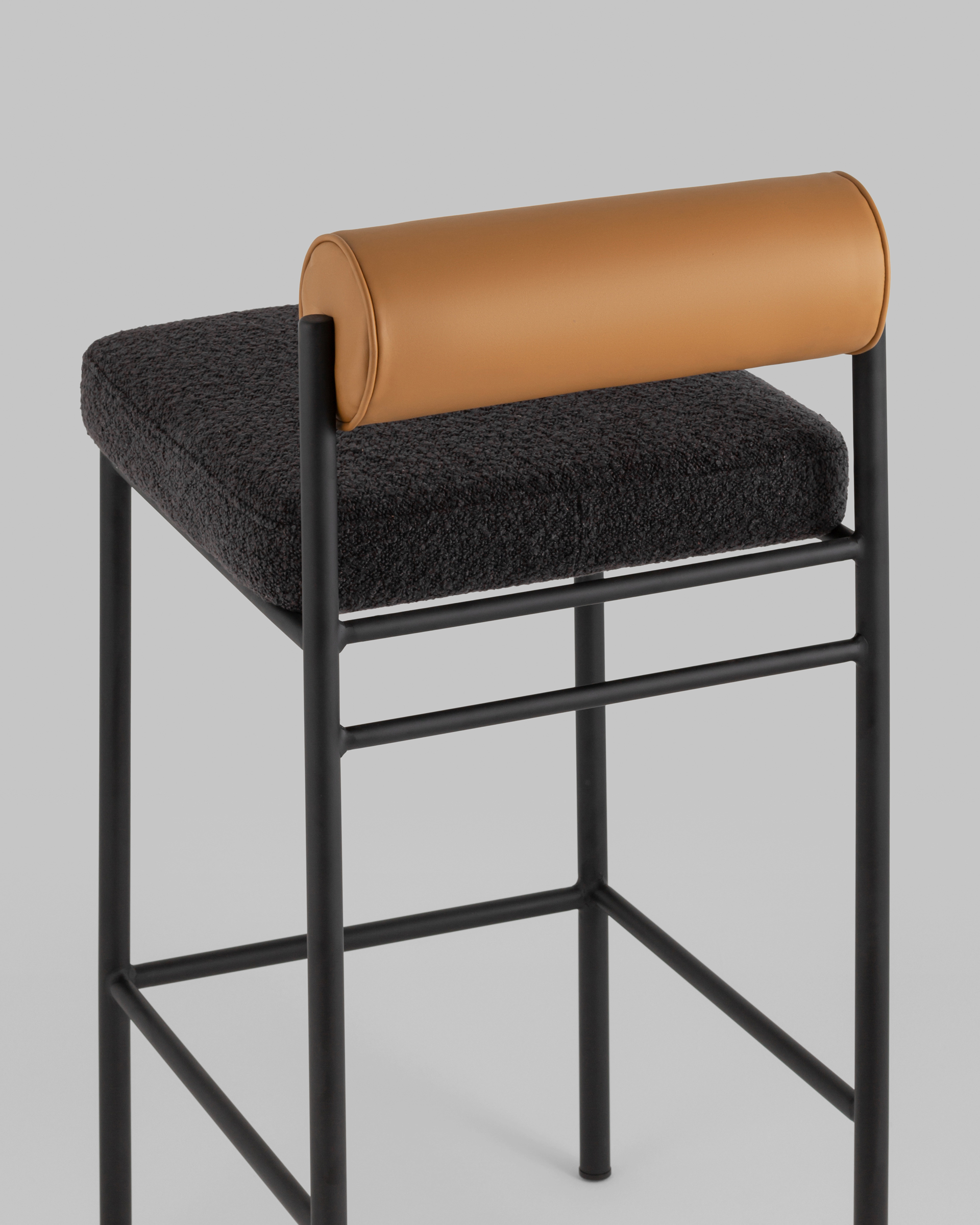 Стул полубарный Балла темно-серый сиденье букле, со спинкой в форме валика экокожа, ножки черные металл