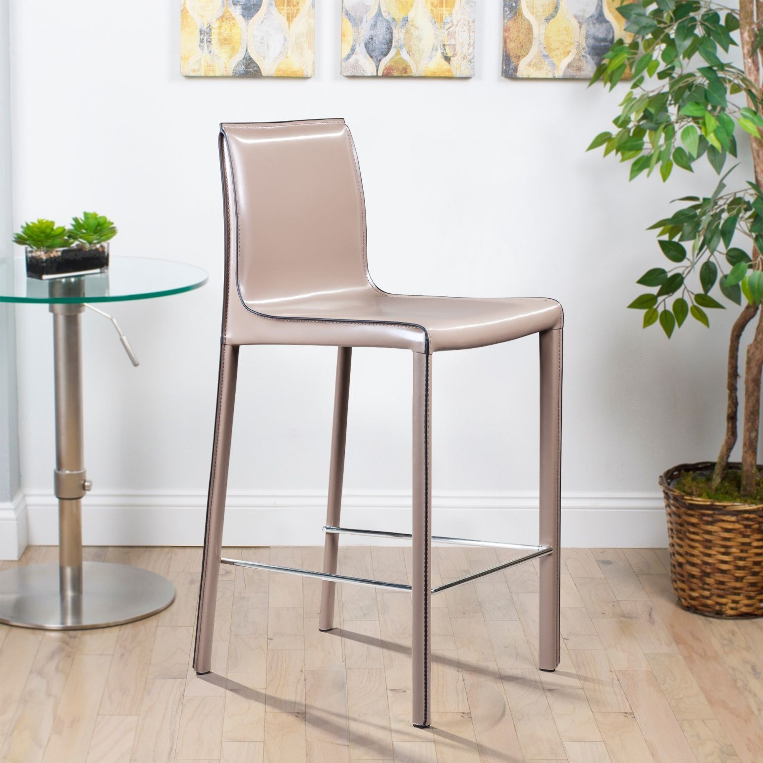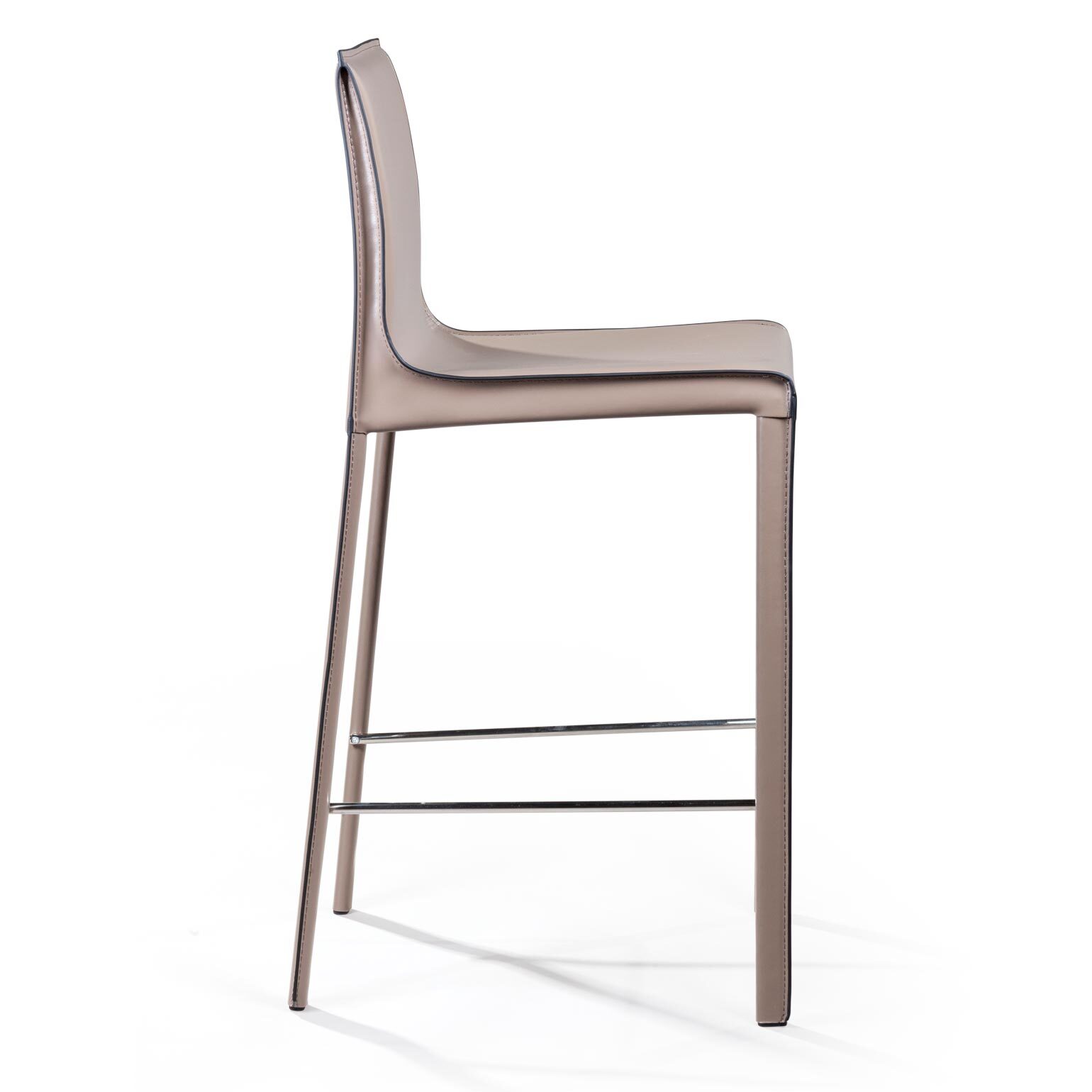 Крепкие металлические ножки скрыты под натуральной кожей такого же цвета, как и сам стул, благодаря этому создается лаконичный образ единого целого. На ножках предусмотрены хромированная подставка для ног и специальные пластиковые накладки, которые придают полубарному стулу дополнительную устойчивость и защищают полот царапин.