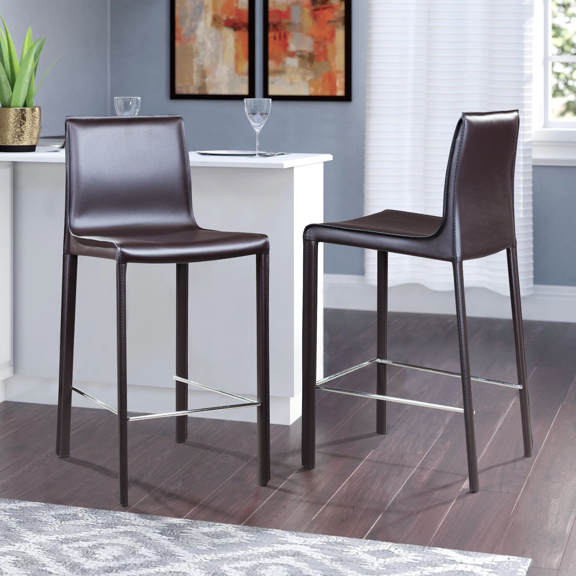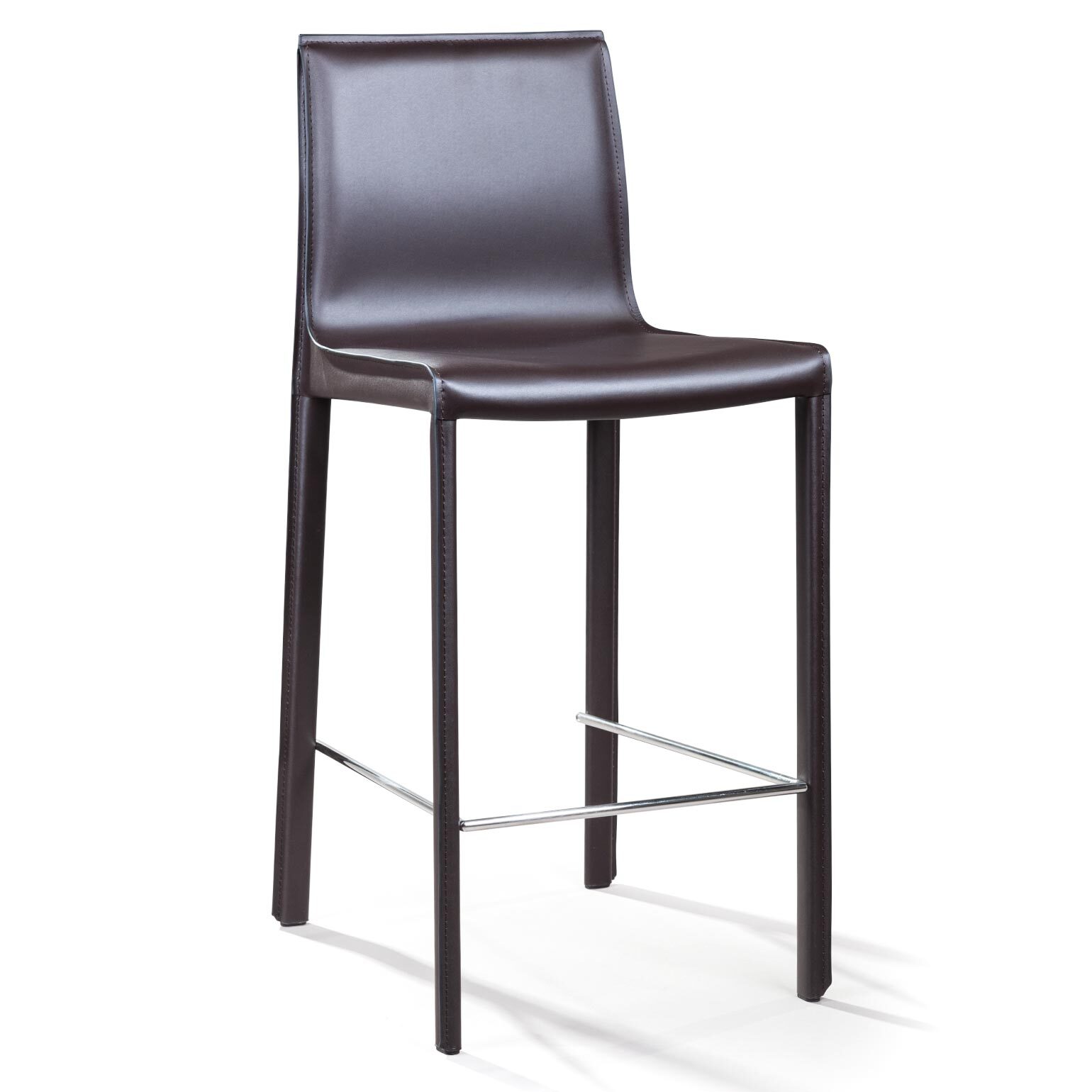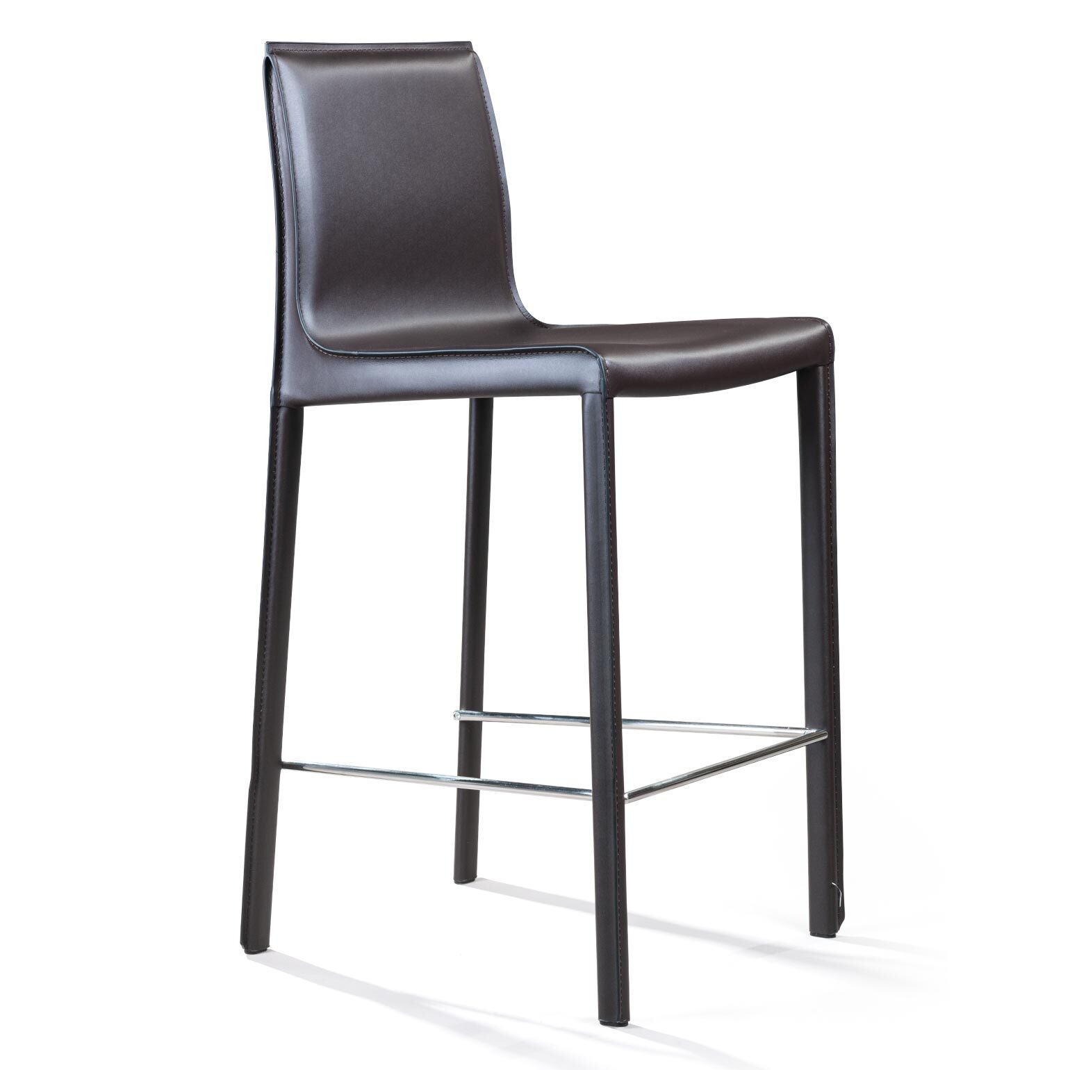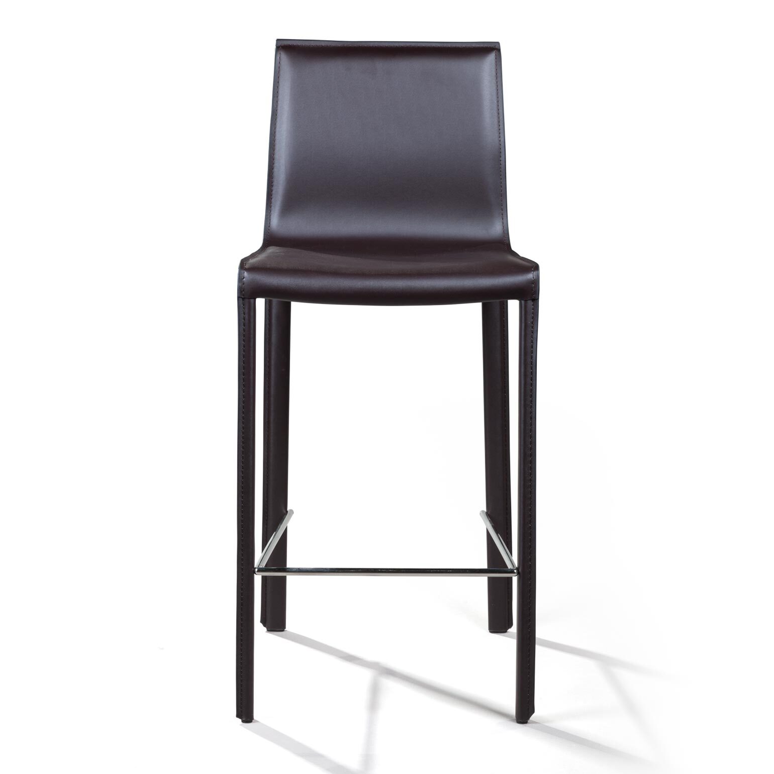 Крепкие металлические ножки скрыты под натуральной кожей такого же цвета, как и сам стул, благодаря этому создается лаконичный образ единого целого. На ножках предусмотрены хромированная подставка для ног и специальные пластиковые накладки, которые придают полубарному стулу дополнительную устойчивость и защищают полот царапин.