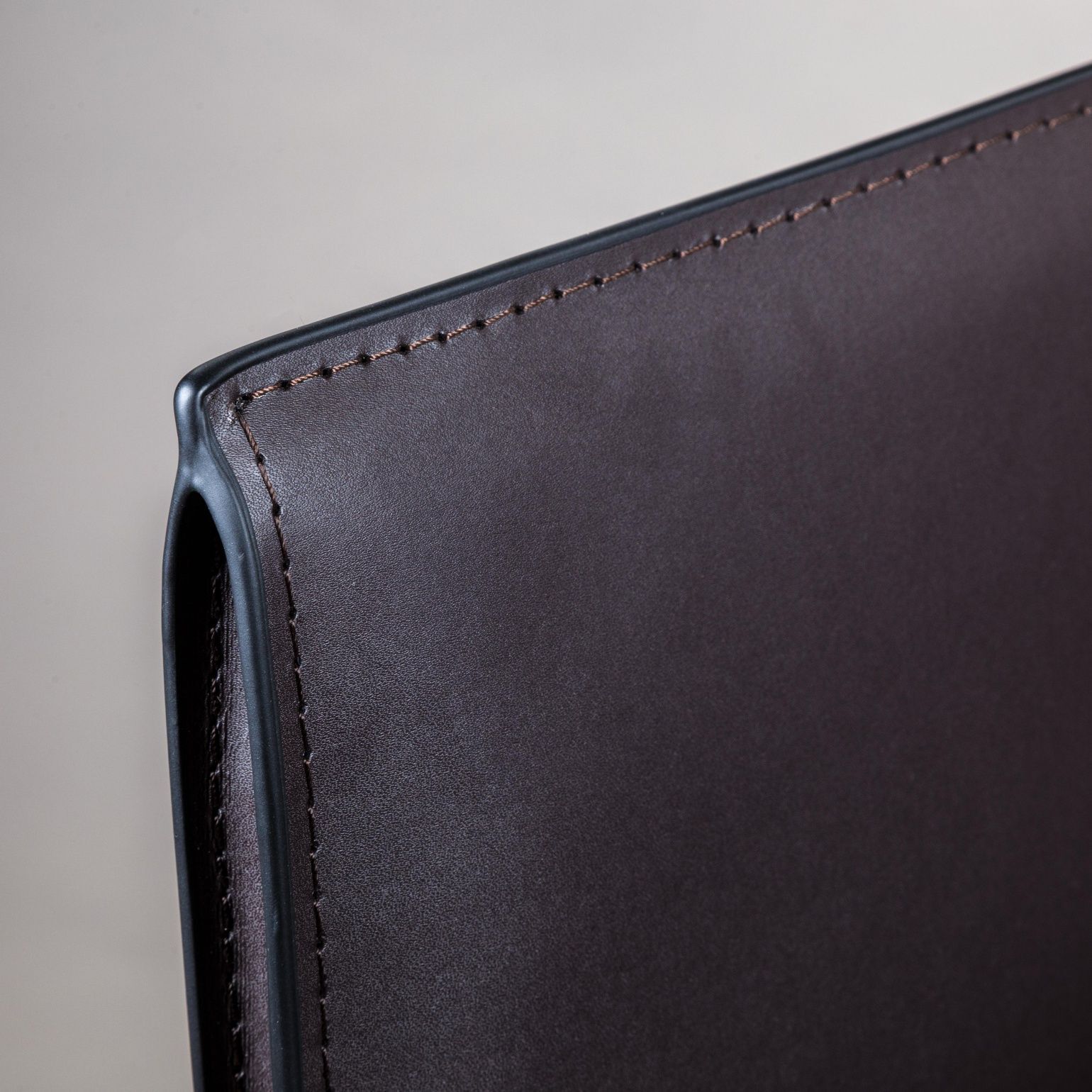 Обивка стула выполнена в регенерированной коже – обивочном материале, который сделан путём переплетения расщеплённых волокон натуральной кожи. В состав модифицированной кожи также входят полимеры и специальные дубильные добавки.