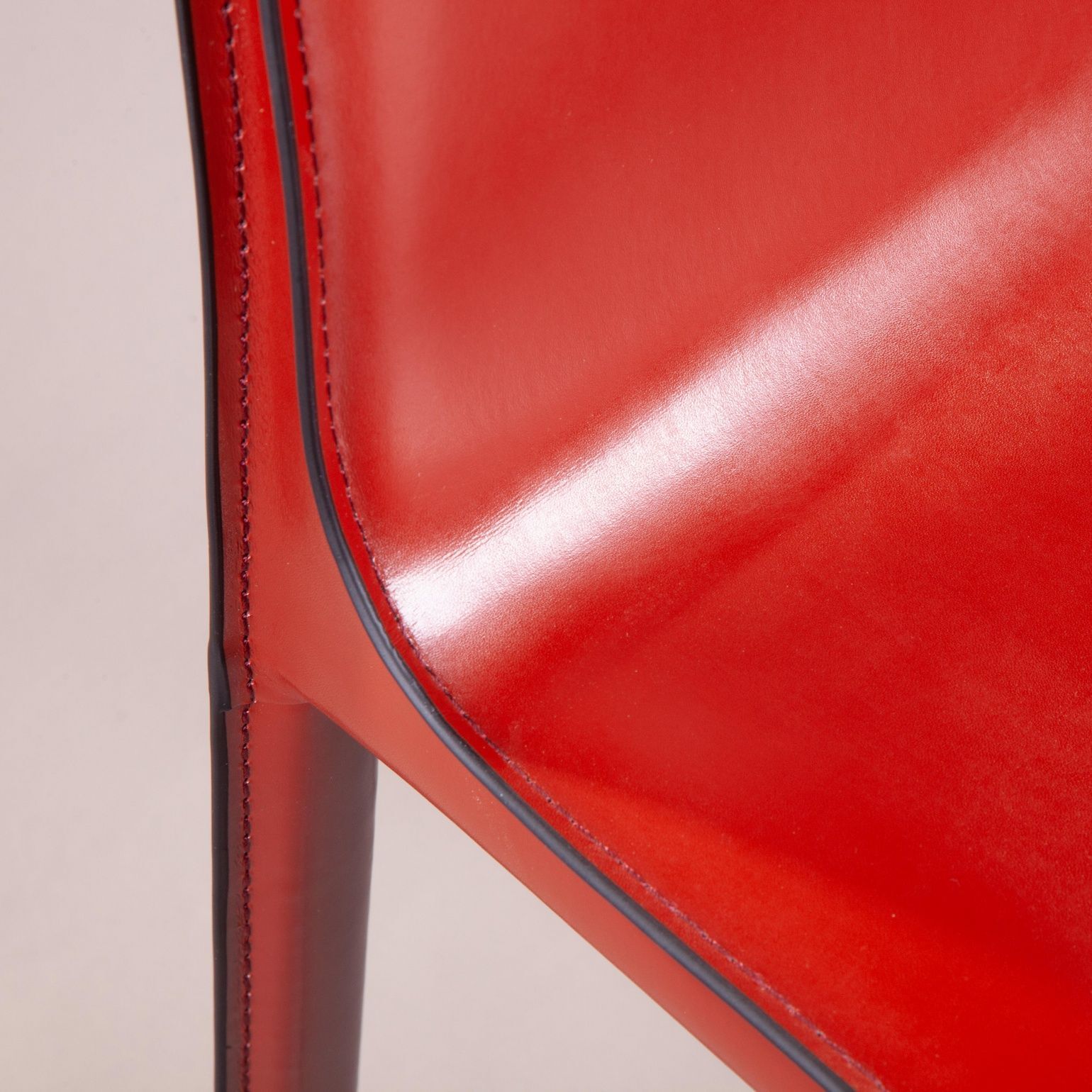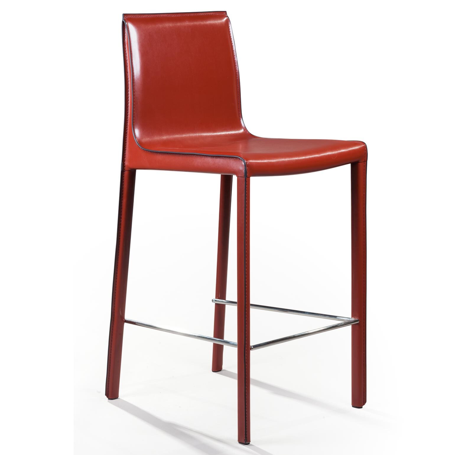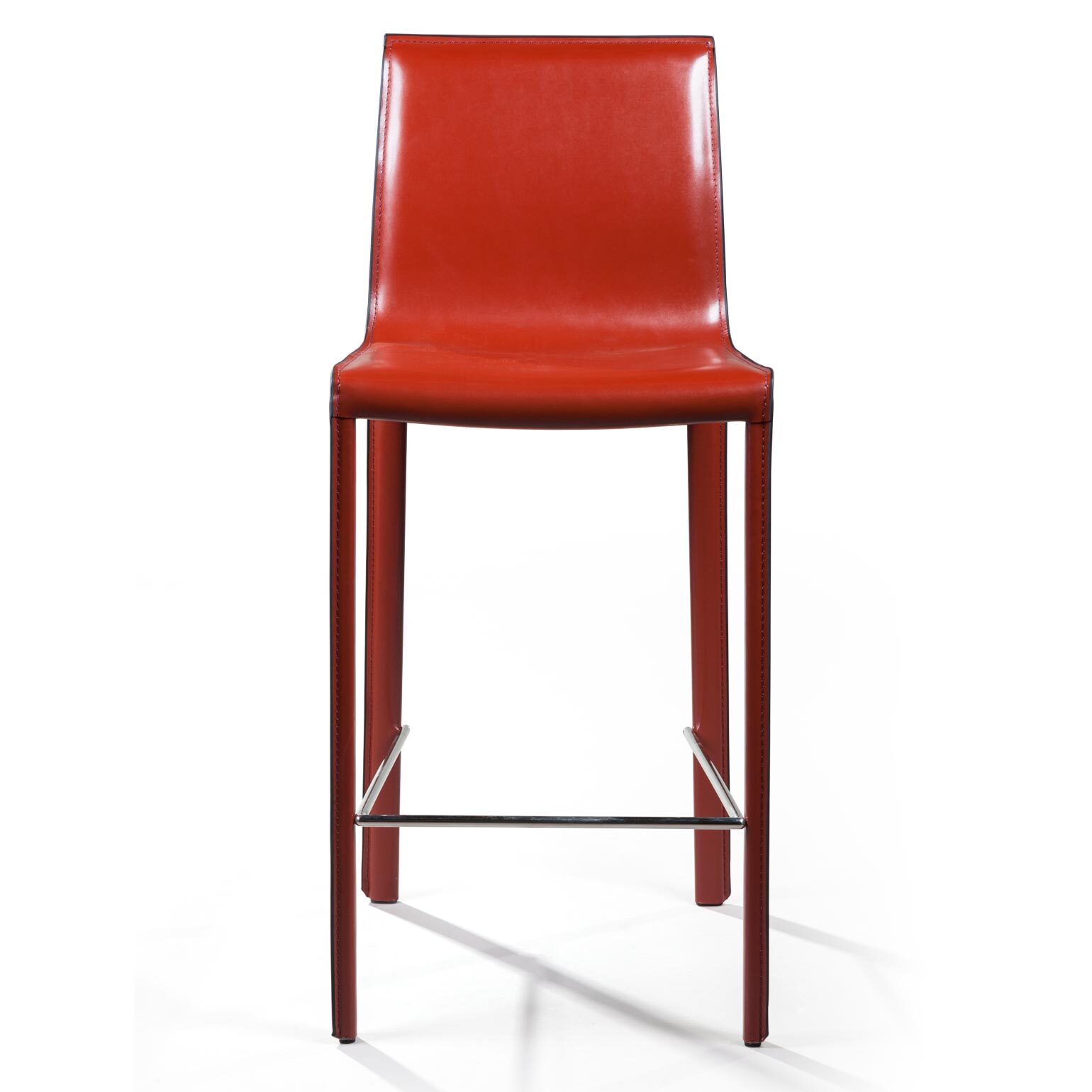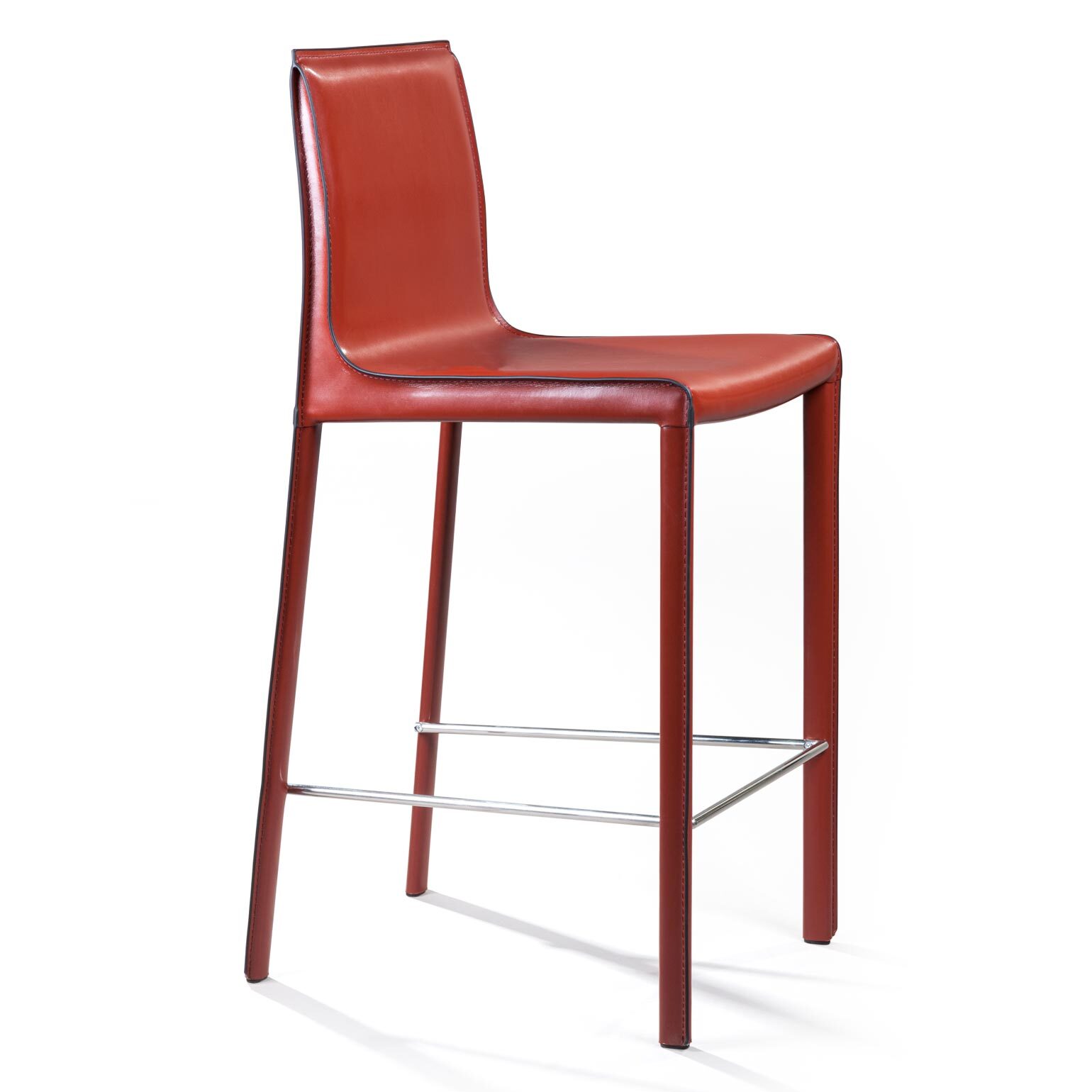 Крепкие металлические ножки скрыты под натуральной кожей такого же цвета, как и сам стул, благодаря этому создается лаконичный образ единого целого. На ножках предусмотрены хромированная подставка для ног и специальные пластиковые накладки, которые придают полубарному стулу дополнительную устойчивость и защищают полот царапин.